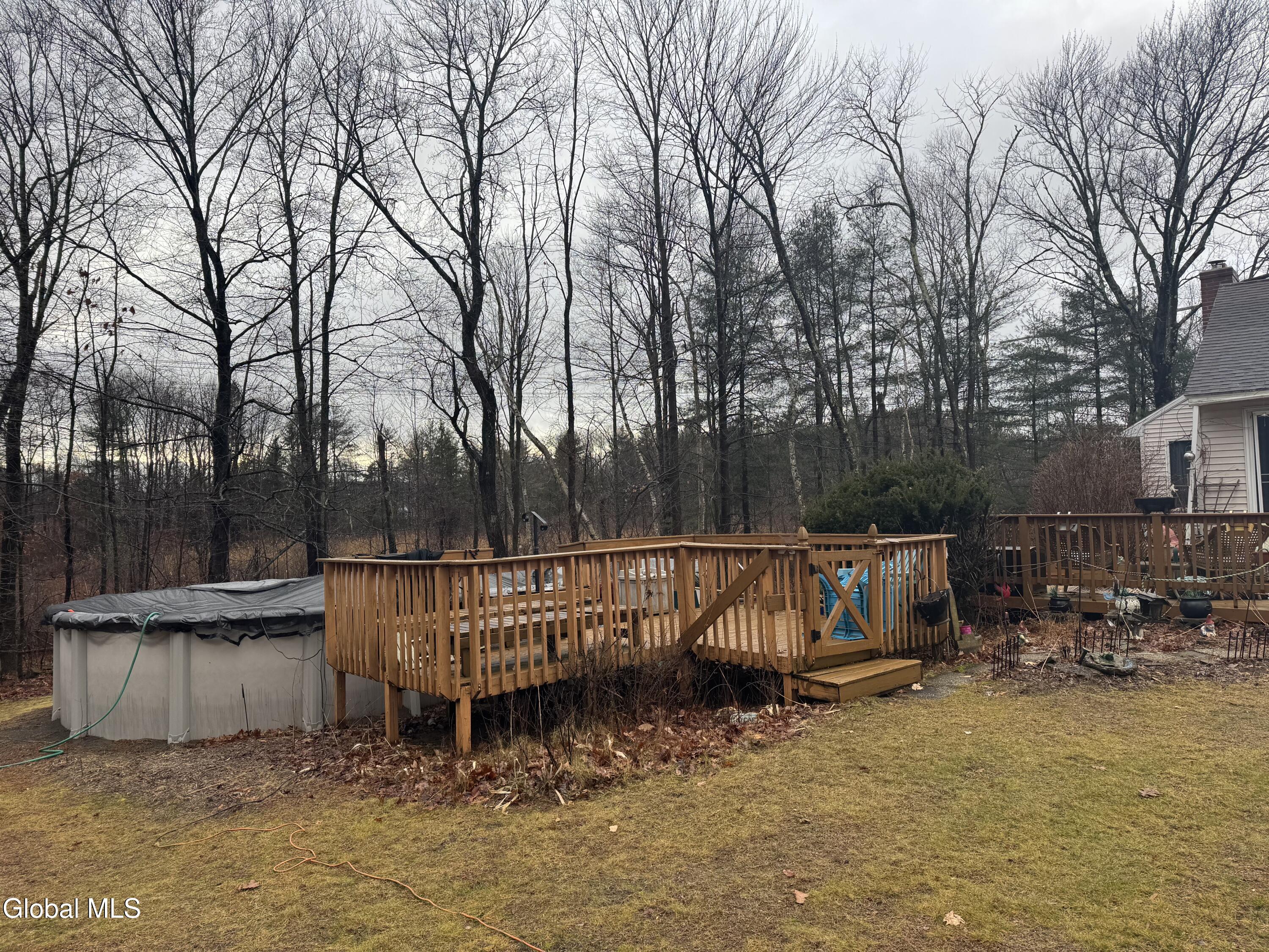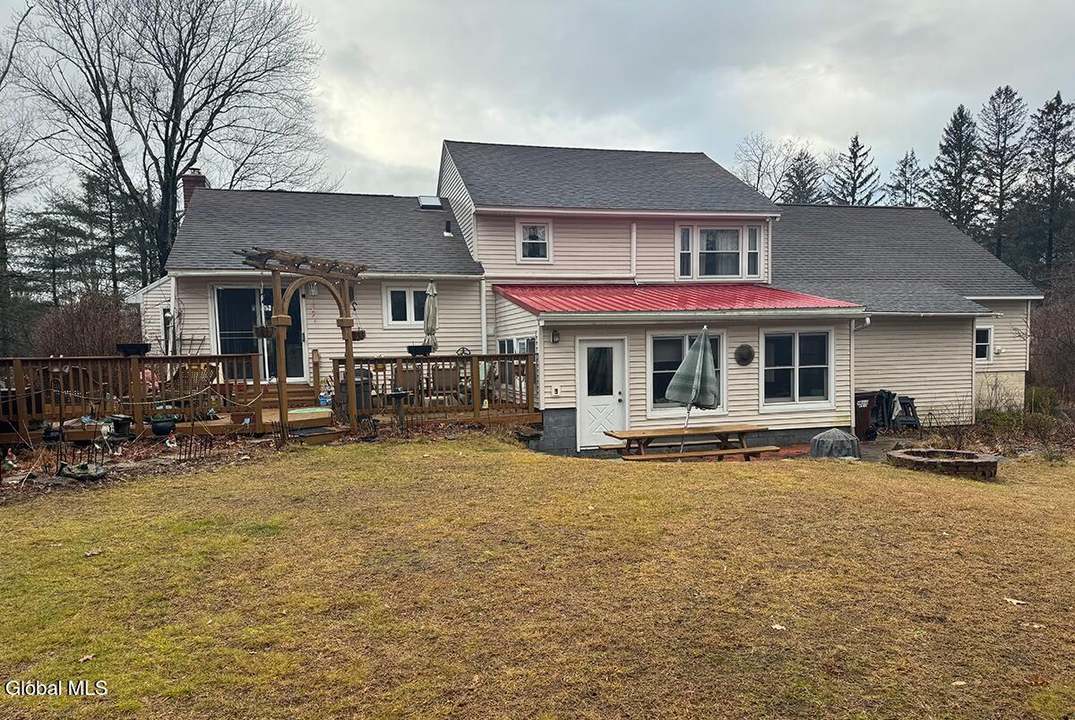 Nestled on 1.35 private acres in the Bethlehem School District, this spacious split-level home offers over 1,900 square feet of comfortable living space with three bedrooms and two full baths. Upon entry, walls of windows flood the vaulted-ceiling living room with natural light, creating a bright and welcoming atmosphere that flows seamlessly into the dining room, where a woodburning fireplace sets the stage for memorable family dinners. The large eat-in kitchen is thoughtfully designed with a double-oven range, hood vent, abundant cabinetry and prep space, a charming window seat, and a slider leading to the backyard and deck. Upstairs, the primary bedroom features a cozy seating area, and walk-in closet, there is a full bath with a jacuzzi tub and standalone shower, along with a second bedroom. The lower level includes a third bedroom, second full bath, laundry room, and a spacious family room/den with a wood stove, complemented by a lovely sunroom ideal for summer gatherings after enjoying the expansive yard and pool. A basement with ample storage and a rec room completes the home—an inviting property ready to be your new home.