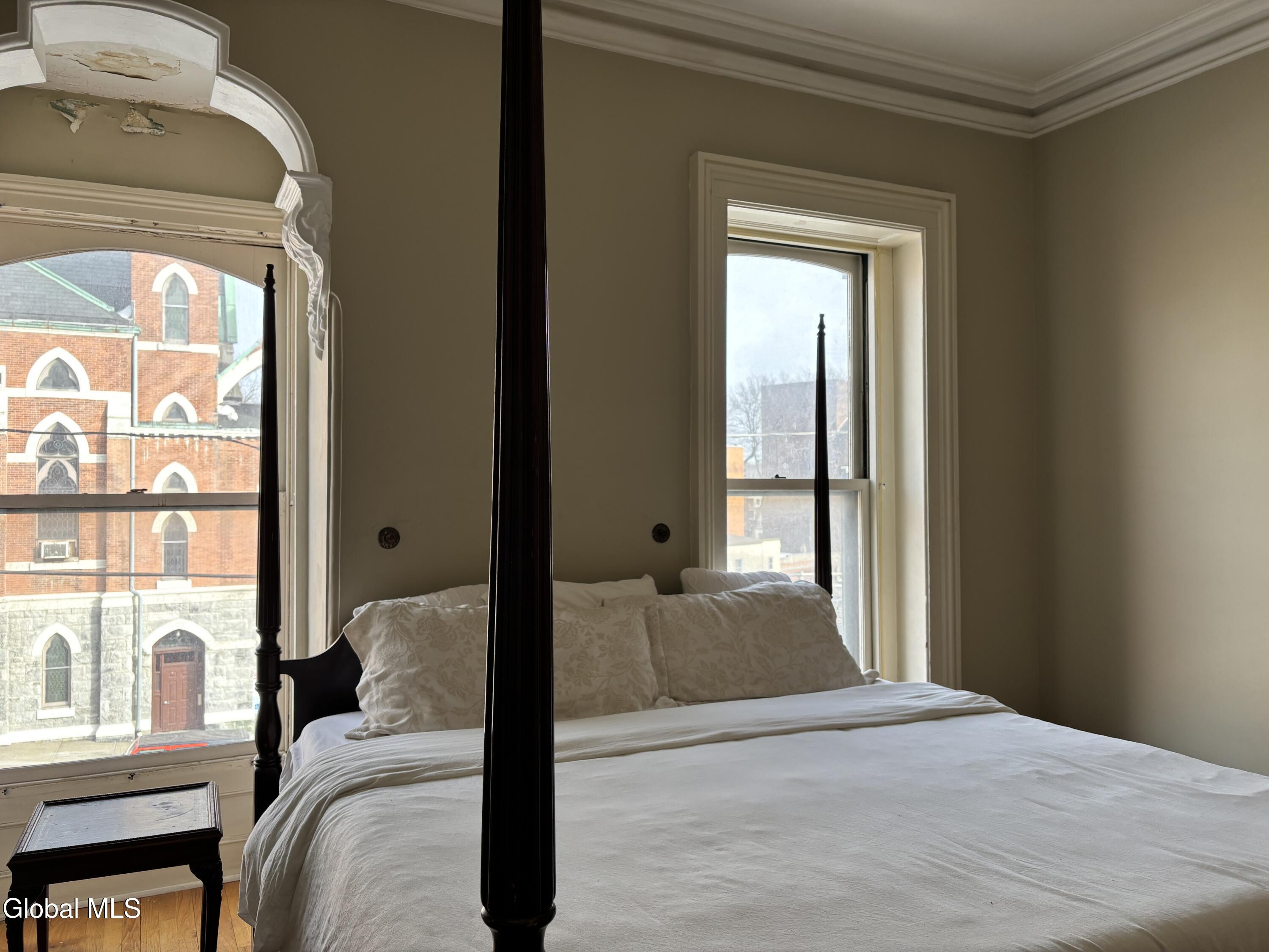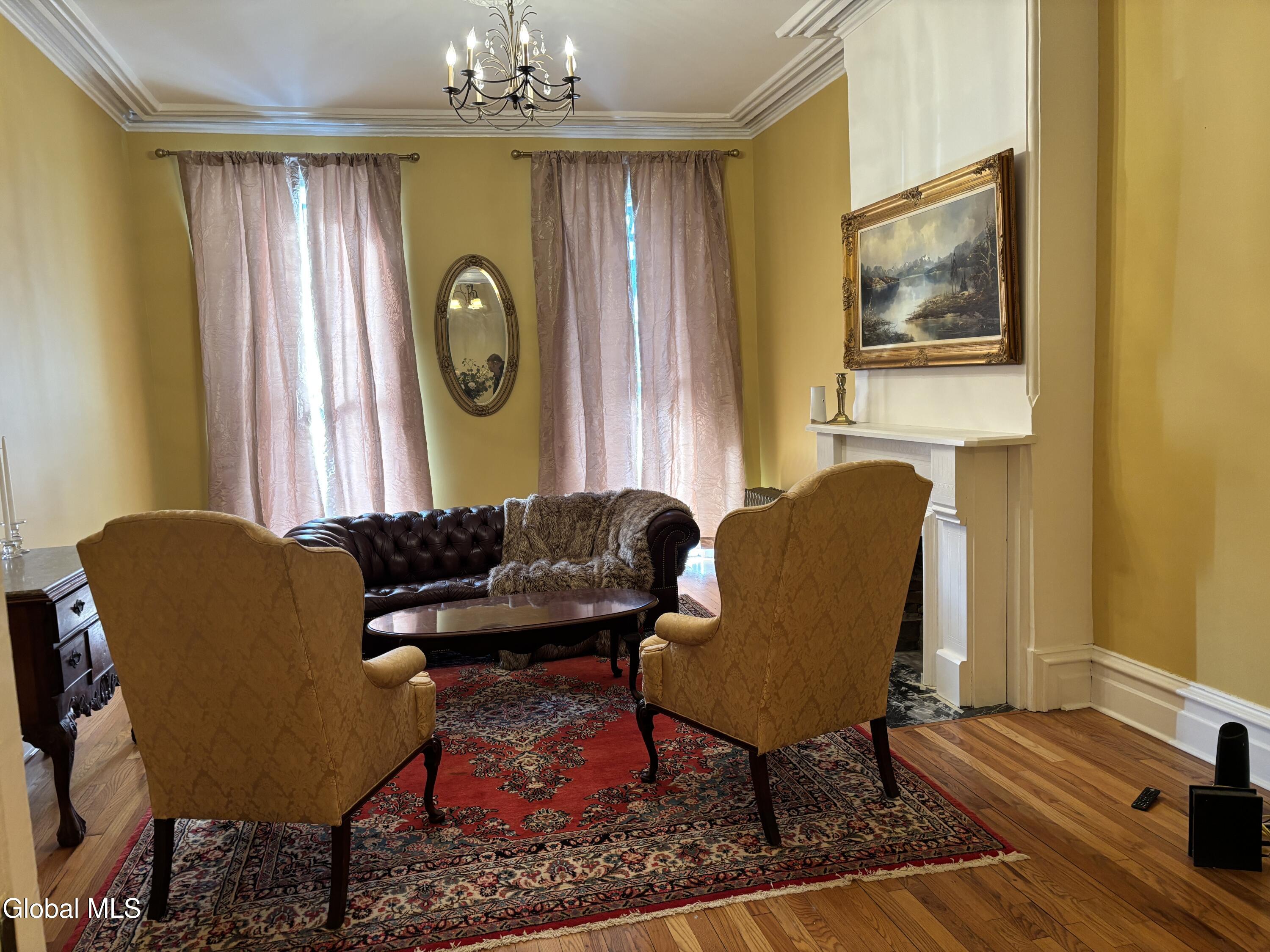 Classic Albany Brownstone with Garden/basement apartment, located close to the Palace Theater and the downtown Albany entertainment district and all that it has to offer. Easy access to shopping dining and entertainment venues as well as Government Offices and major highways. Excellent opportunity for investor or owner occupant. Owners unit occupies the top three floors consisting of a sitting room, foyer, and living room, all with hardwood, on the first floor. The second floor has one one bedroom, kitchen with dining area, all with hardwood, a full tile bath with walk-in shower, laundry closet with washer and dryer ( stackable ). The third floor has two bedrooms with laminate flooring and a full bath with a clawfoot tub. The Garden apartment consists of a good size living room, a kitchen area and one bedroom and a full tile bath. There are numerous fireplaces which have not been used in many years and the seller considers them to be decorative only. Enjoy the great views of the Albany Skyline from the rear of your home.