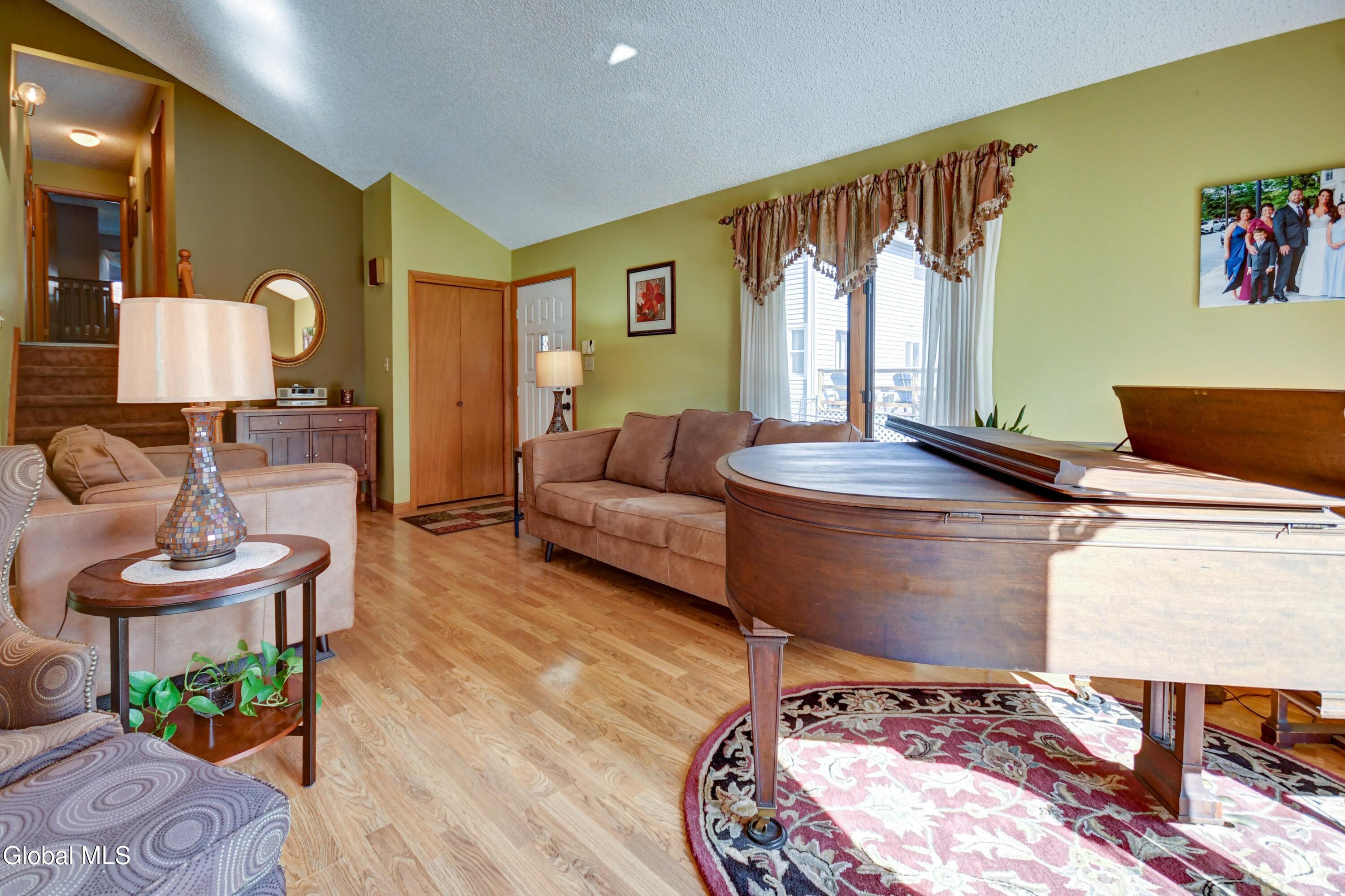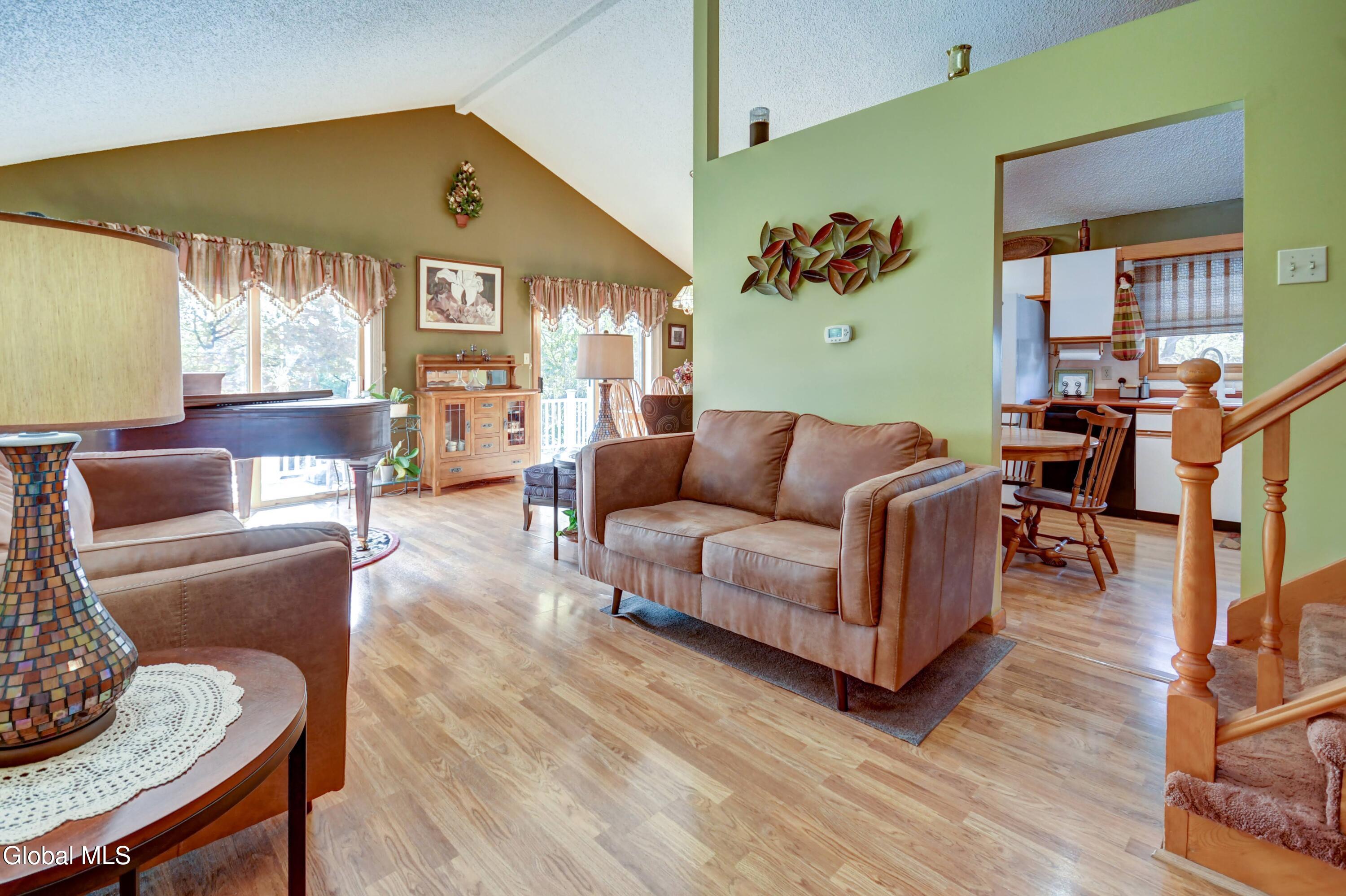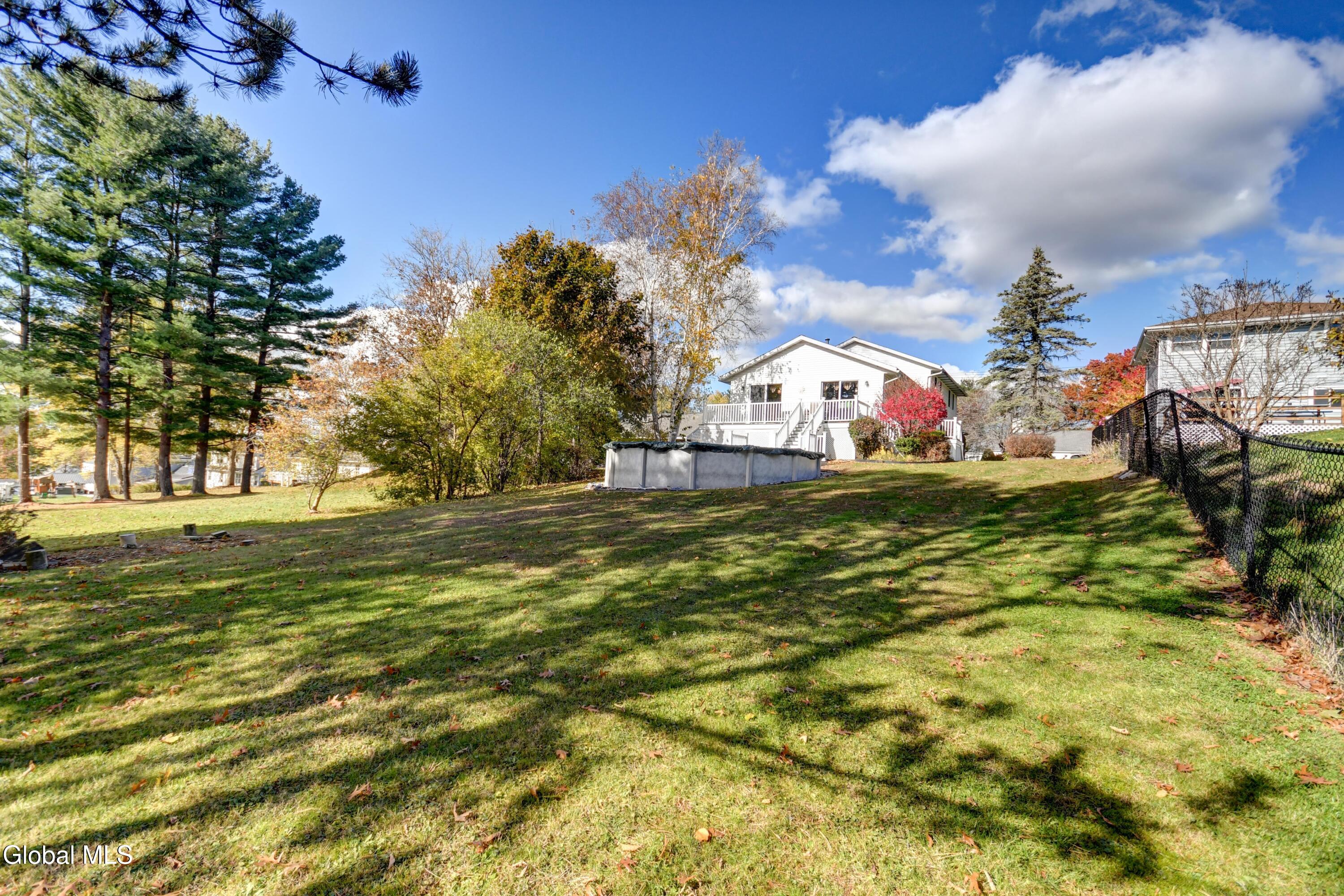 Beautiful 3-Bedroom, 2-Bath Home in the heart of Amsterdam. Welcome to this lovely home featuring cathedral ceilings and abundant natural light throughout. The modern layout flows easily from the living room to the kitchen and dining area, creating a welcoming space that is perfect for entertaining or everyday living. This home features three spacious bedrooms, each offering ample closet space and comfort for family or guests, and 2 full bathrooms. You will love the additional family room, as well as the partially finished basement with a laundry area and plenty of space for storage, a playroom, or a home gym. Step outside to enjoy the Trex deck and above-ground pool—both less than 3 years old—creating the ideal setting for summer fun. The property also includes central air, a 2-car garage, and a partially fenced yard that is also equipped with an invisible fence. Located just minutes from the Amsterdam Municipal Golf Course, shopping, and the NYS Thruway, this property combines comfort and accessibility in one perfect package. Move-in ready and well maintained — a must-see!