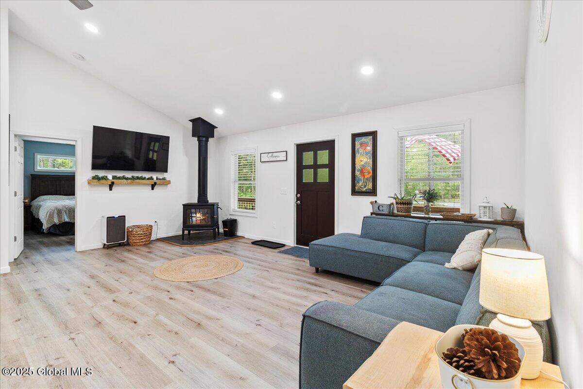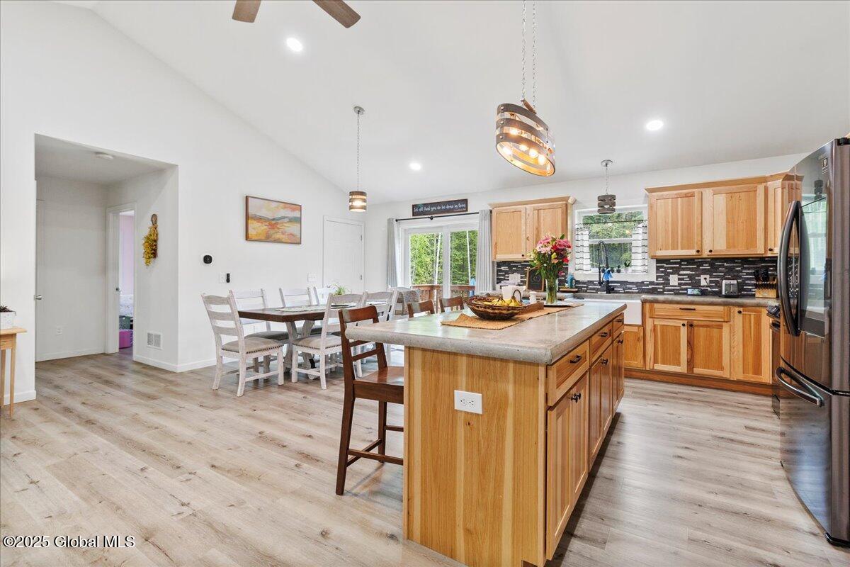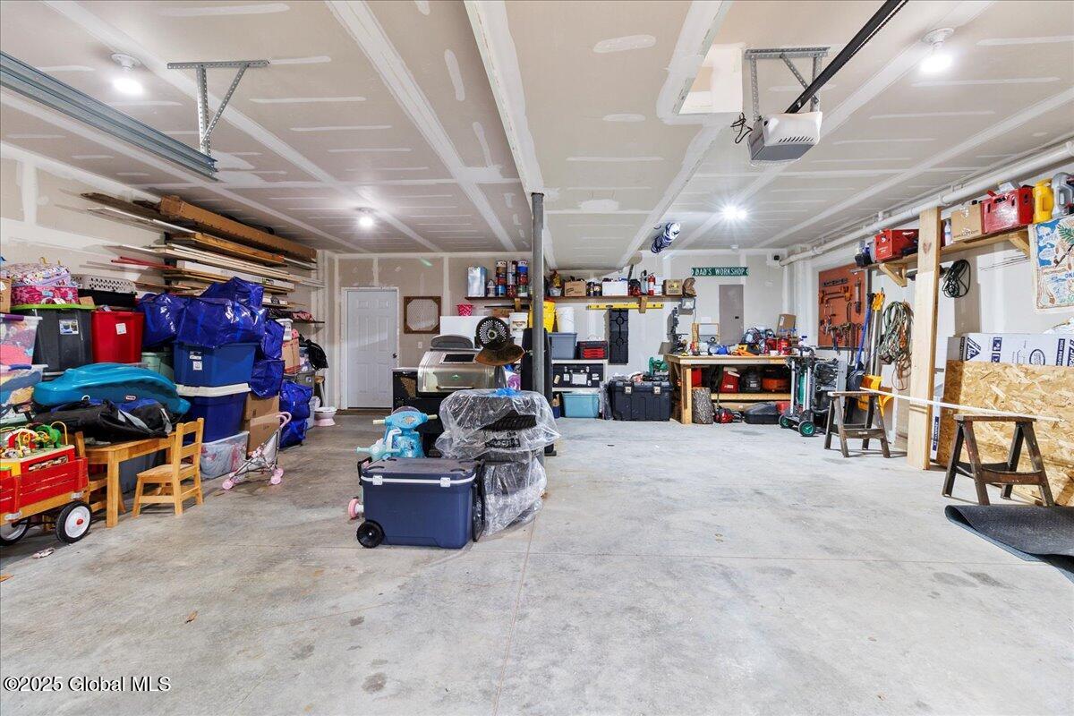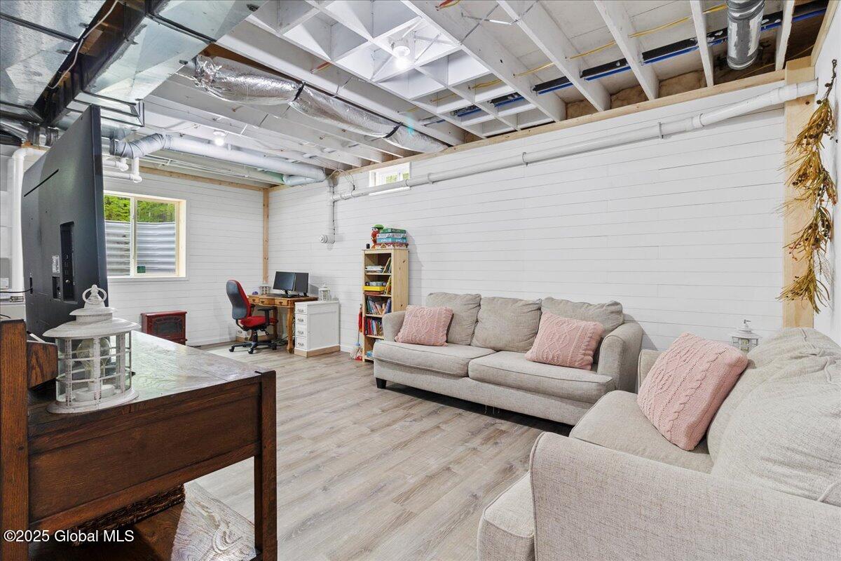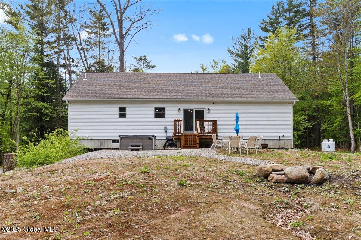 Private Adirondack Escape on over 7 acres! This 2021 single-story home offers a perfect mix of comfort, space, and charm. The open floor plan features natural finishes, hickory cabinets, a farmhouse apron sink, large center island, and a pot filler over the stove—ideal for both daily living and entertaining. The spacious great room brings in plenty of natural light. A front porch welcomes morning coffee, while the finished basement with egress adds extra living space, storage, and an oversized two-car garage. Surrounded by mature trees and natural landscaping, this private retreat is less than a mile from Jenny Lake and Hunt Lake, and under 30 minutes to Saratoga Springs and Lake George. See docs for upgrades.