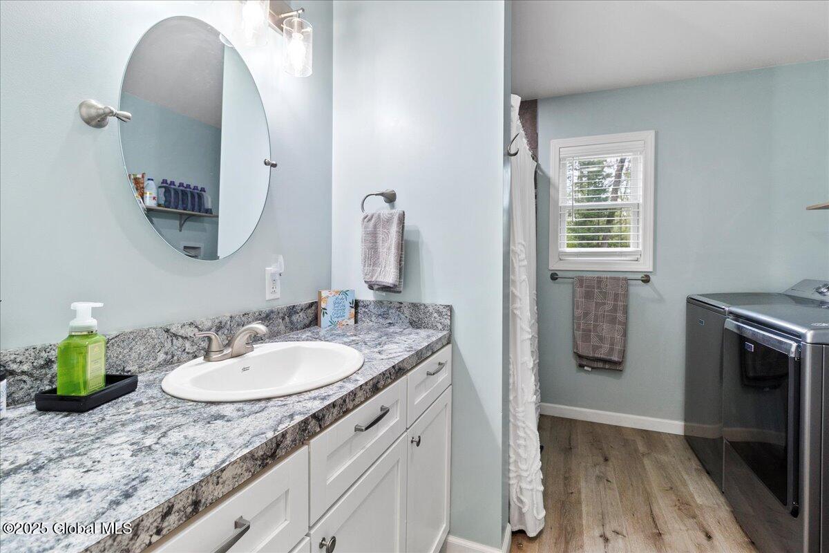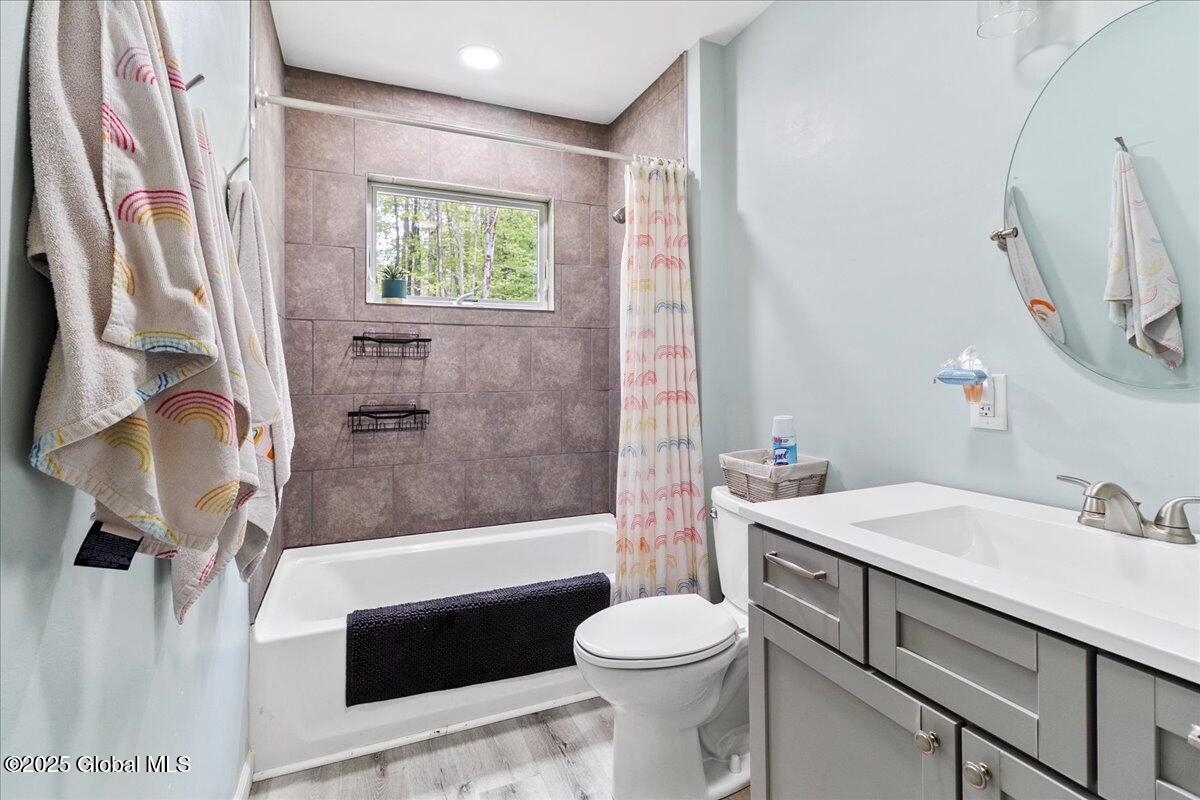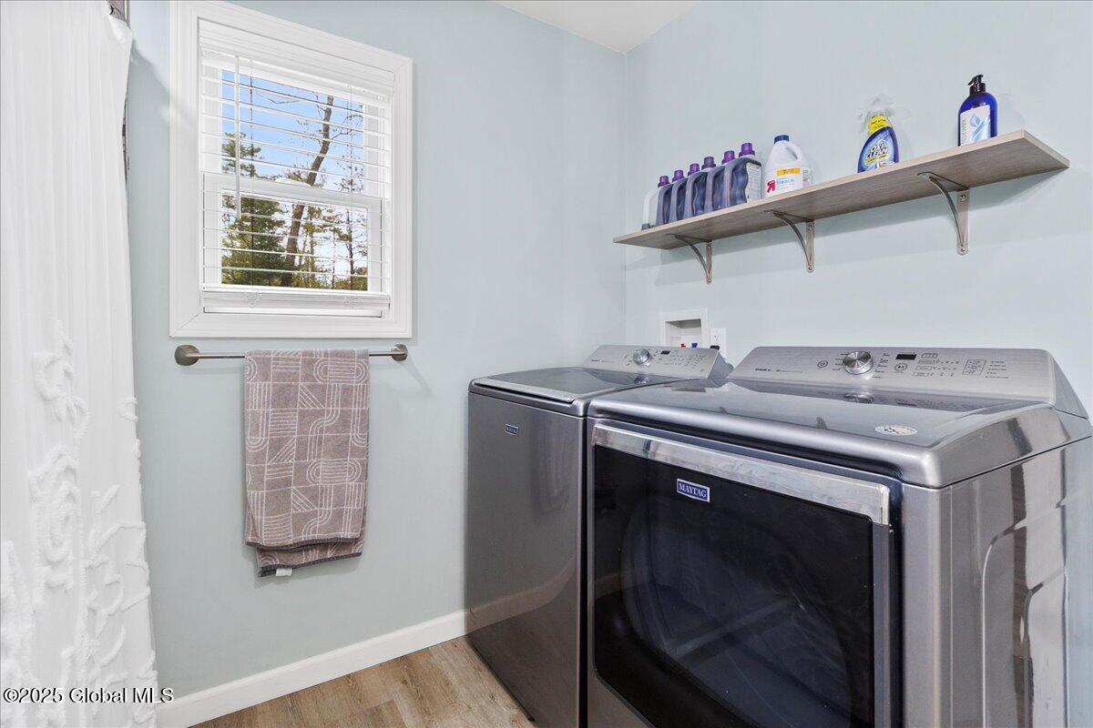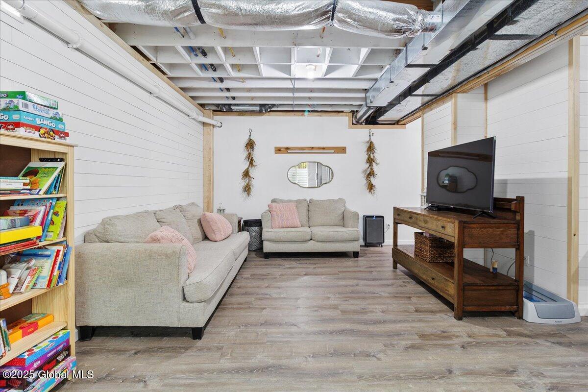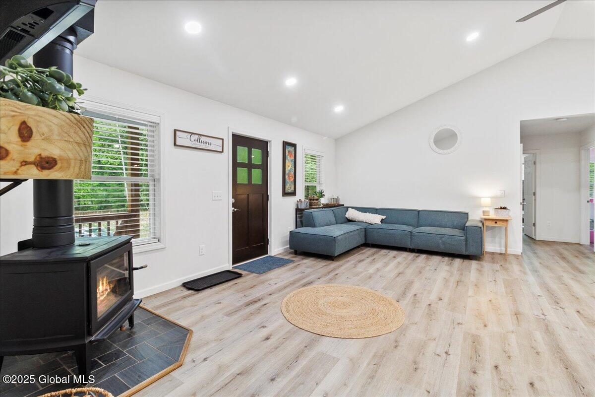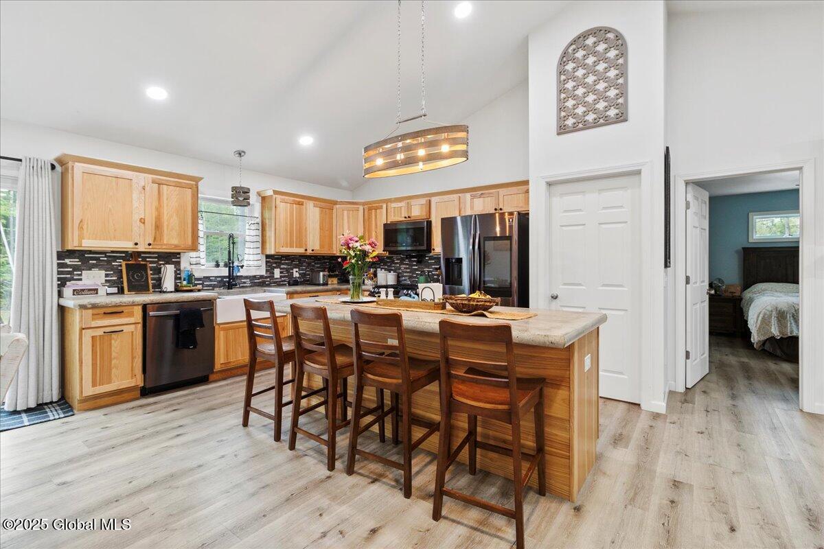 Private Adirondack Escape on over 7 acres! This 2021 single-story home offers a perfect mix of comfort, space, and charm. The open floor plan features natural finishes, hickory cabinets, a farmhouse apron sink, large center island, and a pot filler over the stove—ideal for both daily living and entertaining. The spacious great room brings in plenty of natural light. A front porch welcomes morning coffee, while the finished basement with egress adds extra living space, storage, and an oversized two-car garage. Surrounded by mature trees and natural landscaping, this private retreat is less than a mile from Jenny Lake and Hunt Lake, and under 30 minutes to Saratoga Springs and Lake George. See docs for upgrades.