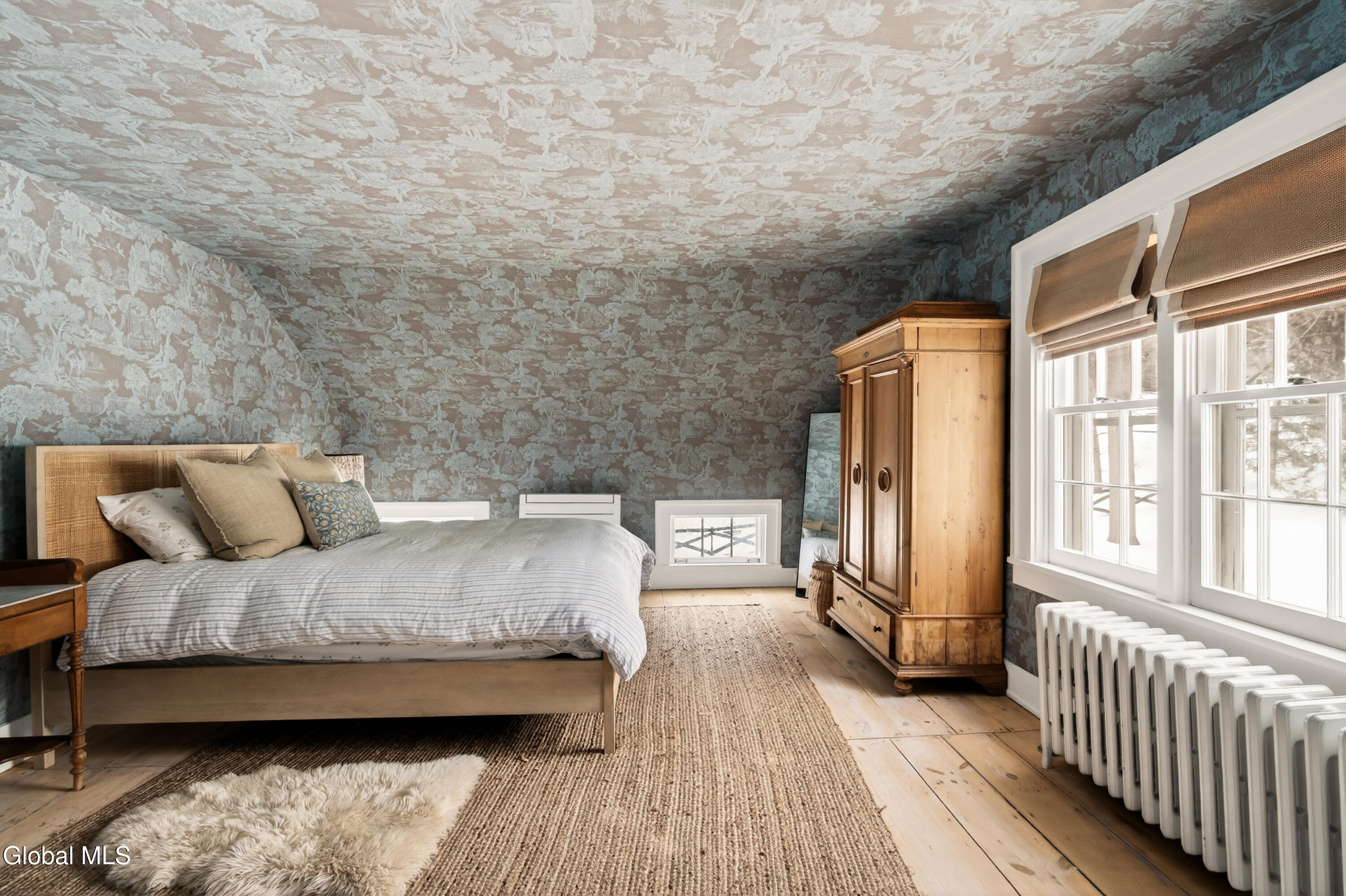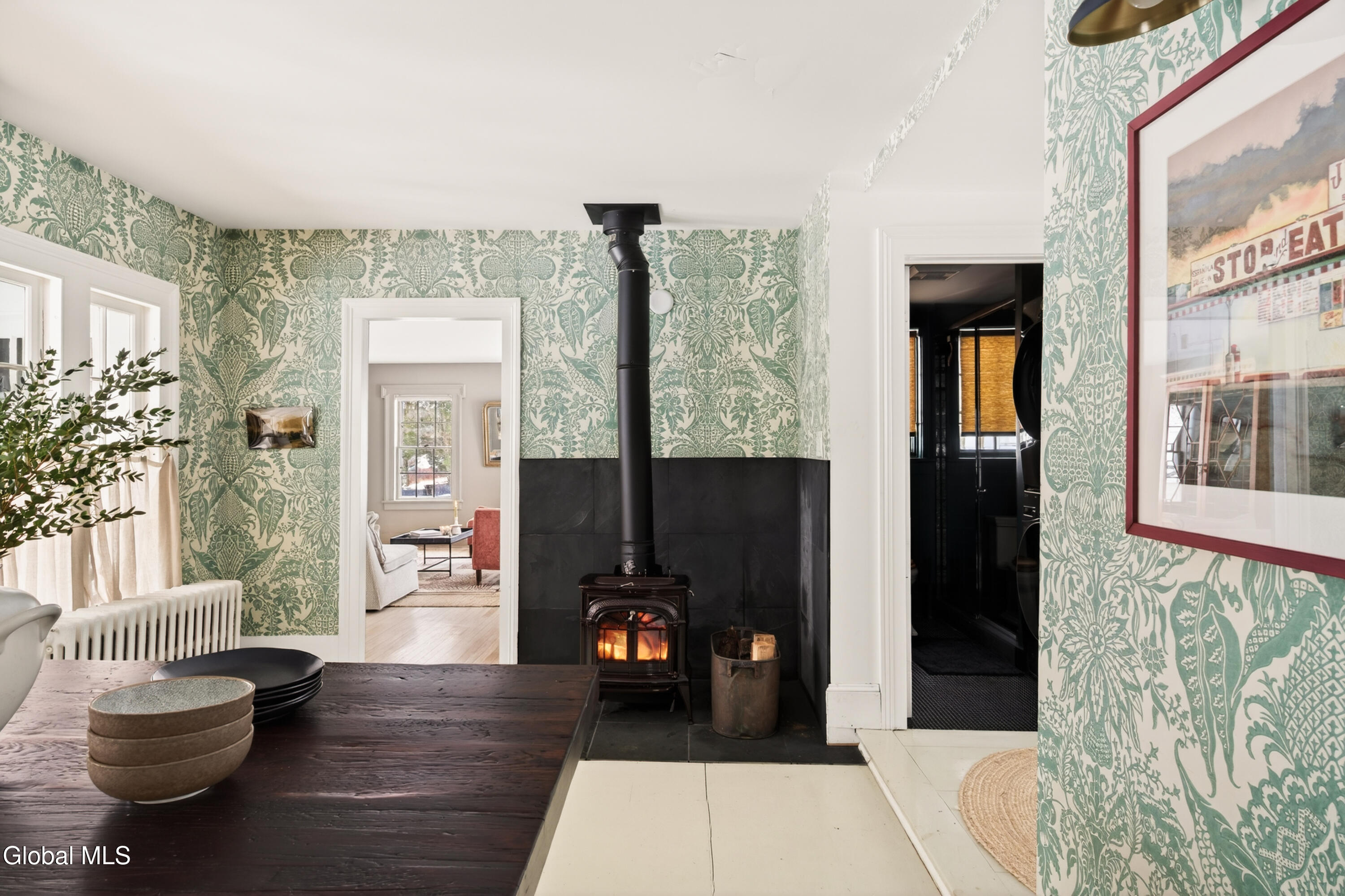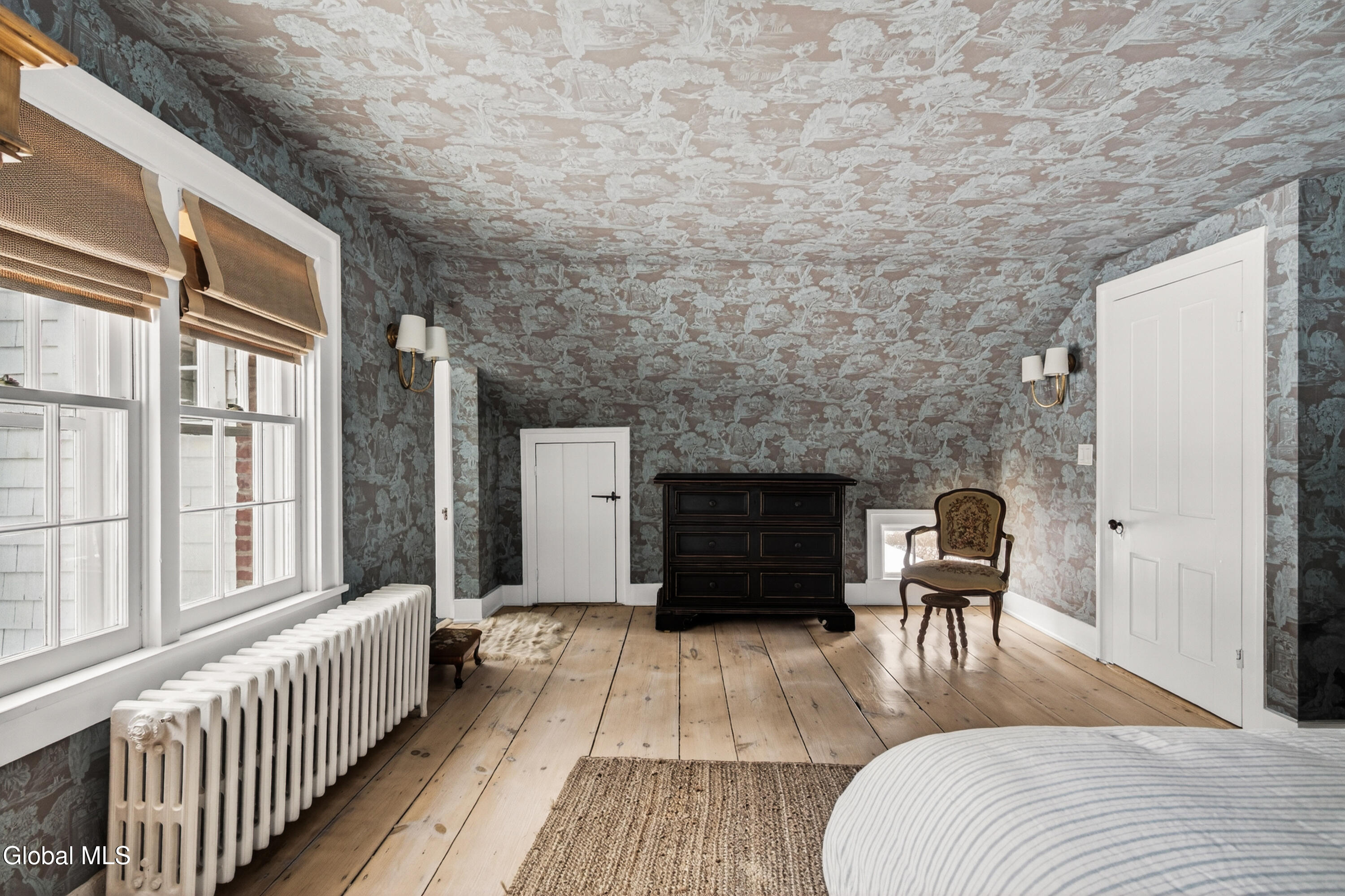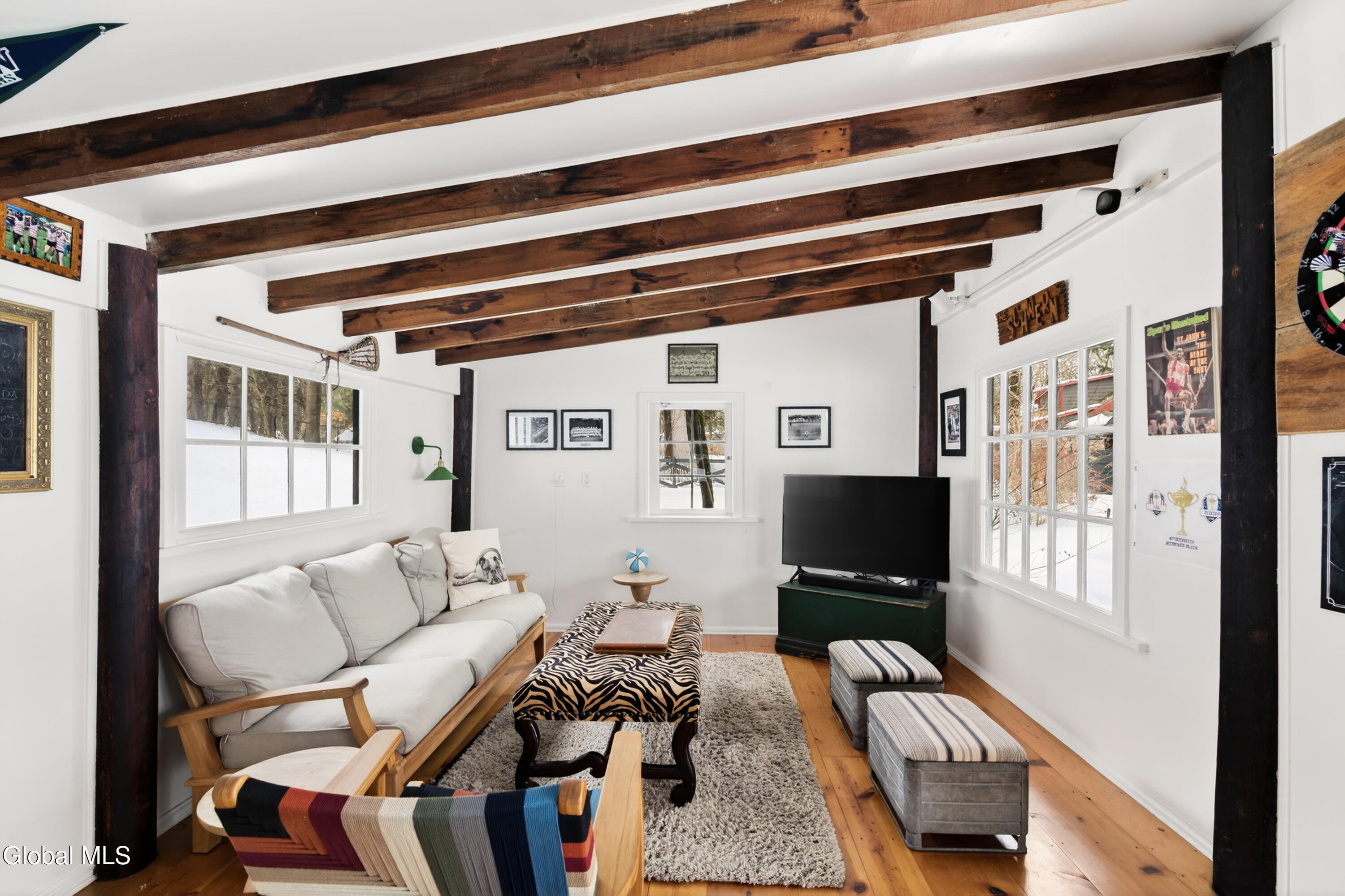 Welcome to Nobletown Farmhouse, a beautifully updated circa 1850 antique farmhouse compound in prime Hillsdale, on one of Columbia County's prettiest country roads. White oak floors flow through sunlit rooms adorned with beautiful period molding and trim, from a welcoming front sunroom to a screened porch in the rear. The chef's kitchen features marble countertops and a farmhouse sink, and flows to a cozy dining room warmed by a wood stove. The grounds include a heated saltwater pool, a pool shed with outdoor shower, a separate studio lounge, and a restored historic stable with a bar, all connected by bluestone pathways and shaded by century-old maples. Minutes to Catamount skiing, the Hillsdale Farmer's Market, and Great Barrington, less than 30 minutes to Hudson, and 2.5 hours to NYC.