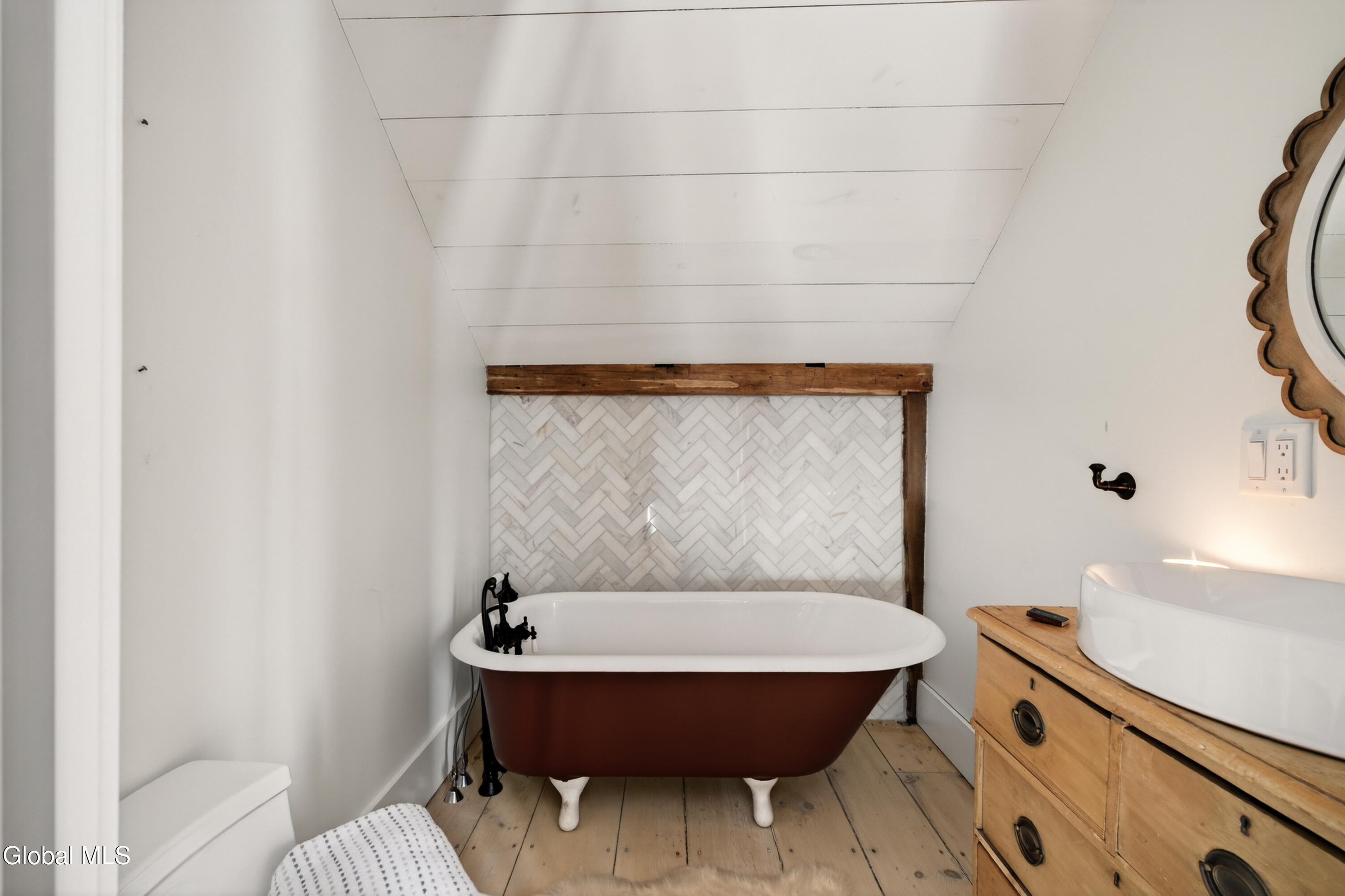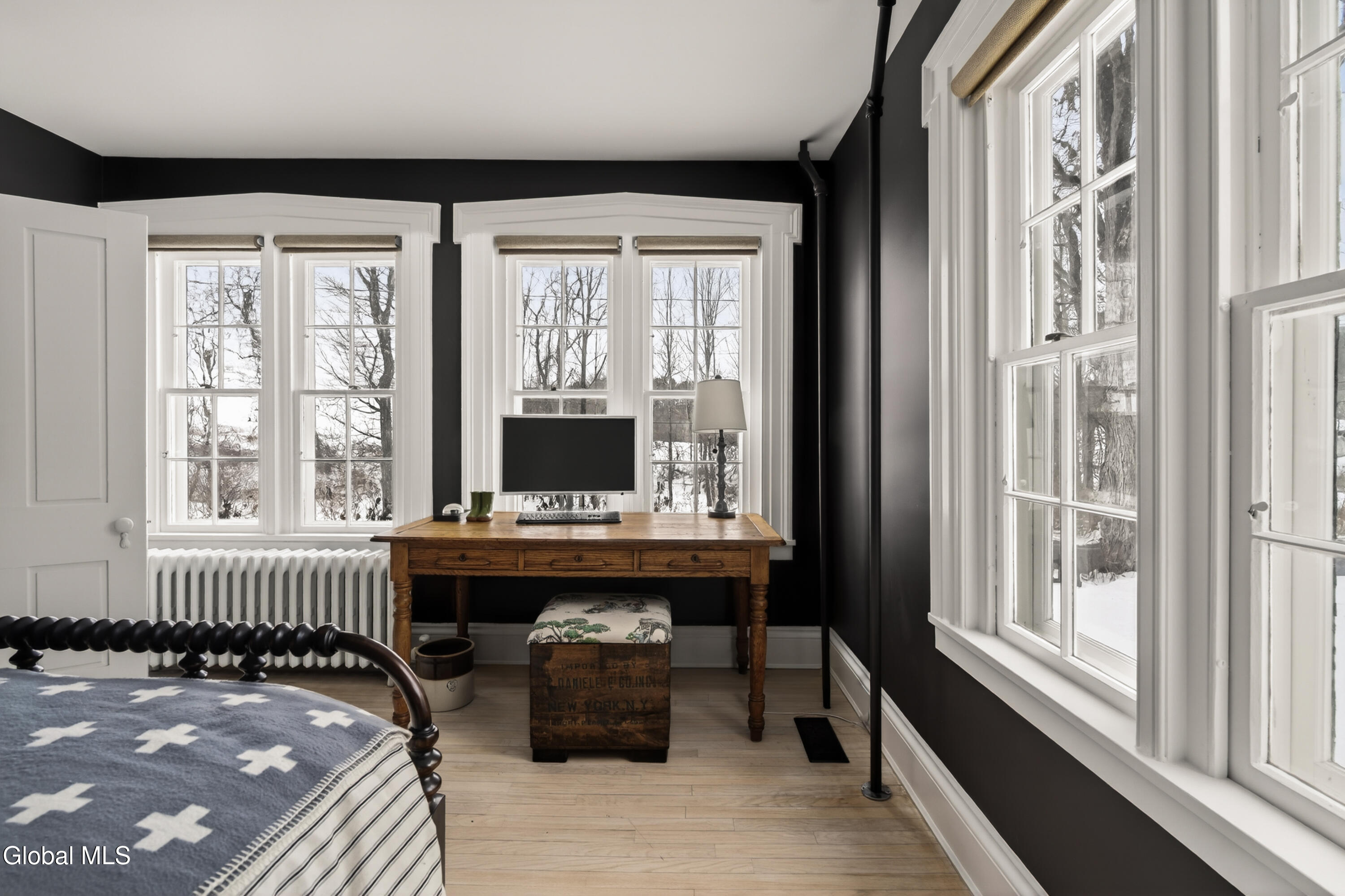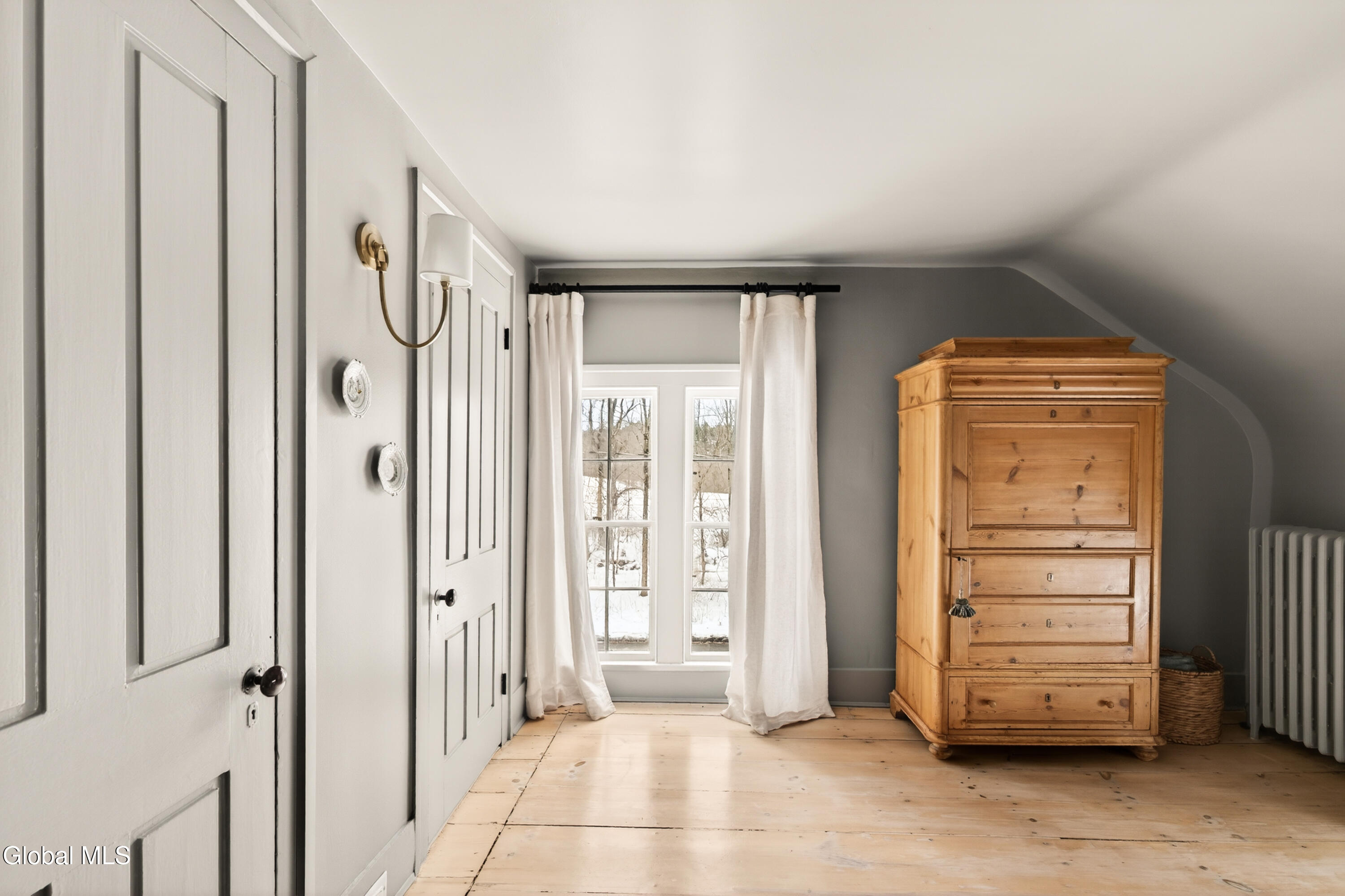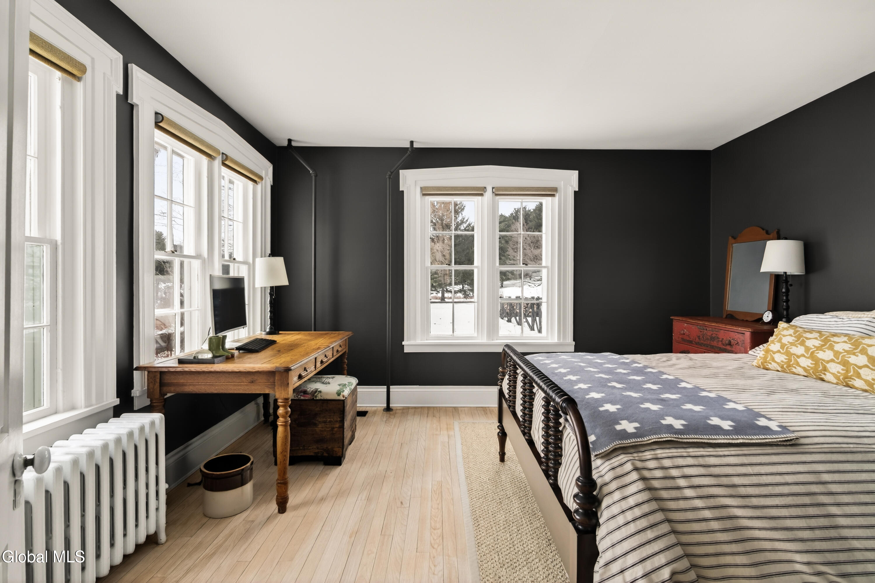Welcome to Nobletown Farmhouse, a beautifully updated circa 1850 antique farmhouse compound in prime Hillsdale, on one of Columbia County's prettiest country roads. White oak floors flow through sunlit rooms adorned with beautiful period molding and trim, from a welcoming front sunroom to a screened porch in the rear. The chef's kitchen features marble countertops and a farmhouse sink, and flows to a cozy dining room warmed by a wood stove. The grounds include a heated saltwater pool, a pool shed with outdoor shower, a separate studio lounge, and a restored historic stable with a bar, all connected by bluestone pathways and shaded by century-old maples. Minutes to Catamount skiing, the Hillsdale Farmer's Market, and Great Barrington, less than 30 minutes to Hudson, and 2.5 hours to NYC.