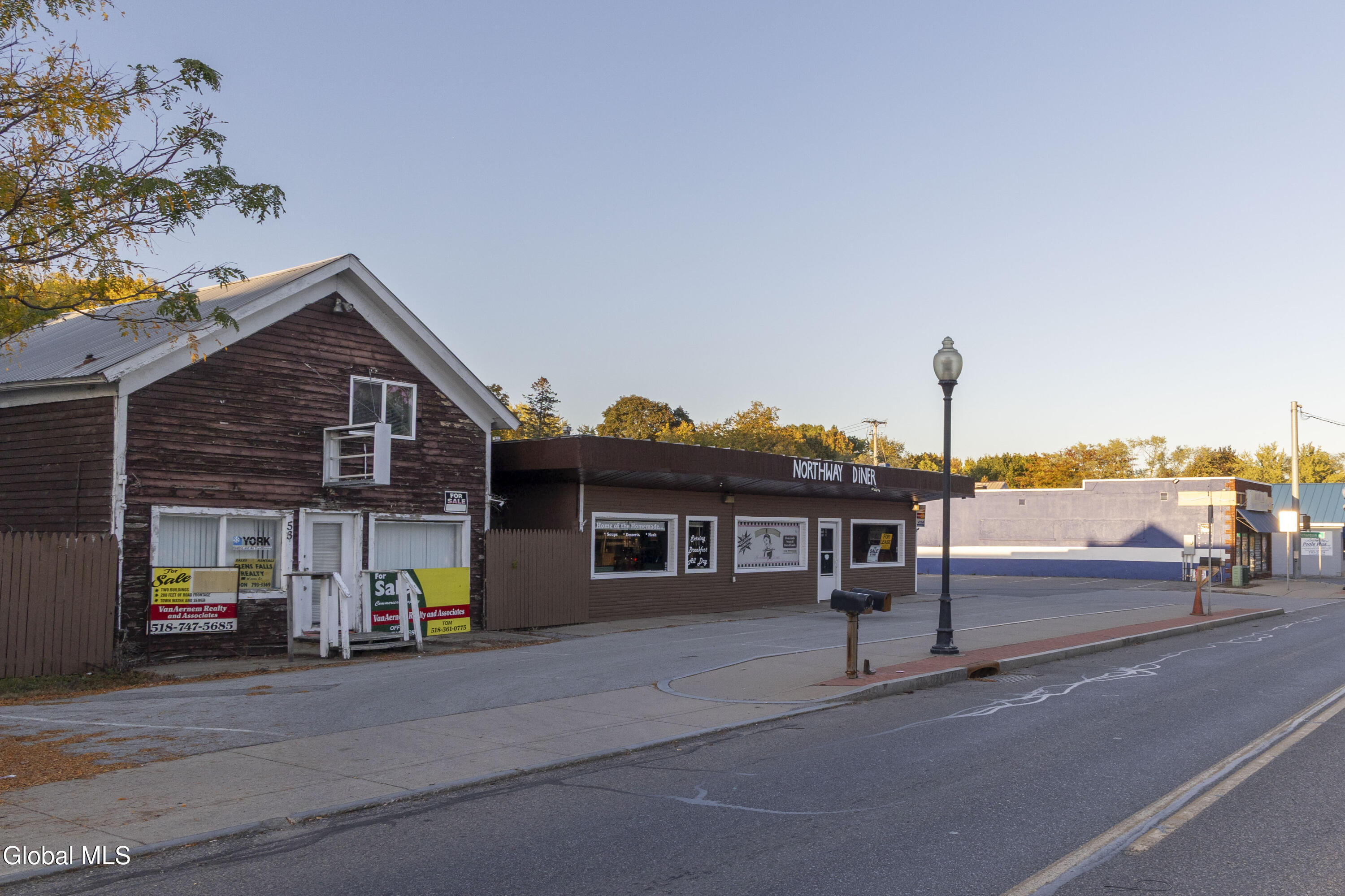 Traffic light/drive-through potential right off busy interstate in Lake George region. Rare commercial opportunity in Queensbury/Glens Falls on Main St Corridor. Multiple use currently. Traffic count 25,000/day. Consists of an entire block on Main St when purchased with 55 Main St (202529273 the Church). 4 Building consisting of a restaurant, large garage, office/retail and apartment. Includes 19 Newcomb St, 47 Main, 51 Main and 53 main. Ample off-street parking and property is on public water and sewer. Ideal location with a traffic light on one corner and property spans two cross streets providing drive through opportunity.