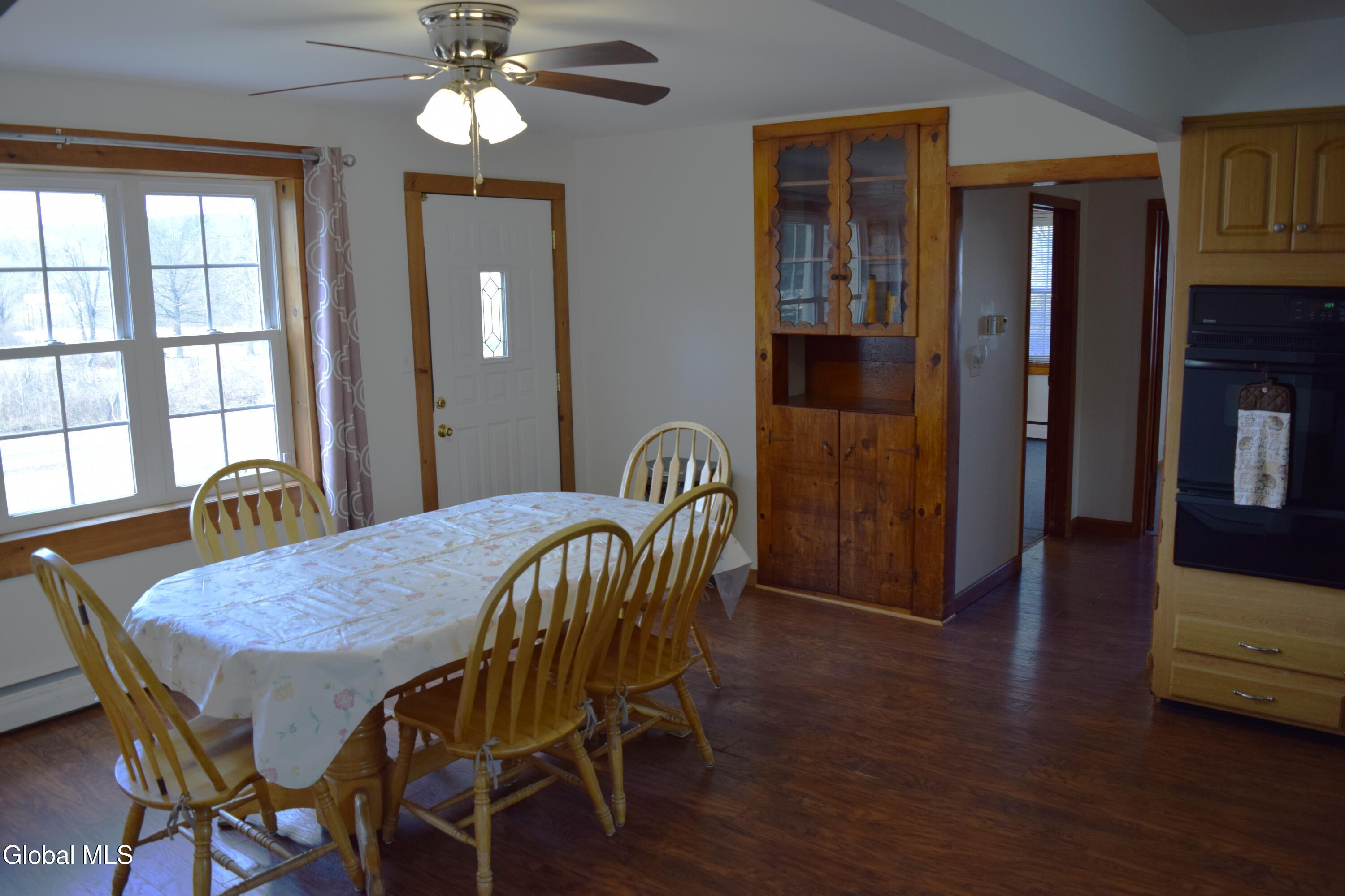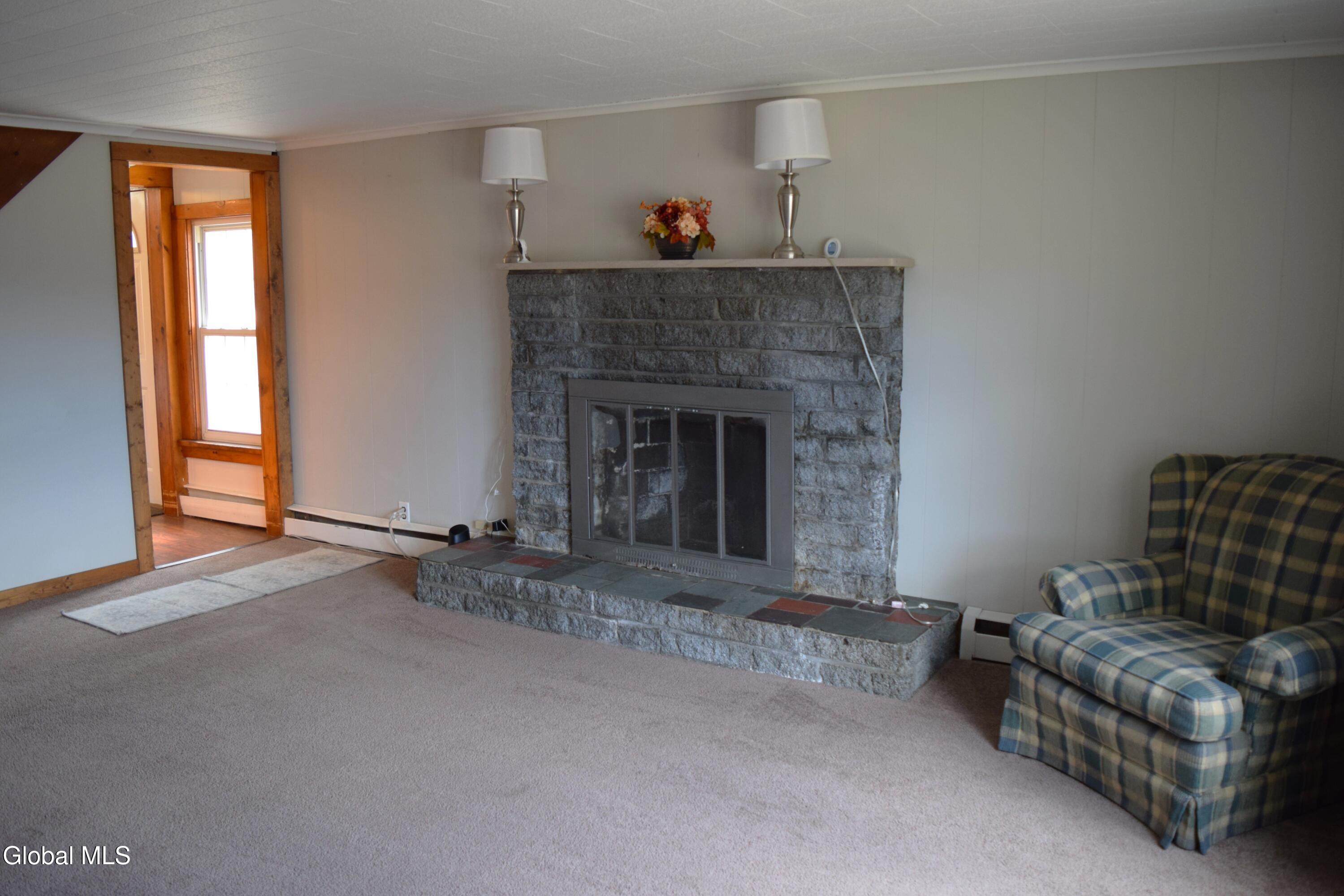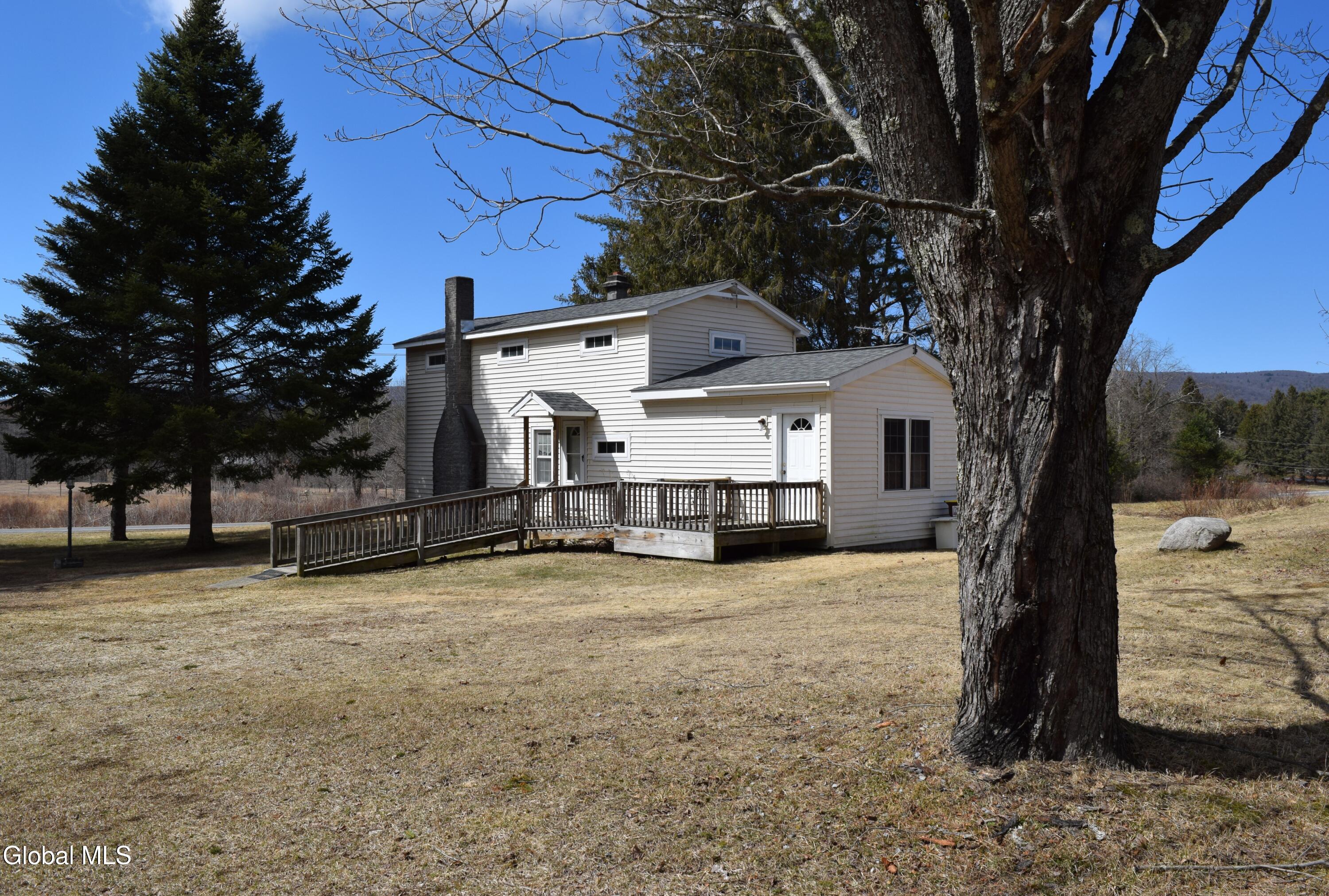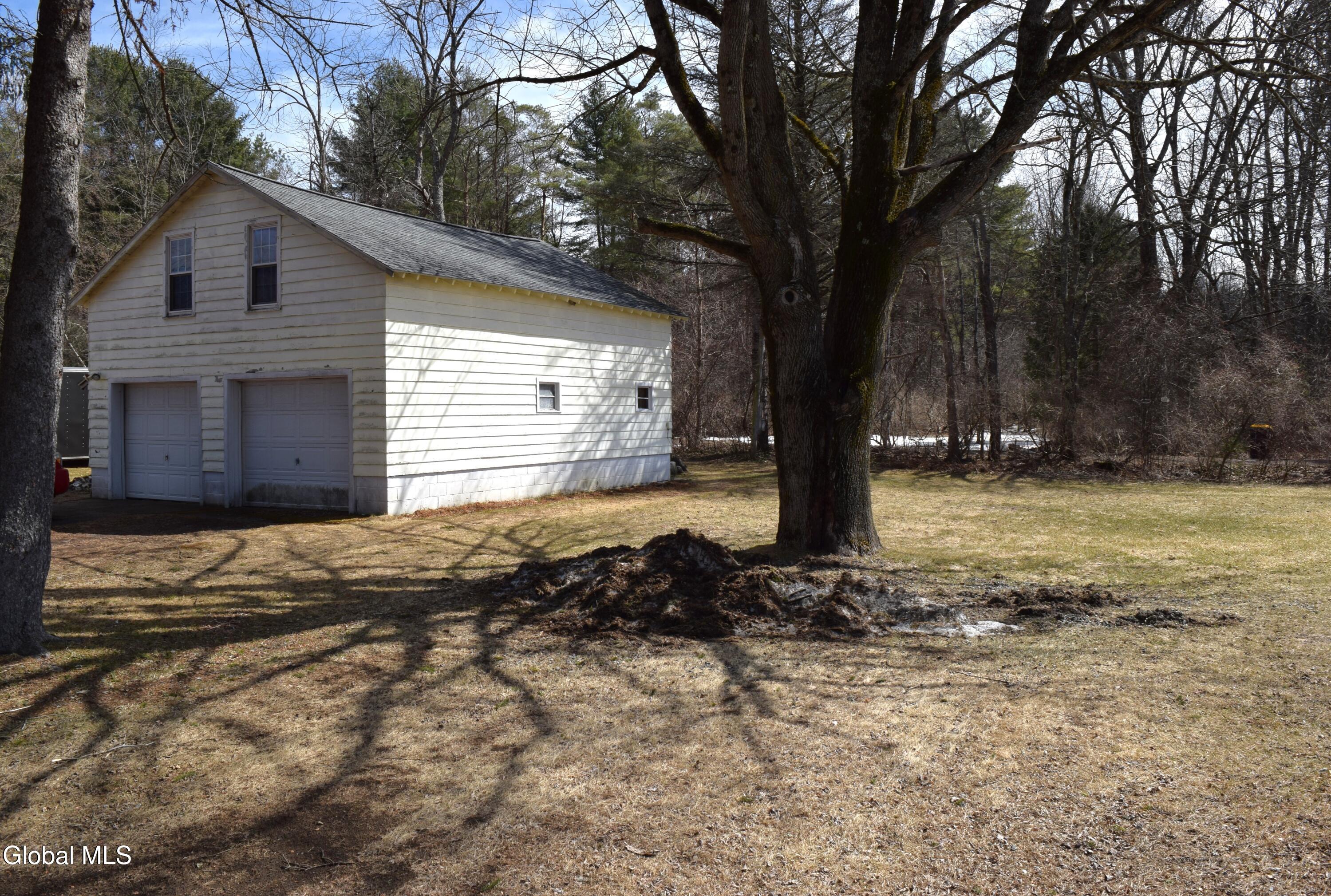 Situated on a desirable 3.71 acre parcel, this spacious property offers the perfect blend of peaceful rural living and convenient proximity--just 10+- minutes (approximately 7 miles) from the City of Saratoga Springs. The main home features 5 bedrooms, including 3 located on the first floor, making it ideal for flexible living arrangements. Enjoy an open-concept kitchen and dining area, two full bathrooms on the main level, and the convenience of a 1st floor laundry area. The inviting living room is highlighted by a cozy wood-burning fireplace, perfect for relaxing evenings. In addition to the oil-fired hot water boiler, the home is equipped with an optional use wood burning boiler for potential considerable cost savings. The roof is approximately 6 years old, offering peace of mind for years to come. A standout feature is the large detached 2 car garage, which includes a partially converted space. One bay remains for parking, while the rest of the structure--both the first and second floors--has been transformed into a finished in-law apartment. This separate living space includes both interior and exterior access, its own oil fired hot air heating system, propane hot water heater, and a separate septic system making it ideal for extended family. The property itself gently slopes upward and is primarily open, with a wooded area at the rear. As you approach the back of the land, you'll be rewarded with scenic mountain views, adding to the property's charm and tranquility.