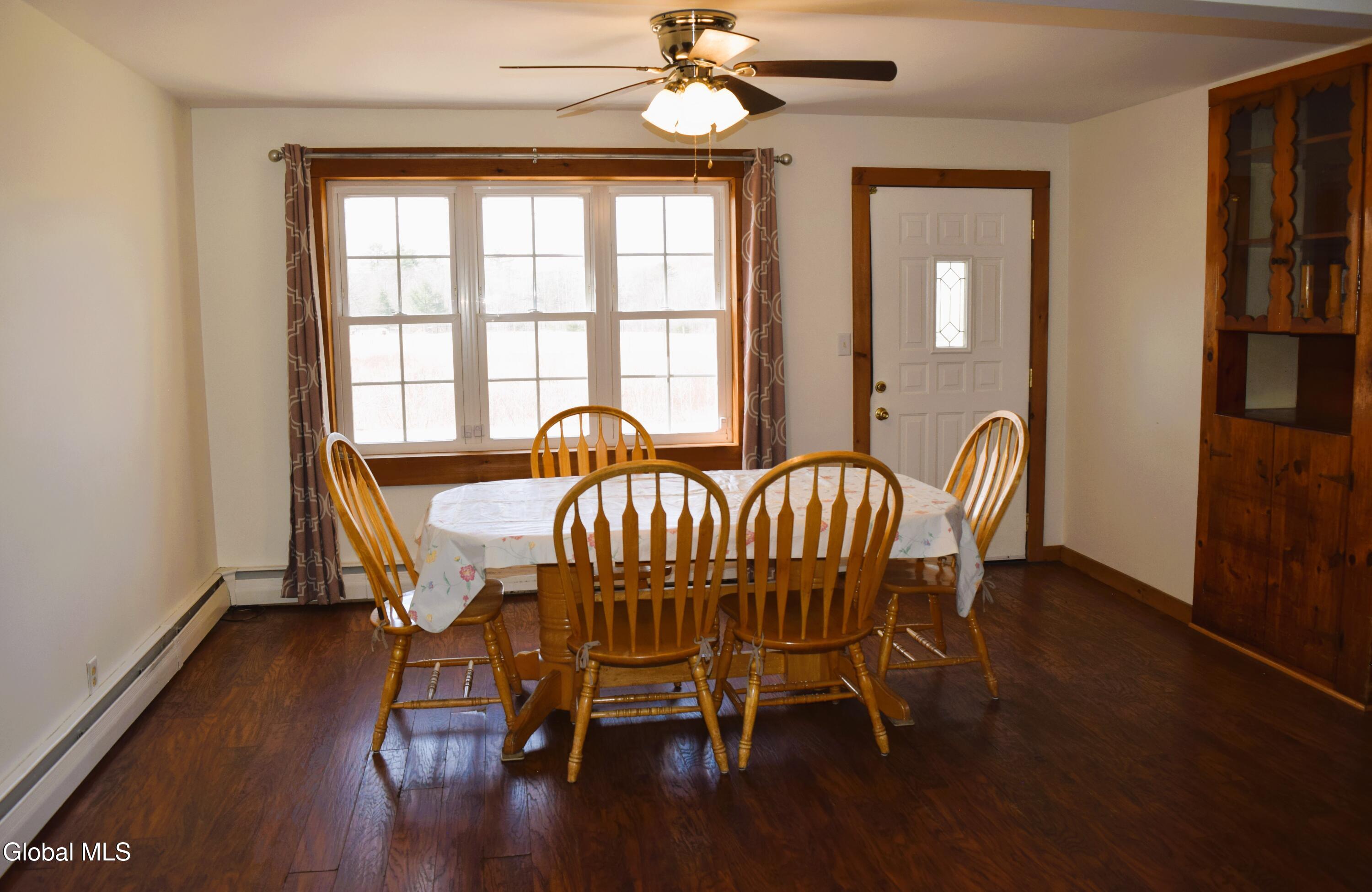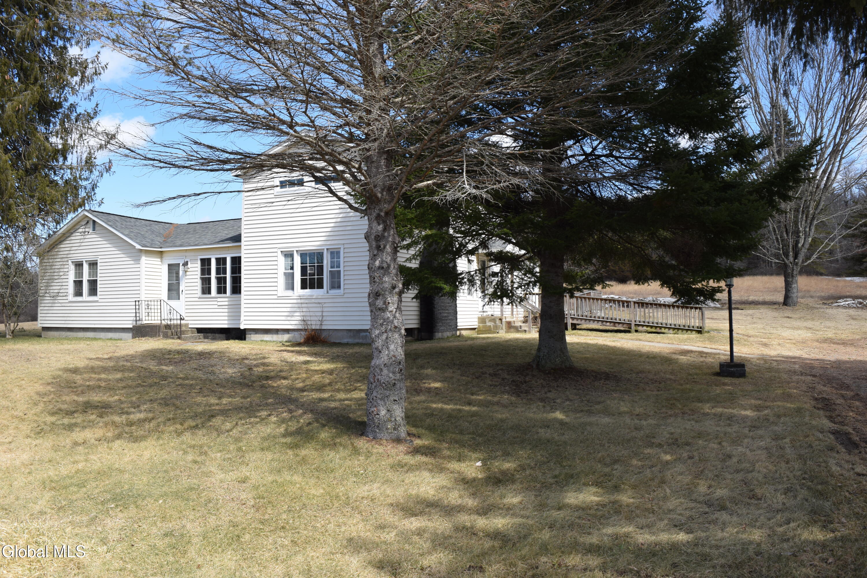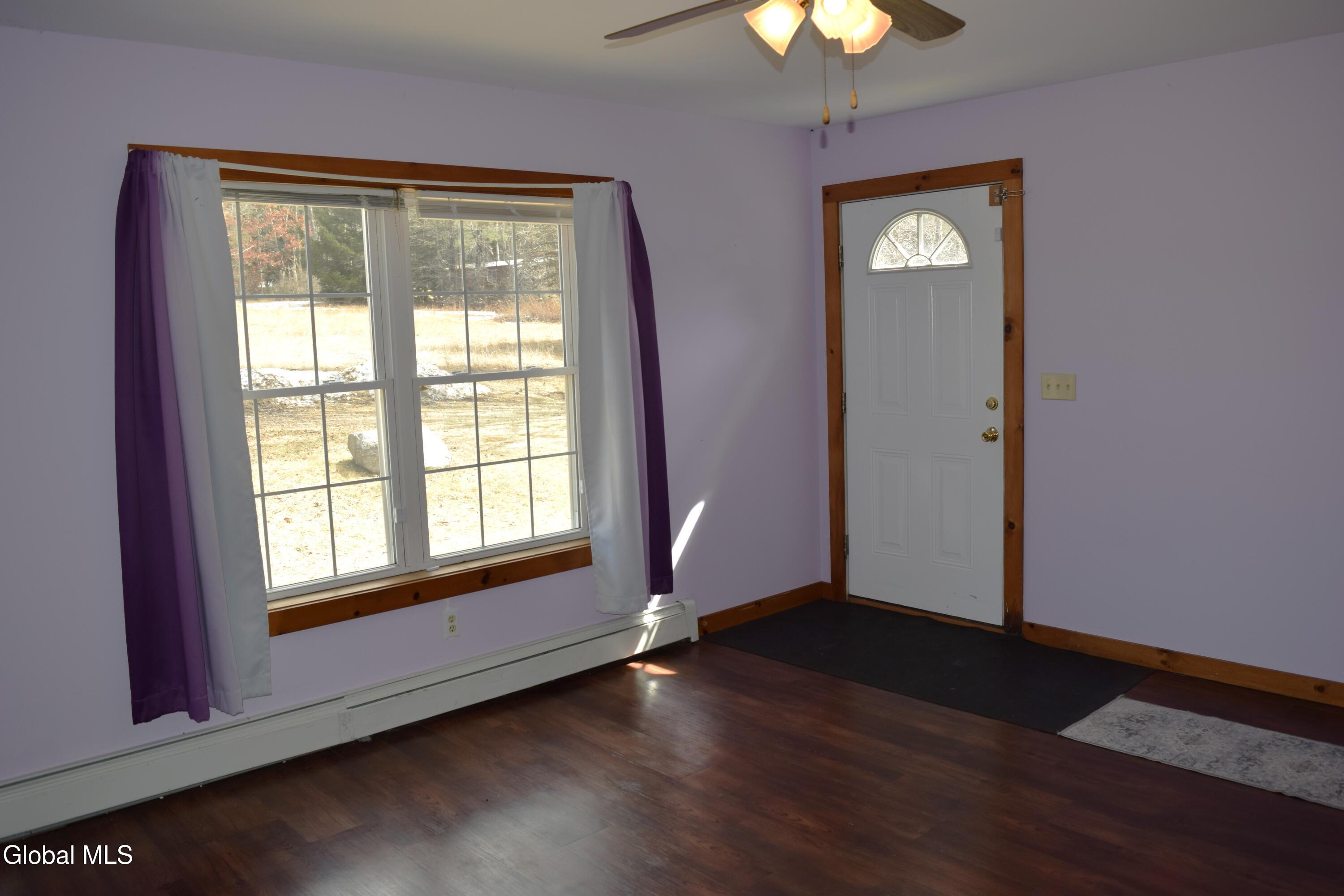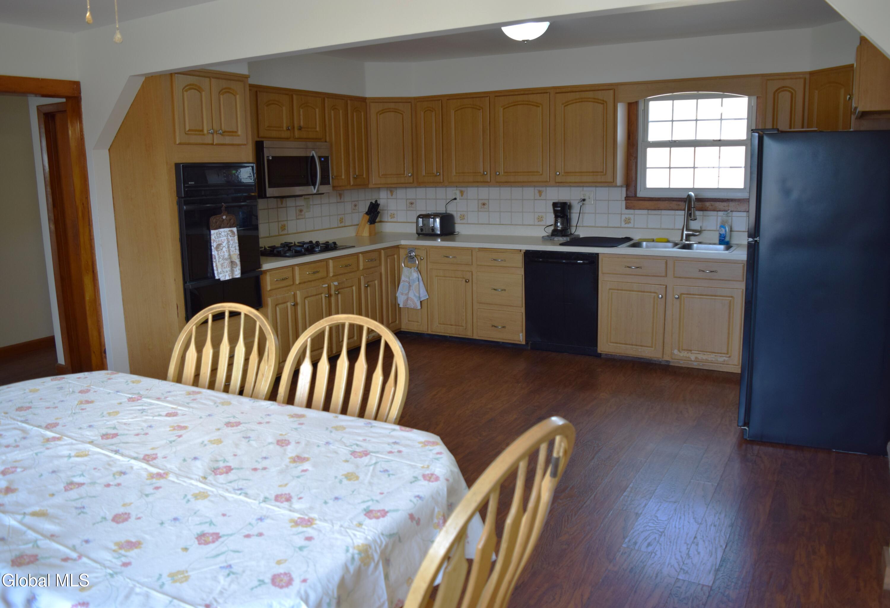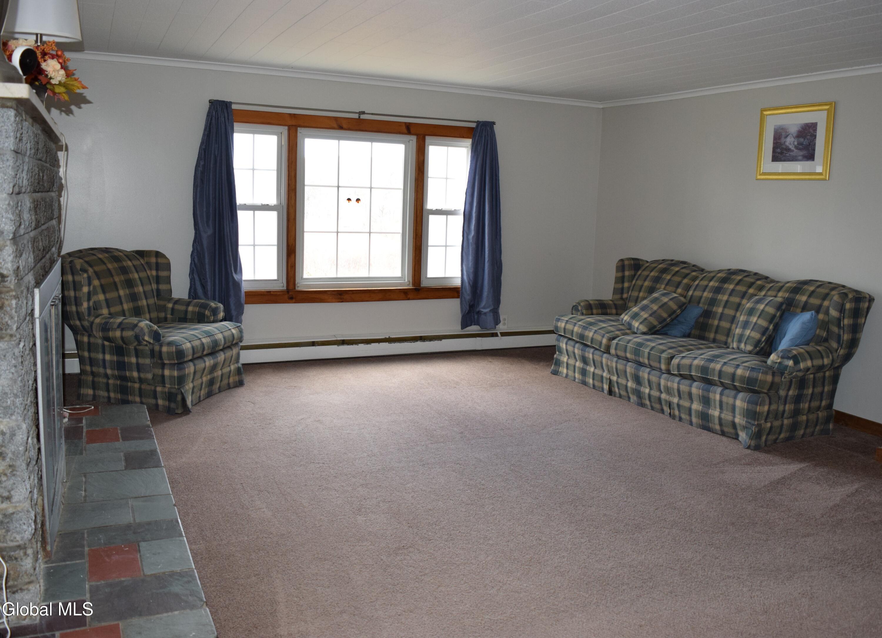Situated on a desirable 3.71 acre parcel, this spacious property offers the perfect blend of peaceful rural living and convenient proximity--just 10+- minutes (approximately 7 miles) from the City of Saratoga Springs. The main home features 5 bedrooms, including 3 located on the first floor, making it ideal for flexible living arrangements. Enjoy an open-concept kitchen and dining area, two full bathrooms on the main level, and the convenience of a 1st floor laundry area. The inviting living room is highlighted by a cozy wood-burning fireplace, perfect for relaxing evenings. In addition to the oil-fired hot water boiler, the home is equipped with an optional use wood burning boiler for potential considerable cost savings. The roof is approximately 6 years old, offering peace of mind for years to come. A standout feature is the large detached 2 car garage, which includes a partially converted space. One bay remains for parking, while the rest of the structure--both the first and second floors--has been transformed into a finished in-law apartment. This separate living space includes both interior and exterior access, its own oil fired hot air heating system, propane hot water heater, and a separate septic system making it ideal for extended family. The property itself gently slopes upward and is primarily open, with a wooded area at the rear. As you approach the back of the land, you'll be rewarded with scenic mountain views, adding to the property's charm and tranquility.