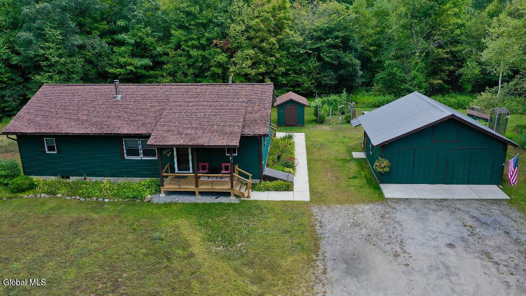 Welcome to a serene and private Adirondack retreat where thoughtful design meets natural beauty. This unique offering includes two separate parcels: a charming 3-bedroom, 1.5-bath ranch on a 1-acre lot, and a spacious 5 plus acre vacant parcel located directly across the road—ideal for expansion, recreation or investment. Step inside to discover a stylishly updated Adirondack home with timeless characters - featuring newer appliances and a cozy wood stove. The inviting three-season room (fitted with diffuser screens - bright yet comfortably shaded) and outdoor decks are perfect for entertaining or quiet evenings under the stars. Perennial gardens, fire pit and a small pondle (smaller than a pond, bigger than a puddle) enhance the peaceful setting, while a full-house generator and newer roof offer peace of mind. The lower level boasts high ceilings, a large family / game room, additional bathroom, 2 extra rooms and a heated workshop—adding both comfort and versatility. A detached two-car garage and shed provide ample storage. Across the road, the vacant parcel invites you to expand hiking trails, explore the seasonal stream, and immerse yourself in nature. From the top of the property, enjoy filtered views of Sleeping Beauty, Cat, and Thomas Mountains. Conveniently located - just minutes from Exit 25 on the Northway (I-87), North Warren School, and an hour to Albany Airport.