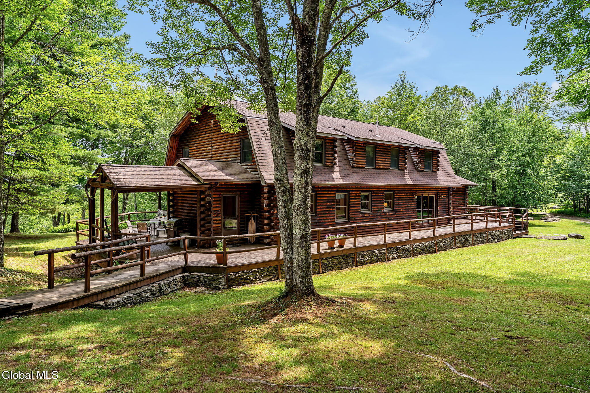 UNIQUE PRIVATE SECLUDED, these TWO BEAVER MOUNTAIN LOG HOMES have been a fulltime family residence for years. On 50 acres, they have individual systems for septic, well, and underground electric. Main house is approx 3796 SF. Spacious first floor includes living room/library, a formal dining room, the eat in kitchen, half bath, and small office. Also off the kitchen is a laundry/ mud room with ingress/egress from outside. Continuing to the opposite end is the large family room. Upstairs is a large master suite with ensuite bath and 3 more bedroom and a full bath. The second log is appox 2432 SF. The main floor is comprised of an open concept cathedral ceiling living room/dining room with stone fireplace (wood) and sliders leading out to the deck. 2.5 hours from NYC and an hour from Albany