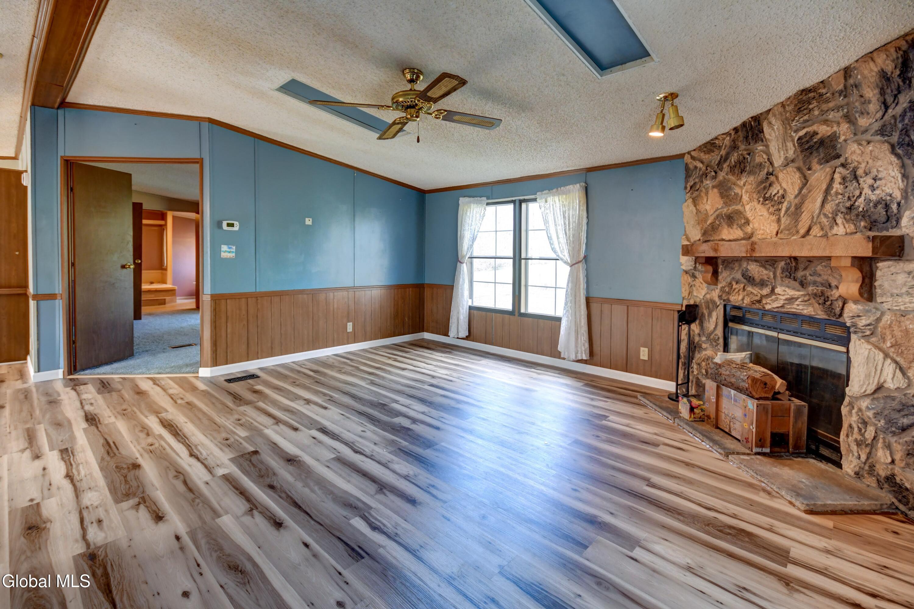Discover the perfect blend of comfort and tranquility in this charming 3-bedroom, 2-bathroom manufactured home, ideally situated on just under an acre, offering picturesque views and access to a serene creek. A prime location just outside of Amsterdam in the Broadalbin-Perth School District, it balances the best of country living with the convenience to nearby shopping. Step inside to an inviting open-concept layout, featuring brand new vinyl flooring and trim that adds a modern touch to the home. Freshly painted kitchen cabinets and a new refrigerator & stove gives it an updated look. The spacious living areas are enhanced by a cozy fireplace and pellet stove, perfect for those chilly evenings. While central air has been added for those hot summer days. Picture mornings on the back deck surrounded by nature! A bird watchers paradise- over 20 species of birds. Enjoy the convenience of a well maintained 2-car garage and two additional sheds, providing ample storage for all your outdoor hobbies. With a newer roof and just a few more updates of your own, you will be ready to enjoy years of country living in a perfect location close to everything! Seller says make an offer!