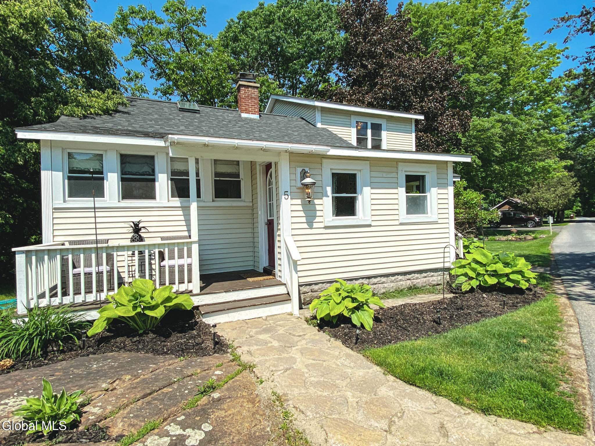 Charming and desirable home located across the road from Lake George. 2,314 sq ft of living space with 3 bedrooms and 2.5 baths. Two bedrooms on first floor, primary bed/bath on the second floor. Completely furnished with furniture only 4 years old. Hardwood floors throughout. Large formal dining room with fireplace. Living Room with French doors to wrap-around deck for entertaining. Laundry Room on first floor. Two covered porches. Level lot just under an acre. Lake George School District and Town of Queensbury. Zoning allows short term rentals. DEEDED LAKE ACCESS TO POSSIBLE DOCK SPACE.