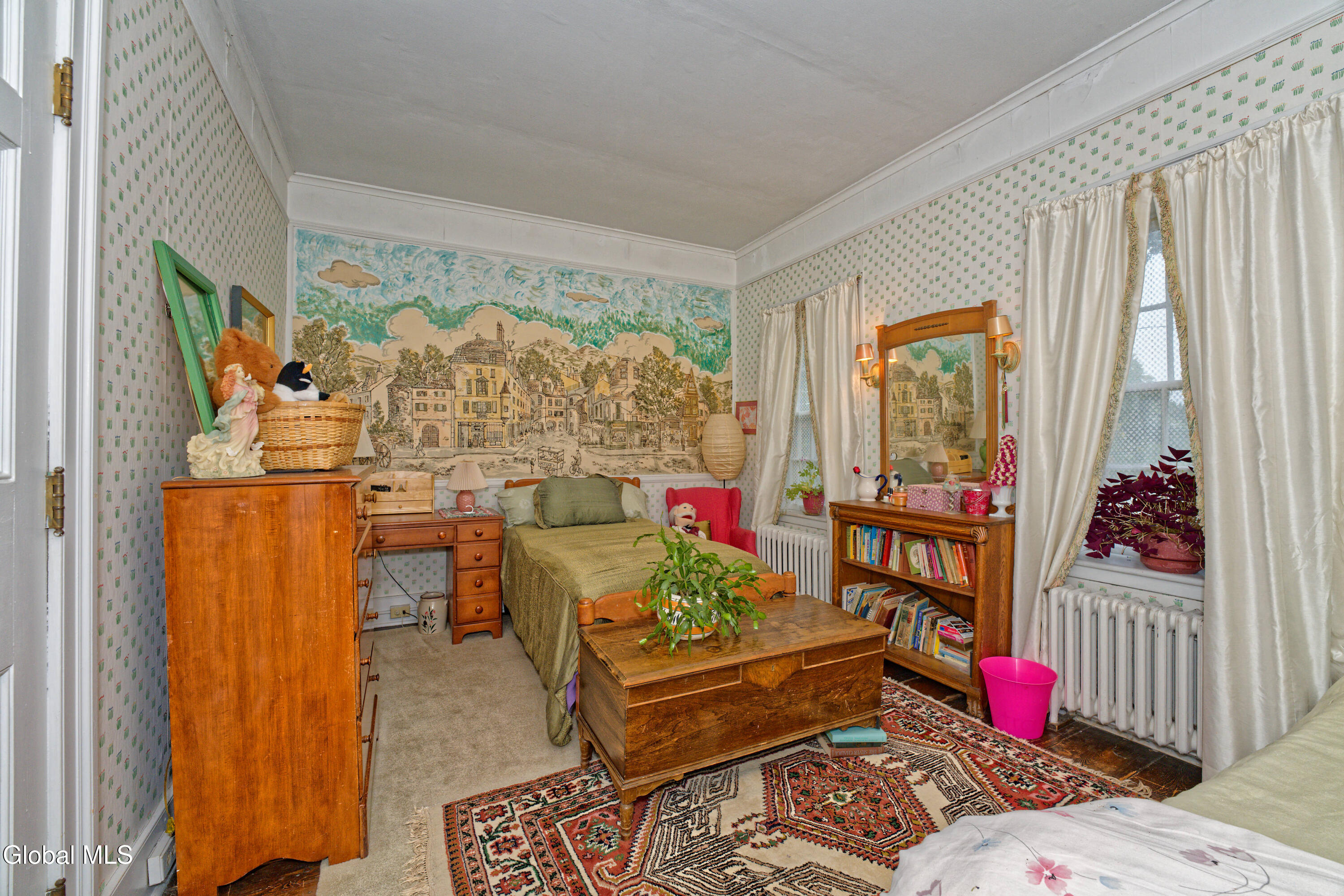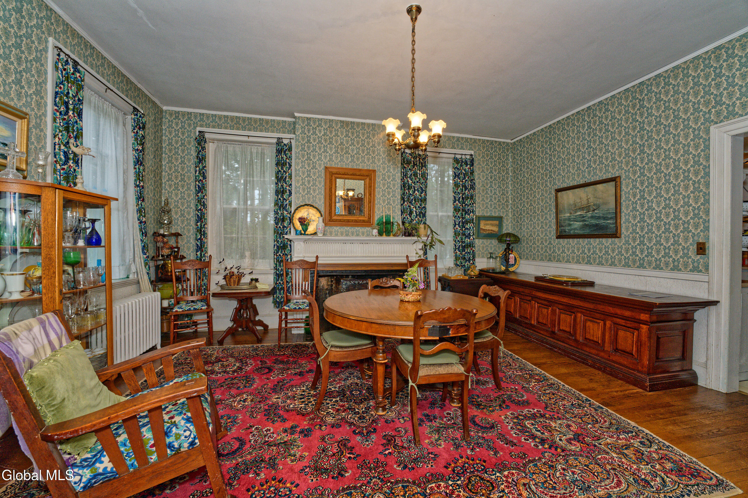 Step inside this rare Hudson Falls treasure, built in 1802 and rich with history and character. Offering nearly 3,800 sq ft, the property includes 6 spacious bedrooms, 4 full baths, 15 total rooms, and 3 fireplaces. A custom den, crafted from Bronk lumber for Mr. Kellogg, showcases the craftsmanship that makes this home truly unique. Lovingly maintained by the same family for over 60 years, it is now ready for its next chapter. Zoned Mixed-Use, the property offers flexibility for residential living, professional office space, or other approved commercial applications. Set on just under an acre with a 2-car garage, perennial gardens, and strong Main Street visibility, it combines privacy, functionality, and convenience. Close to shopping, dining, and on the bus route, this landmark property presents a rare opportunity to own and reimagine a piece of Hudson Falls history.