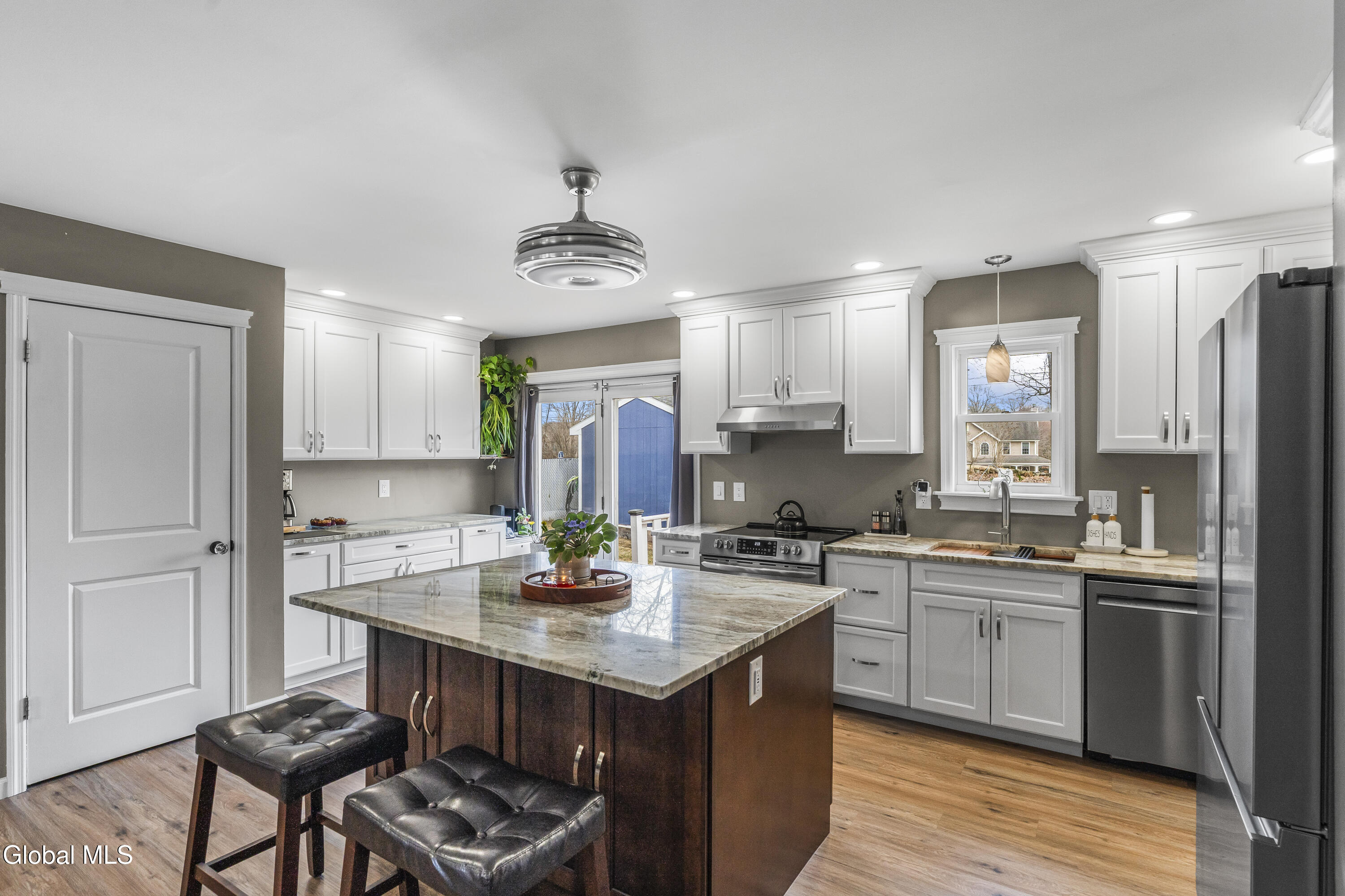 Welcome to Terrel Hills--an established and sought-after neighborhood just minutes from downtown Saratoga Springs, scenic parks, and local hiking trails. This beautifully updated home offers the perfect blend of comfort, functionality, and location in desirable Saratoga County. Step inside to an open-concept kitchen and dining area featuring a spacious center island--ideal for entertaining, gathering, and everyday living. The updated kitchen is complemented by a generous pantry, providing exceptional storage and convenience. Upstairs, you'll find three well-sized bedrooms and a full bath, while just a few steps down from the kitchen and dining area is a large, inviting family room, along with a cozy wood stove, half bath and laundry area. The basement adds even more versatile space, complete with a bar area for entertaining, craft room, and additional storage. Outside, enjoy your own private backyard oasis with over 400 sq ft of gardens featuring a variety of perennials and berry plantings, a cozy gazebo, and a garage-sized shed--perfect for hobbies or extra storage. A full list of upgrades, perennial plantings and amenities available. Located within the highly rated Schuylerville School District and close to shopping, dining, and all that Saratoga Springs has to offer, this move-in ready home is a must-see.