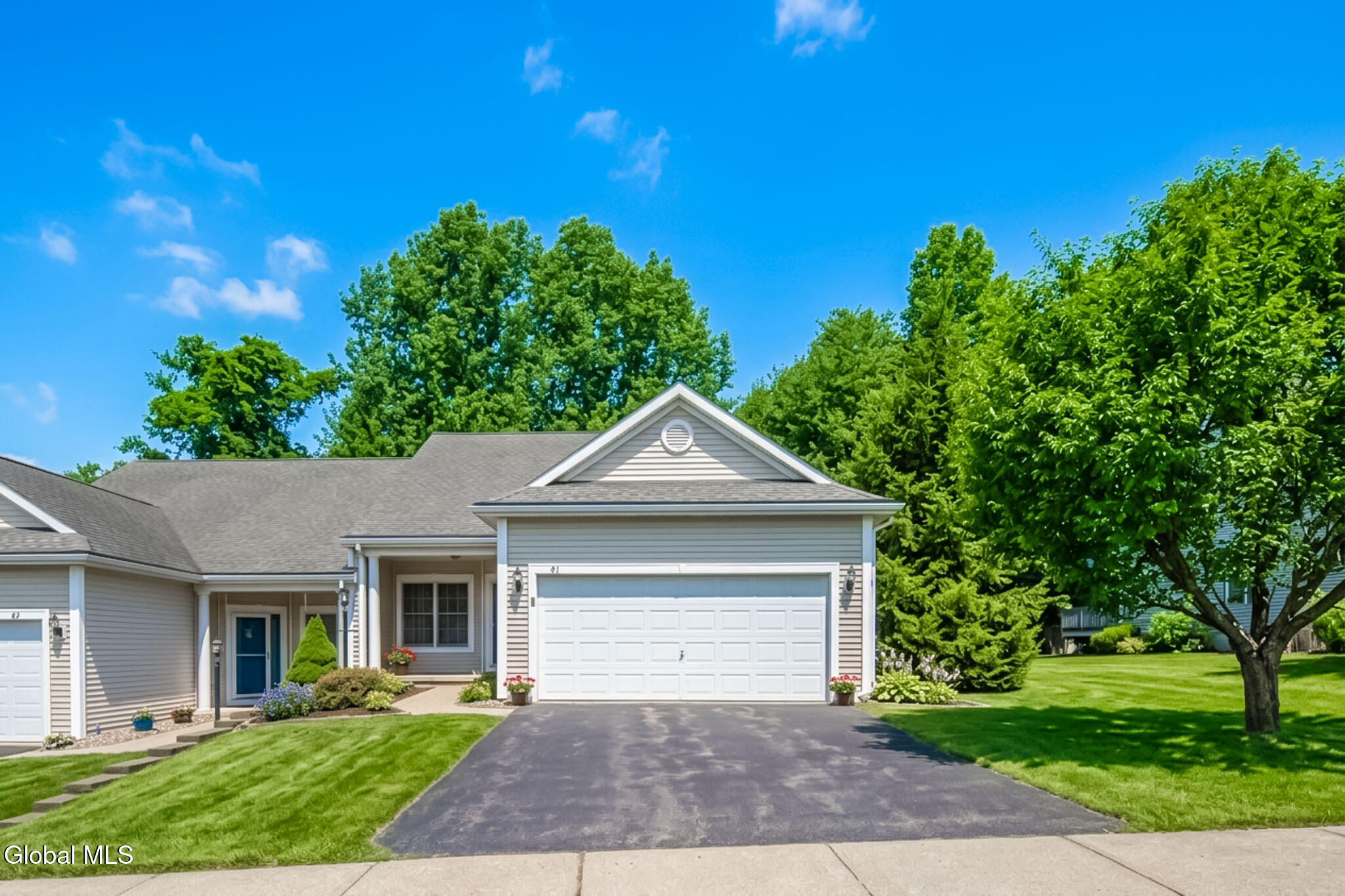 Welcome to 51 Rockrose, this sun filled Forrest Pointe townhome has many upgrades all on single floor living in the award winning East Greenbush school district. This highly coveted floor plan includes a large great room with a vaulted ceiling, a gas fireplace, open floor plan, expansive windows, and hardwood floors. The eat in kitchen and dining room include plenty of space to entertain. The first floor primary suite, includes the bathroom ensuite with a double sink vanity, and a walk in closet, and first floor laundry. The guest bedroom includes its own full bathroom. The tiled entryway and attached two car garage provide a crucial buffer against the all seasonal elements, The full basement includes over 1,500 square feet of space ideal for storage and additional living space yet to be utilized. The home backs up to the woods offering a peaceful and quiet setting. Forrest Pointe is a convenient community without any HOA. Updated air conditioning, insulated attic, vinyl siding, vinyl windows, and asphalt shingle roof all make for an easy home to maintain. Just steps to the Empire State Rail Trail,, and close to shopping and everyday conveniences. It's just minutes to Regeneron, the Universities, and downtown Albany. Check out the full 3D virtual reality Matterport tour for more information.
