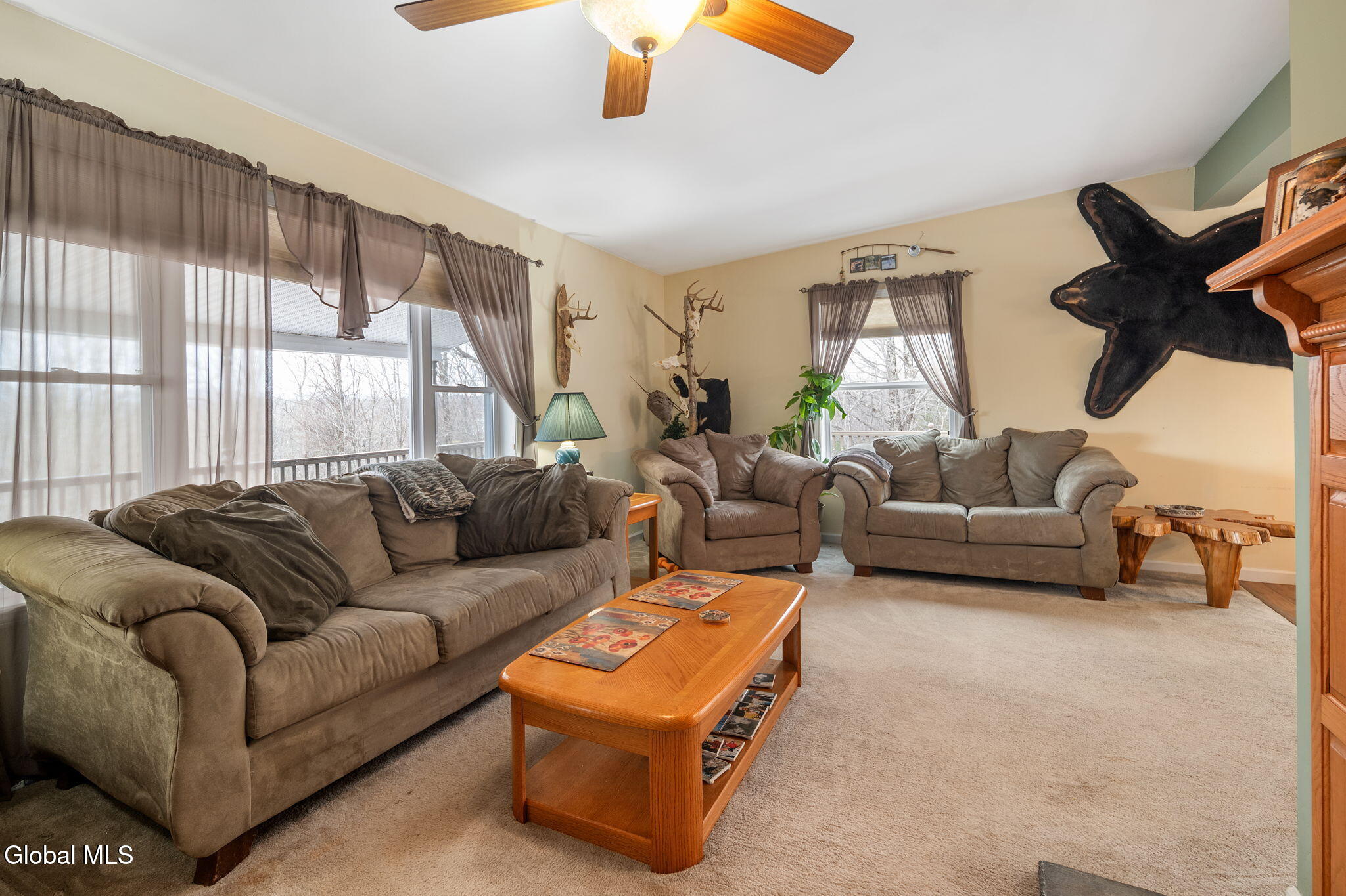 Experience the perfect blend of comfort and refined country living with this 3-bedroom, 2-bath home set on 6 acres with breathtaking Catskill Mountain views stretching for miles. Just a short walk from Stone Store & Dutton Ridge State Forest, enjoy nearly 2,000 acres of hiking, exploring, and outdoor recreation right at your doorstep. Inside, the sun-drenched country kitchen boasts a peninsula island with breakfast bar, an inviting dining area, and flows seamlessly into the warm living room with a cozy fireplace. The spacious primary bedroom features a private ensuite full bath. The lower level adds even more livable space, complete with a wood stove, utility room, laundry, mudroom, and ample storage. Convenient garage access beneath the home makes everyday living effortless. Located just 15 minutes from the charming village of Middleburgh and 30 minutes from Windham, this move-in-ready home is designed for comfortable, elevated country living. Pack your bags--your search ends here!