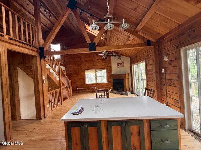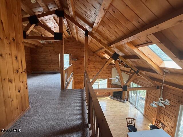 Secluded modern log cabin on a horse farm with a tree-lined pond, in-ground pool, and huge detached garage. Enjoy peaceful views from the deck overlooking the pond. Minimal work needed-move right in and start enjoying the property.