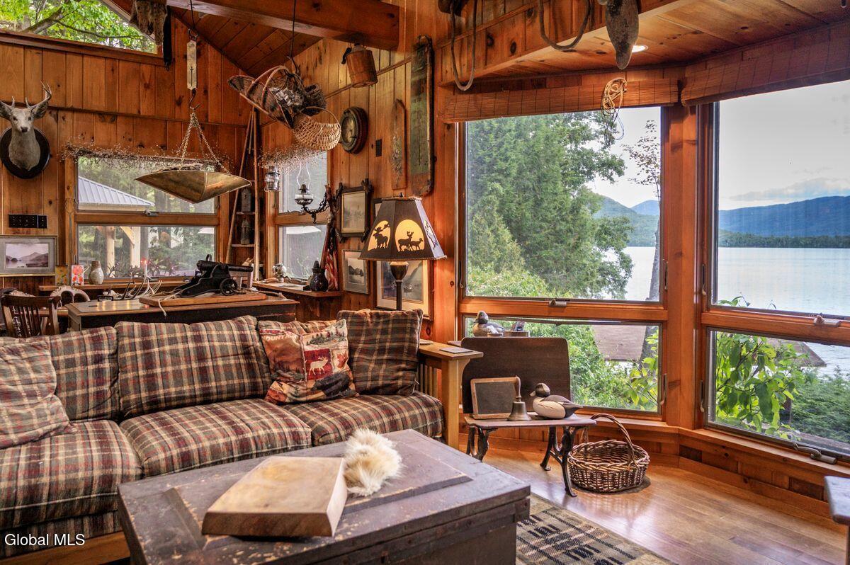 Two remarkable houses make up this unique Lake George lakefront compound. The first is the original 1952 cabin which was updated in 2005, true to its authentic ADK origin. (its modern additions include raised roof and radiant heat floors.) The cabin is connected via a unique and charming breezeway in the back of the property to the new home. This addition sits over a garage large enough to store the boat! Built in 2015, the new home has an uncanny feeling of being connected yet a step up in elevation and in amenities. Both homes are four-season with genuine Lake George character. From the wooded, nature-lover's setting, with several vantage points overlooking the lake... all the way to the boathouse waterfront, all who visit discover the magic! Offered for the first time in 75 years, this rare 3.93-acre property in Bolton Landing's desirable Northwest Bay features 198 feet of pristine lakefront. Nestled among mature forest, only the third owner in a century and a half will call this land home. Located on Jacobi Point Road, it reflects the legacy of Abraham Jacobi—sanctuary, privacy, stewardship of the land, and a deep appreciation for natural beauty and harmony with nature. A timeless retreat, awaiting its next chapter... a once-in-a-generation opportunity to own a piece of Lake George history... Come experience timeless Lake George.