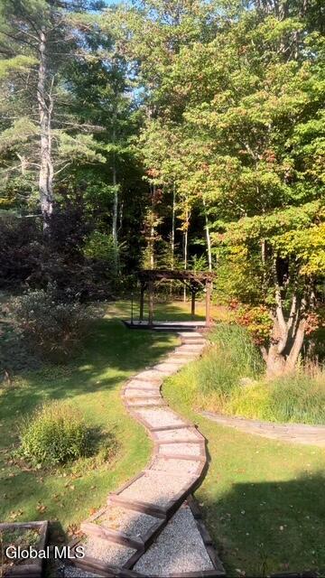 Beautifully refinished home! Large spacious kitchen with new to newer appliances. New 1/2 bath, new hardwood floors. Open bright foyer w/new tile hardwood inlay floors. New dining room w/raised panels. New luxury primary suite w/gorgeous tile bath + walk-in closet. 2 additional bedrooms + new full bath. New carpeting. Sliders to rear deck looking out on the picture perfect 1.4 acres with pergola and gardens and additional separate multi garage. New water softener 2023, 50yr roof 2020, furnace 2022, washer/dryer 2 yrs old.