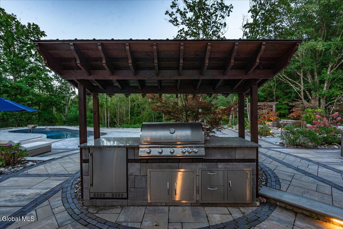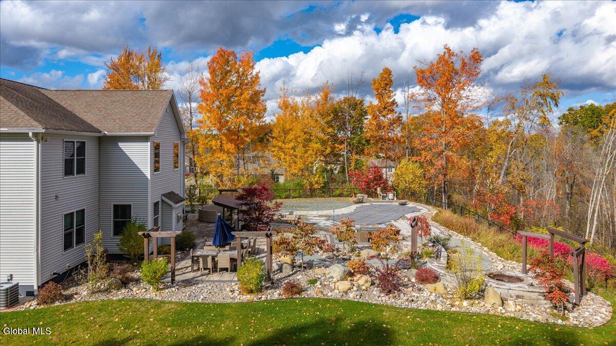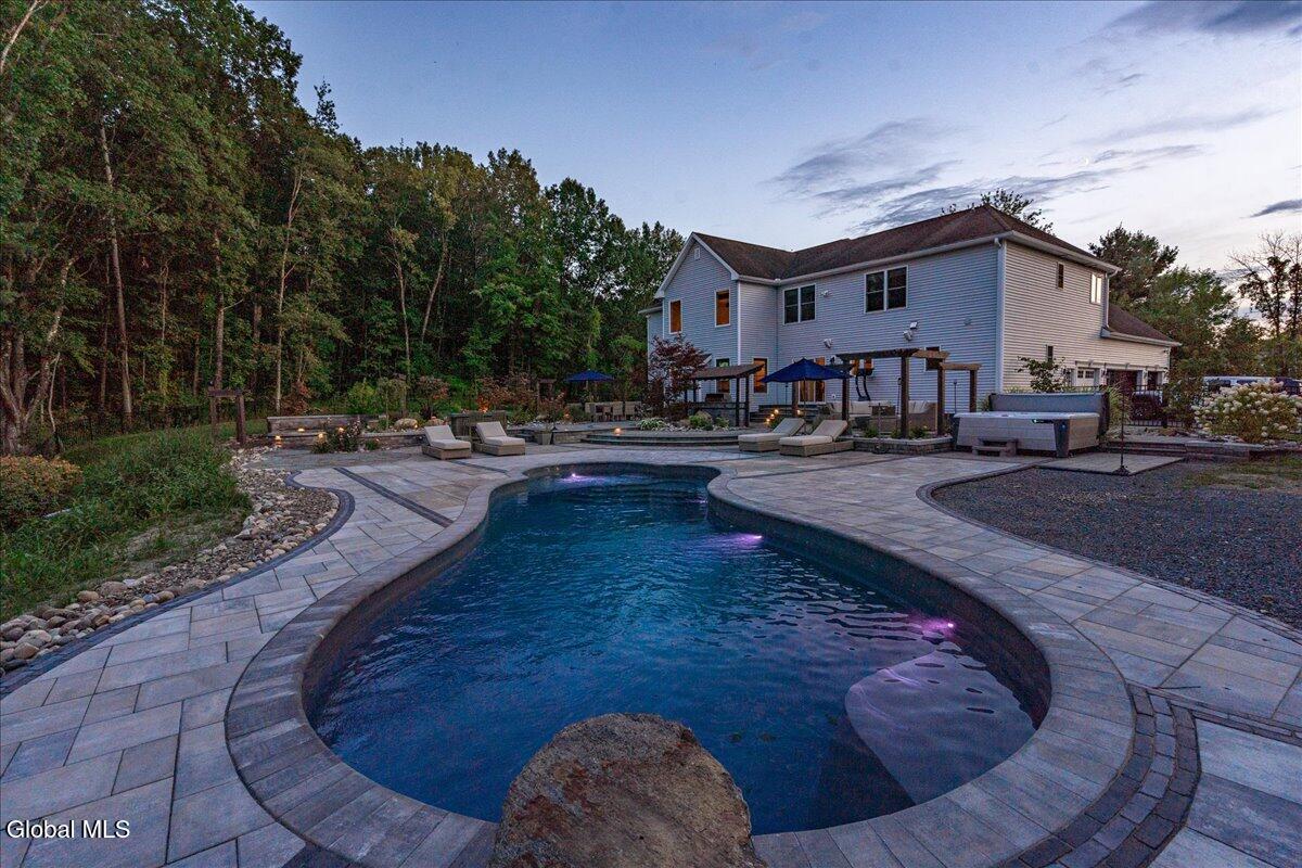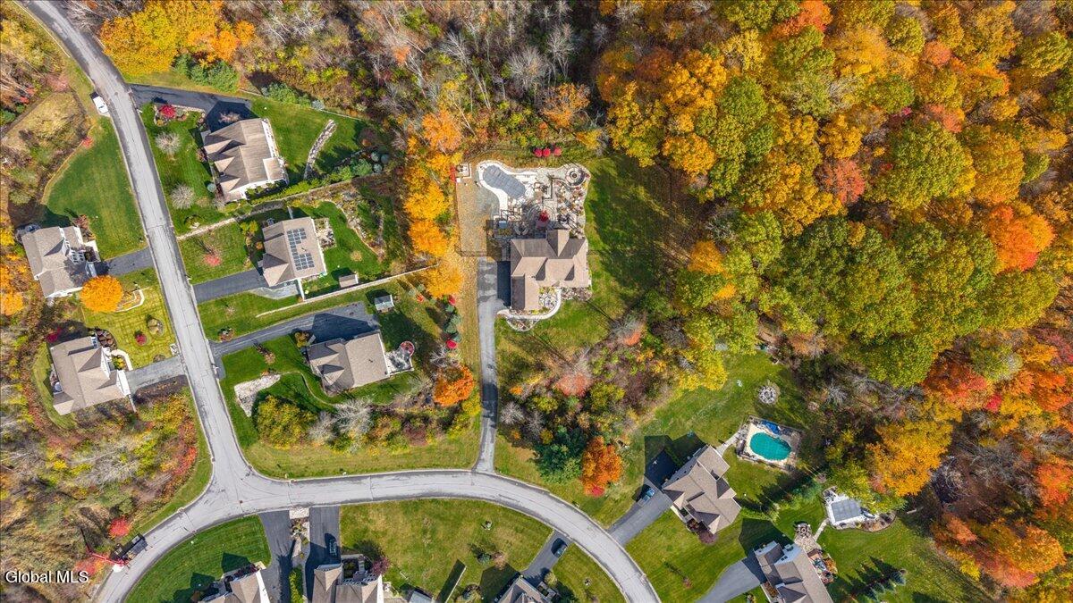 *Multiple offers due Monday @ noon* Welcome to this exceptional statement home in the prestigious Winding Brook Estates, where timeless elegance meets modern indulgence. Situated on a beautifully landscaped 1.98 acre lot, this custom-built residence offers unmatched privacy, superior craftsmanship, and resort-style amenities. Property highlights include over 4000 sf of luxury w/ 5 bedrooms, 4.5 baths, hardwood floors and surround sound throughout. Stroll by the beautifully landscaped entry path and serene water feature to the grand two-story entry and expansive open floor plan. You'll appreciate your own corner office, private and stylish. Be amazed by the massive two-story brick accent wall and gas fireplace in the great room. The gorgeous modern kitchen features an incredible butcher block center island w/seating for 8, granite countertops, farmhouse sink, double oven, wine fridge, brick accents and custom cabinetry. The elegant dining room boasts a tray ceiling, wainscoting, and chair rail detailing. First-floor guest suite with full bath. Plus convenient mud room, laundry and guest half bath. Upstairs the spacious primary retreat rewards you with luxury and style. Indulge in the his-and-her walk-in closet or take a spa day in the jetted soaking tub. In addition there's a dual sink vanity, walk-in shower, private throne room and abundant natural light. Three additional upstairs bedrooms; 2 with Jack & Jill bath and generous closet space, one with private bath. Fully finished lower level with granite entertainment bar, home theater, bonus office/den, and egress window. The outdoor oasis features a Saltwater inground pool and hot tub surrounded by lush landscaping. Custom paver patio with multiple seating areas and built-in covered kitchen w/BBQ and fridge. Gas firepit for year-round gatherings. Surround sound system extends seamlessly from inside to outdoors. Lawn sprinklers in front & back for easy maintenance.