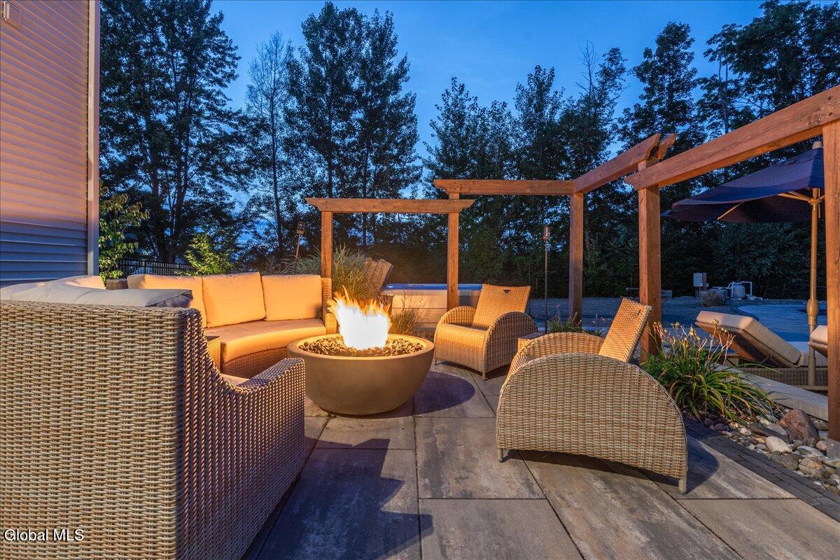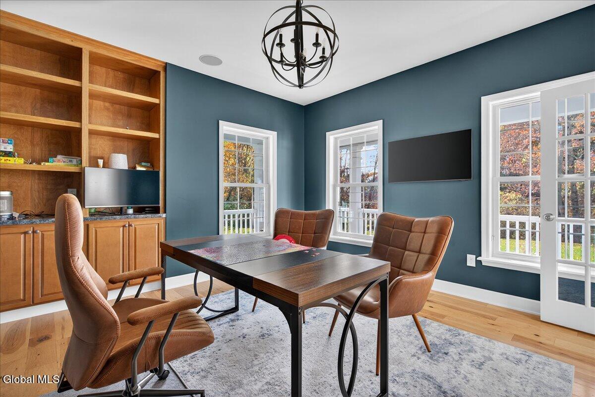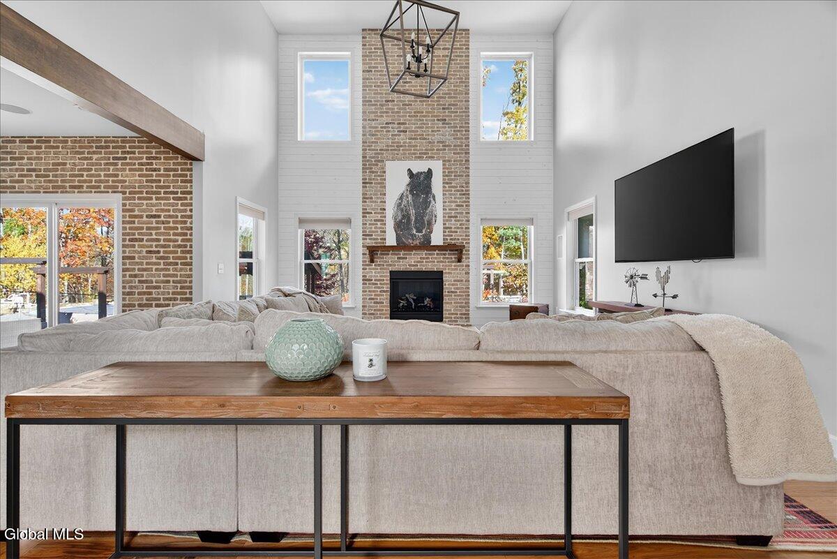 *Multiple offers due Monday @ noon* Welcome to this exceptional statement home in the prestigious Winding Brook Estates, where timeless elegance meets modern indulgence. Situated on a beautifully landscaped 1.98 acre lot, this custom-built residence offers unmatched privacy, superior craftsmanship, and resort-style amenities. Property highlights include over 4000 sf of luxury w/ 5 bedrooms, 4.5 baths, hardwood floors and surround sound throughout. Stroll by the beautifully landscaped entry path and serene water feature to the grand two-story entry and expansive open floor plan. You'll appreciate your own corner office, private and stylish. Be amazed by the massive two-story brick accent wall and gas fireplace in the great room. The gorgeous modern kitchen features an incredible butcher block center island w/seating for 8, granite countertops, farmhouse sink, double oven, wine fridge, brick accents and custom cabinetry. The elegant dining room boasts a tray ceiling, wainscoting, and chair rail detailing. First-floor guest suite with full bath. Plus convenient mud room, laundry and guest half bath. Upstairs the spacious primary retreat rewards you with luxury and style. Indulge in the his-and-her walk-in closet or take a spa day in the jetted soaking tub. In addition there's a dual sink vanity, walk-in shower, private throne room and abundant natural light. Three additional upstairs bedrooms; 2 with Jack & Jill bath and generous closet space, one with private bath. Fully finished lower level with granite entertainment bar, home theater, bonus office/den, and egress window. The outdoor oasis features a Saltwater inground pool and hot tub surrounded by lush landscaping. Custom paver patio with multiple seating areas and built-in covered kitchen w/BBQ and fridge. Gas firepit for year-round gatherings. Surround sound system extends seamlessly from inside to outdoors. Lawn sprinklers in front & back for easy maintenance.