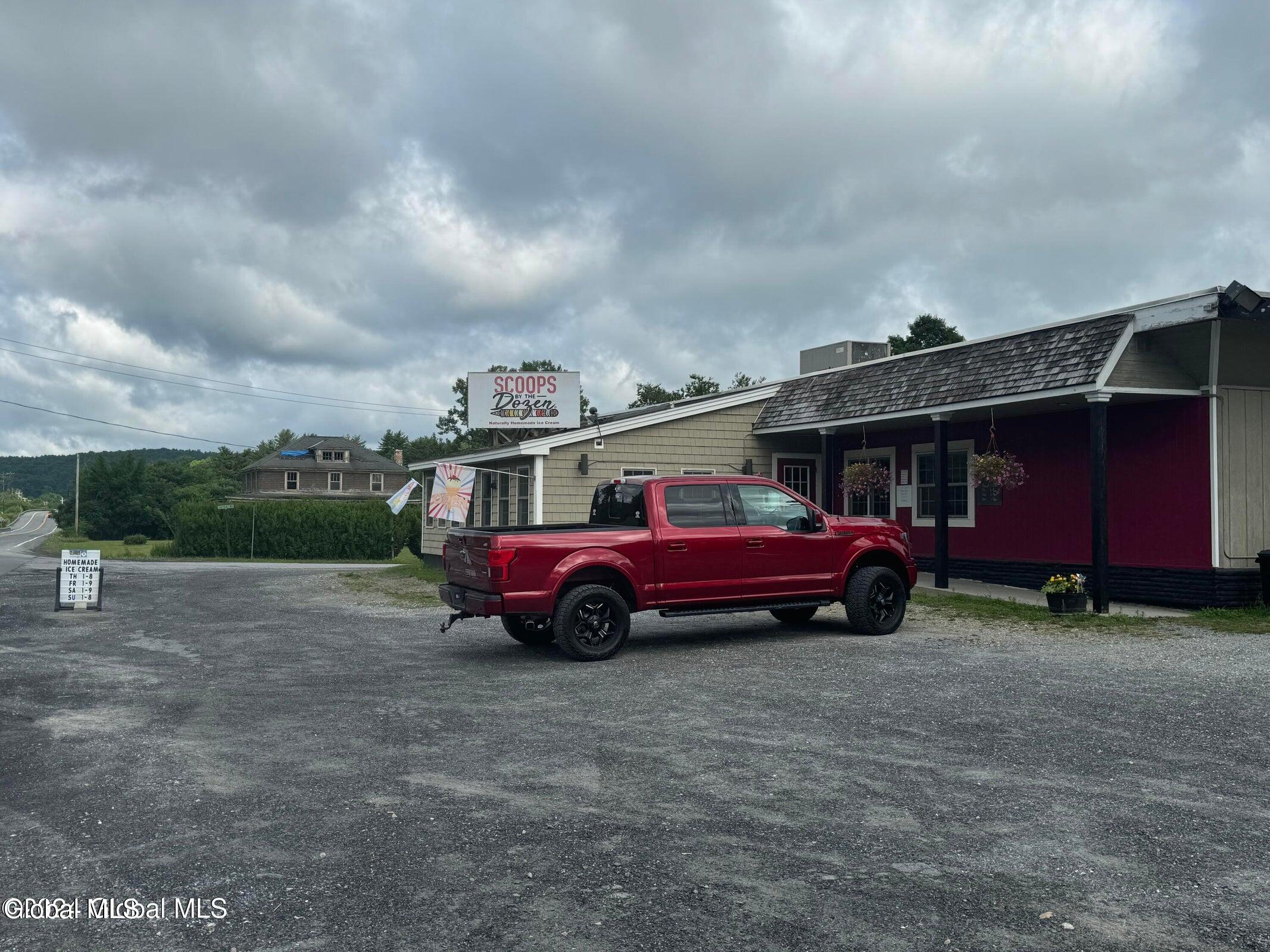 This 3,035 sq. ft. commercial retail building on 12.4 acres comes fully equipped with turnkey ice cream equipment, tables, chairs, a pool table, air hockey, and other furnishings--all for $240,000. Located on State Route 7 just off the 279 bypass to Vermont, it's a great investment opportunity currently operating as an ice cream parlor with everything needed to make premium ice cream. The property also features an efficiency apartment, ideal for an owner, manager, or as an Airbnb. With parking for over 30 cars in a scenic country setting, there's ample space for outdoor dining and events. Just steps from the New York/Vermont border and under 20 minutes from Williamstown, MA, plus only 45 minutes to Manchester, VT, Saratoga, or Albany, NY, the spot offers prime exposure to both locals and tourists. The building and 12.42 acres without equipment or furnishings are also available for $200,000.