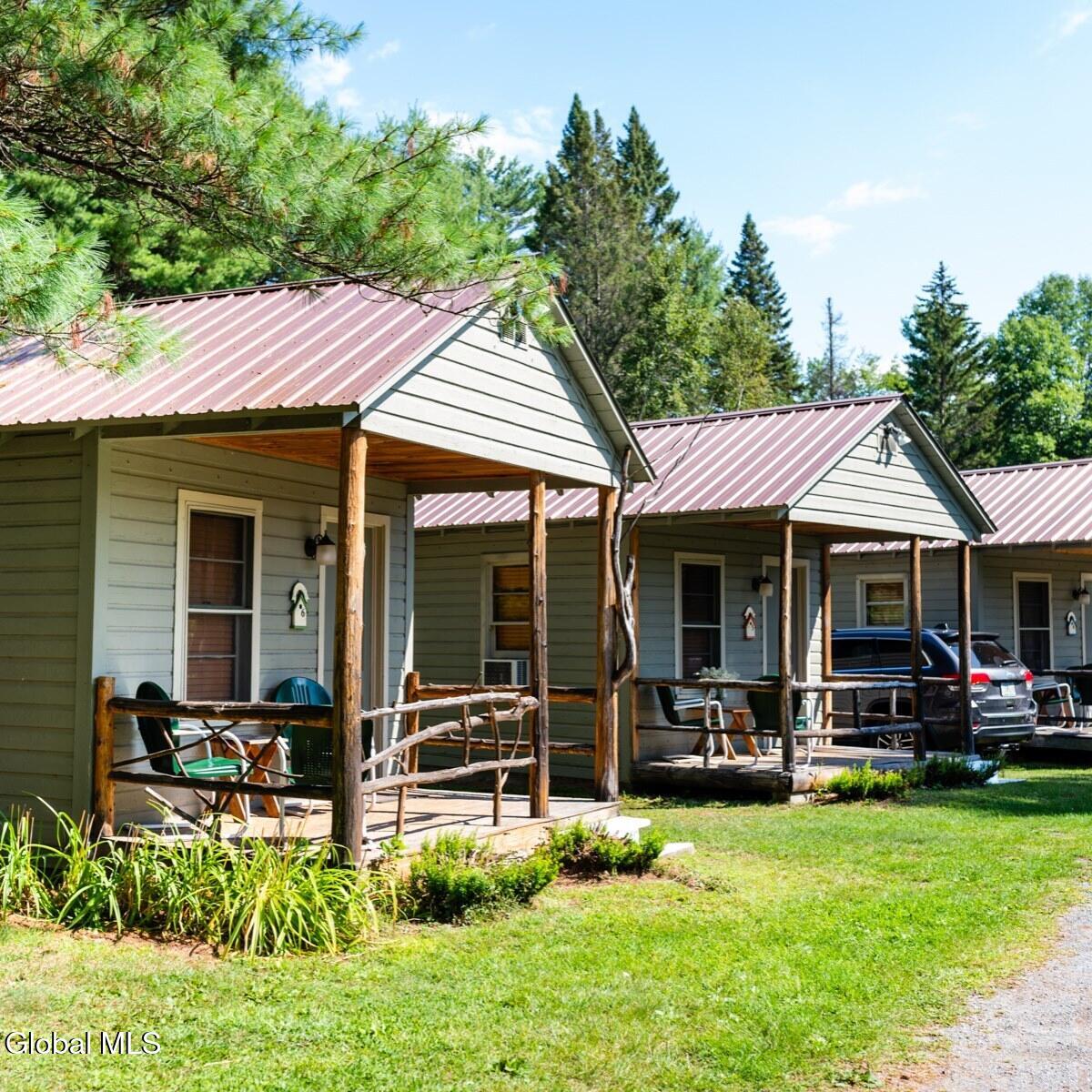 The Pine Tree Motel & Cabins is a well-maintained, family-owned hospitality property nestled among towering pines in the heart of the Adirondack Mountains. Located just minutes from Loon Lake with it's beach and boat launch, trails, and the charming hamlet of Chestertown, this established lodging destination offers a rare opportunity to own a turnkey, income-producing investment in one of Upstate New York's most sought-after recreation regions. In addition to the 1632' private residence and garage, the property features six clean and comfortable motel units, each with two double beds, plus six cozy standalone cabins offering classic Adirondack charm. Evenings at Pine Tree Motel & Cabins are a highlight, with a designated bonfire area for marshmallows, music, and stargazing beneath the clear Adirondack night sky. The property's layout provides privacy, natural beauty, and room for outdoor gathering areas, while still being centrally located near dining, shopping, skiing, boating, hiking, and year-round attractions. This is an outstanding opportunity for an owner-operator or investor seeking a proven hospitality business with expansion and value-add potential in a strong Adirondack short-term lodging market. Turnkey, historic, and rich with Adirondack character, the Pine Tree Motel & Cabins offers the ideal blend of lifestyle, income, and location. Possible Owner Finance.