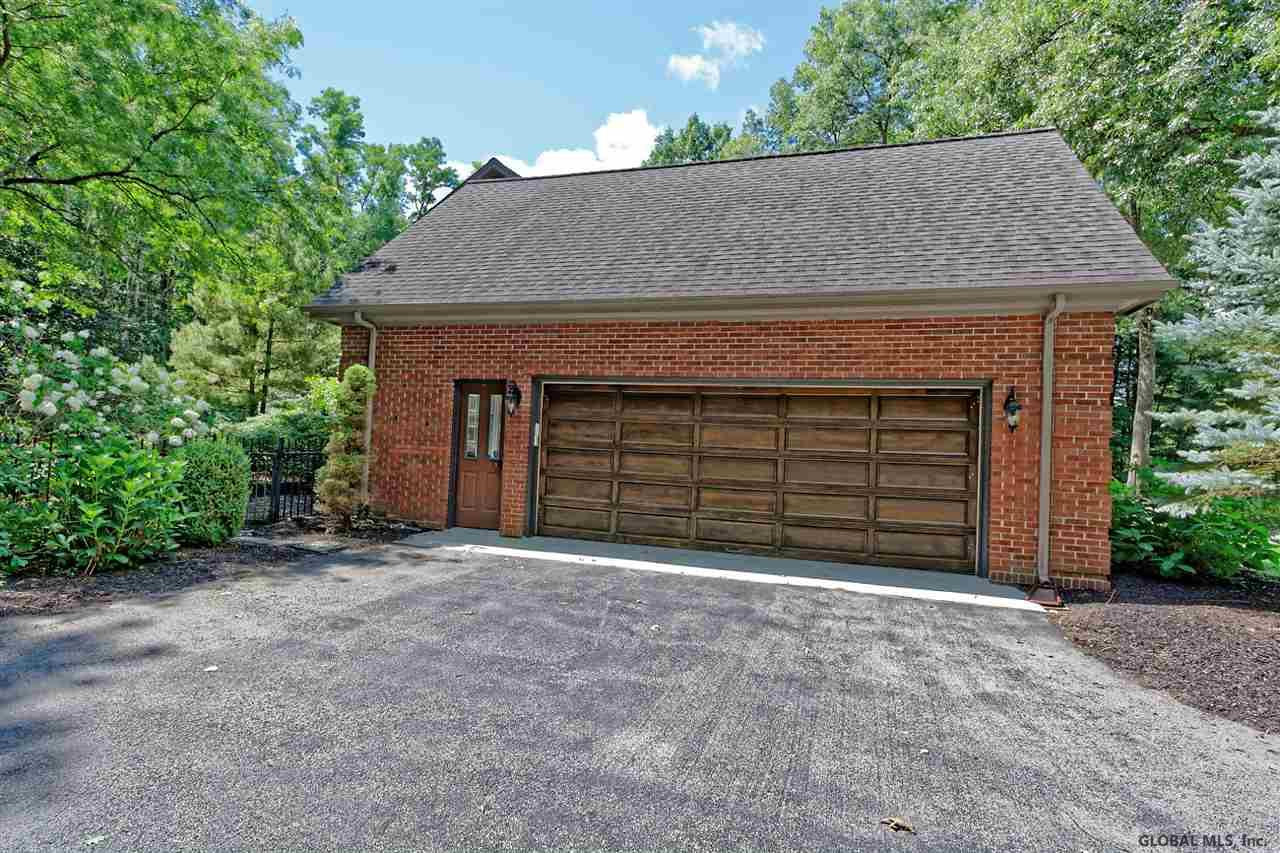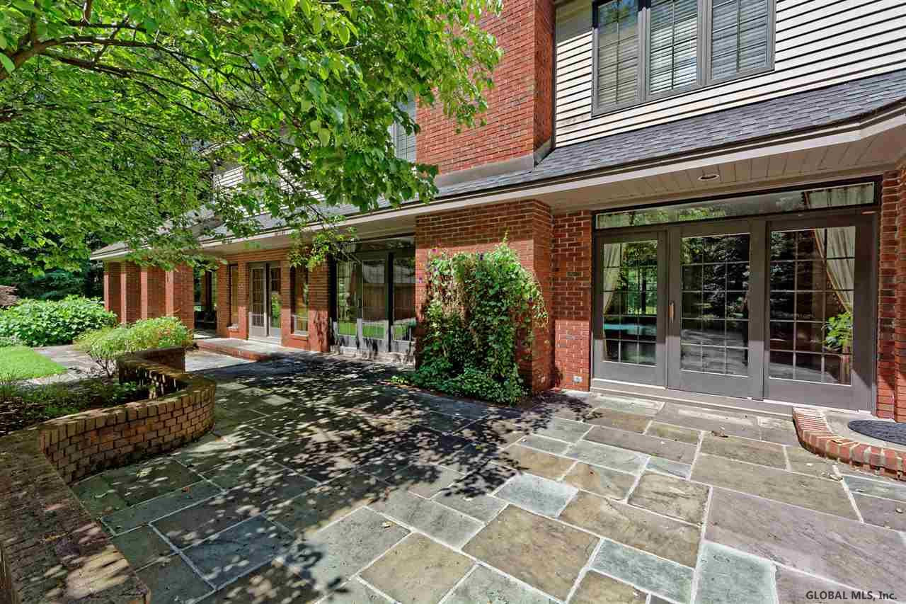 Spectacular custom brick home on 2+ private acres in prestigious Meadowbrook Estates. Located just 5 minutes from Saratoga Lake and the historic racetrack, this home blends luxury, privacy, and convenience. Designed for entertaining, it features a 2-story foyer, grand living room with built-ins for game night, a huge dining room, an office with its own fireplace, and an expansive chef's kitchen overlooking a backyard oasis surrounded by perennials and mature trees. The spacious first-floor master suite offers comfort and privacy creating a serene retreat within this exceptional 5-bedroom residence. The bluestone patio, sparkling in-ground pool, and charming brick pool house combine to create an exceptional outdoor setting for unforgettable summer entertaining. The finished lower level adds incredible versatility and a flex space for a dedicated fitness area, hobby room, or a generous billiards area. Hardwood floors, custom ceramic tile and granite are found throughout the home. A rare opportunity to own a distinguished estate in one of Saratoga Springs' most sought-after neighborhoods.