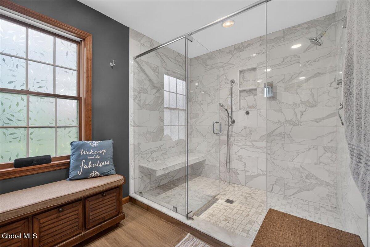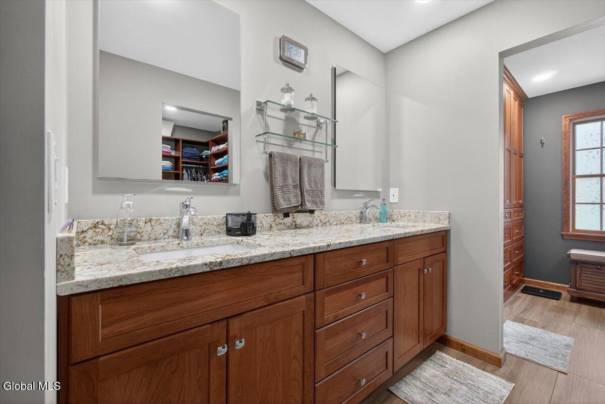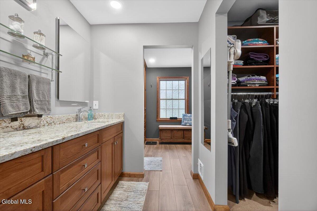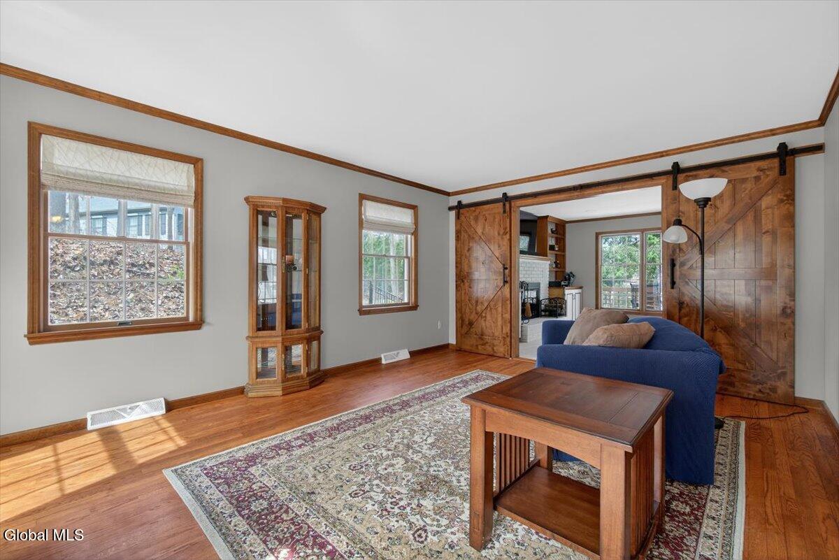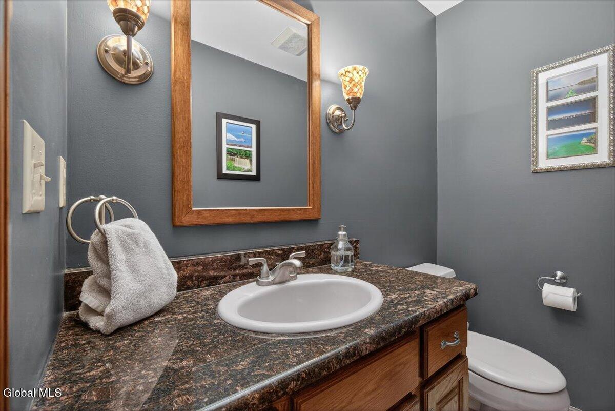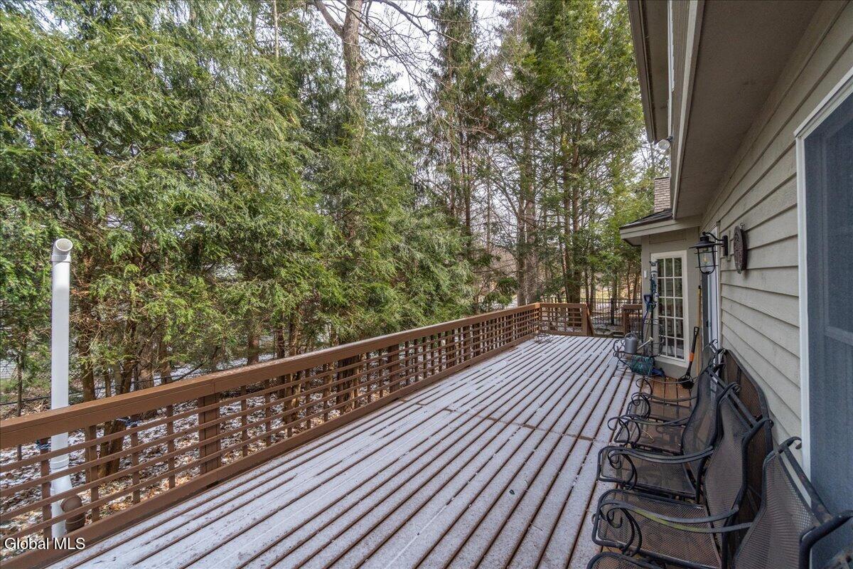 Open House Saturday 3/21, 12-2PM! Beautiful, well-maintained Colonial in the desirable Robinwood Estates of Clifton Park! Offering over 4,000 sq ft of living space, this home provides exceptional space and flexibility. The main level features a formal dining room and living room with gleaming hardwood floors, and a spacious family room with built-in shelving and a wood-burning fireplace. The remodeled kitchen offers stainless steel appliances, a brand-new cooktop, double wall ovens, granite countertops, and additional space for a dining table, with sliding doors leading to the backyard. Two half baths, a laundry room, and a den complete the first floor. Upstairs, you'll find four generously sized bedrooms and two full bathrooms. The primary suite includes a beautifully updated bathroom with a double vanity, a large walk-in closet, built-in storage, and a stunning glass shower with floor-to-ceiling tile. The finished basement is ideal for a recreation space or an extended living area, with walkout access and an additional full bathroom. Outside, enjoy stamped concrete walkways, a fenced backyard, and a spacious deck and patio, perfect for relaxing or entertaining. The yard offers both privacy and plenty of room to spread out. Conveniently located within the Shenendehowa School District and close to all that Clifton Park has to offer. Don't miss this great home!
