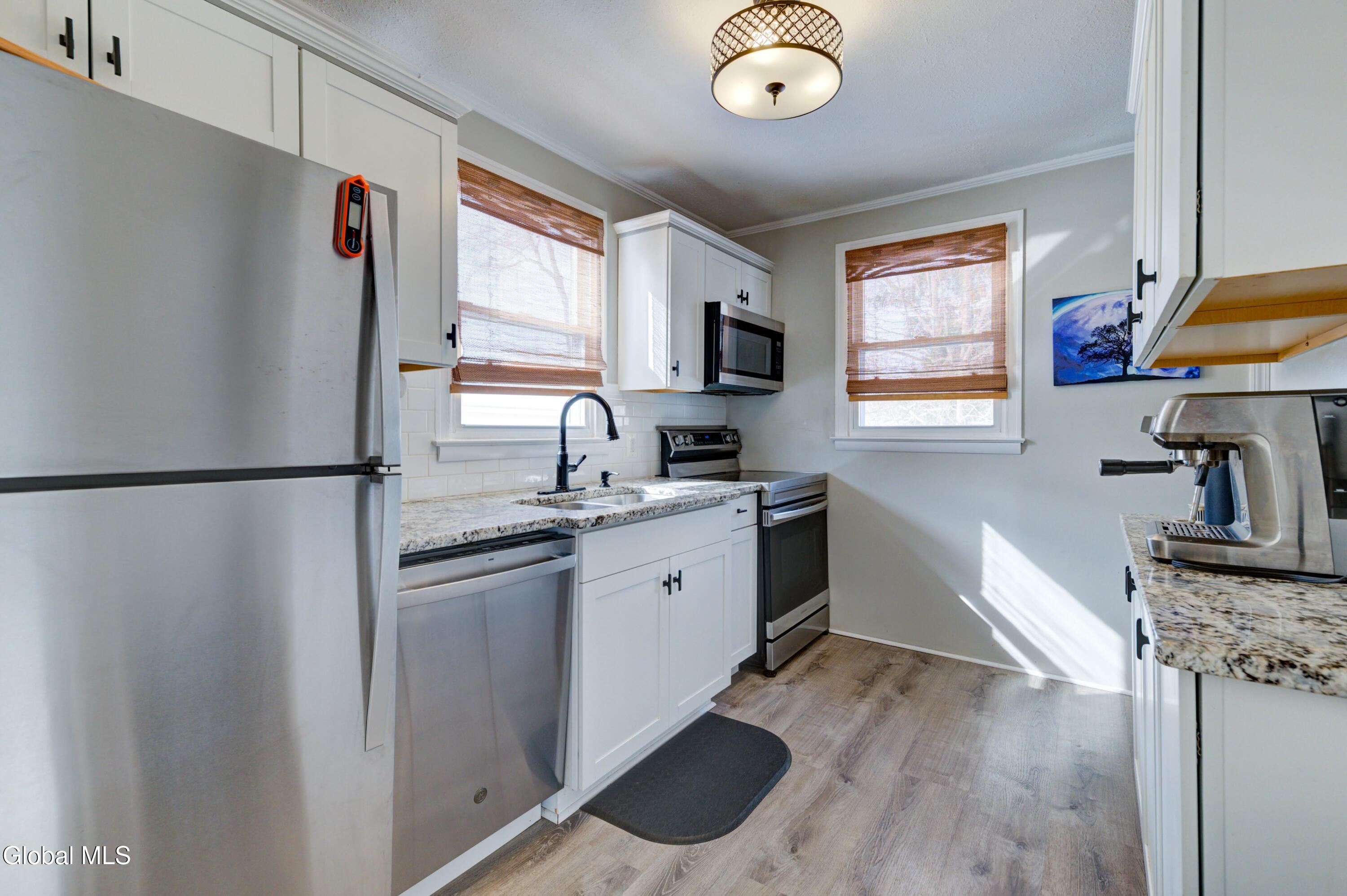 Welcome to this charming and move in ready ranch located in a desirable Deerfield neighborhood within the Whitesboro School District. Perfect for first time buyers or anyone seeking comfortable year round living, this well maintained home offers convenience, updates, and a spacious private yard. Inside you will find 3 bedrooms and 1 full bath, all thoughtfully arranged on one level. The bright living room features beautiful hardwood floors and flows easily into the dining area, creating a comfortable space for everyday living and entertaining. The updated kitchen includes granite countertops, offering both style and function. The full basement provides excellent storage and additional usable space, along with a washer and dryer. Whether you need room for hobbies, a workout area, or organized storage, this lower level adds flexibility. Step outside to enjoy the deck overlooking a large private backyard, perfect for relaxing or hosting gatherings. The property also includes a one car detached garage, paved driveway, and off street parking for multiple vehicles. With public water and sewer, central air and single floor living this home checks all the boxes!