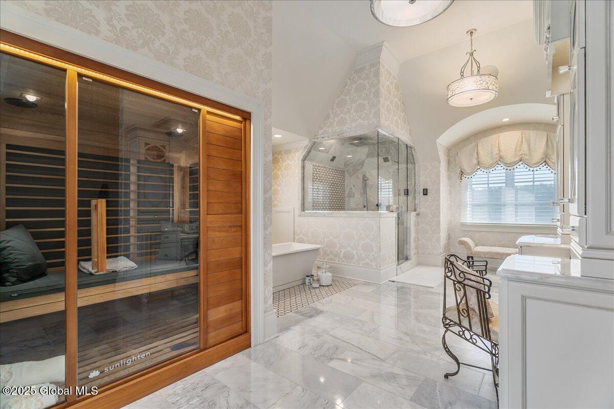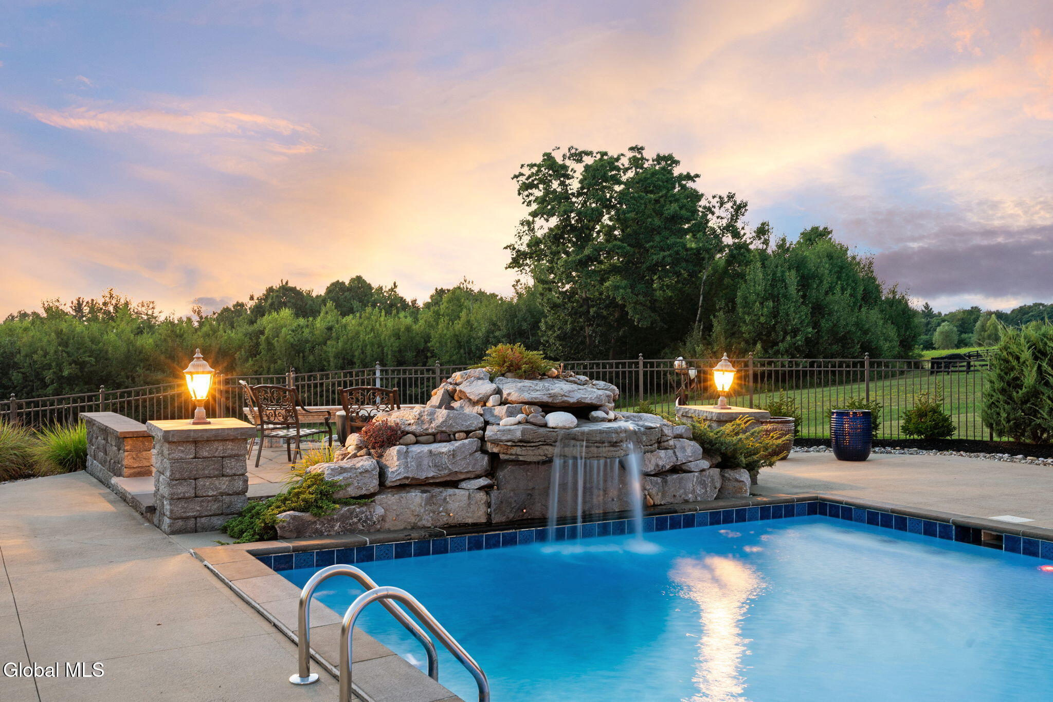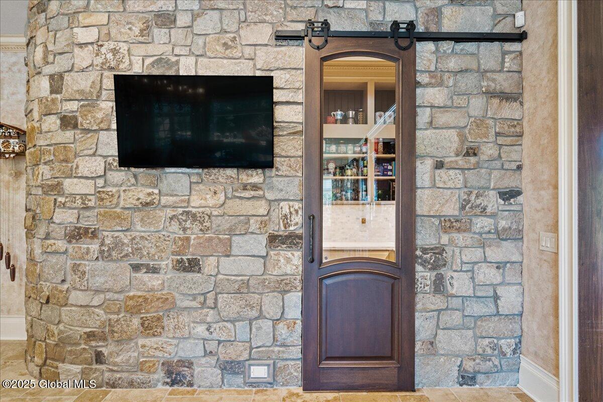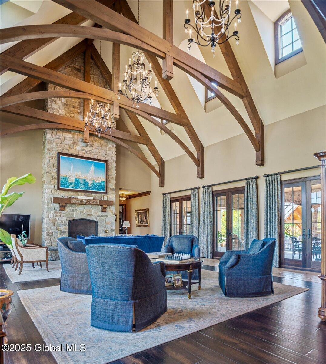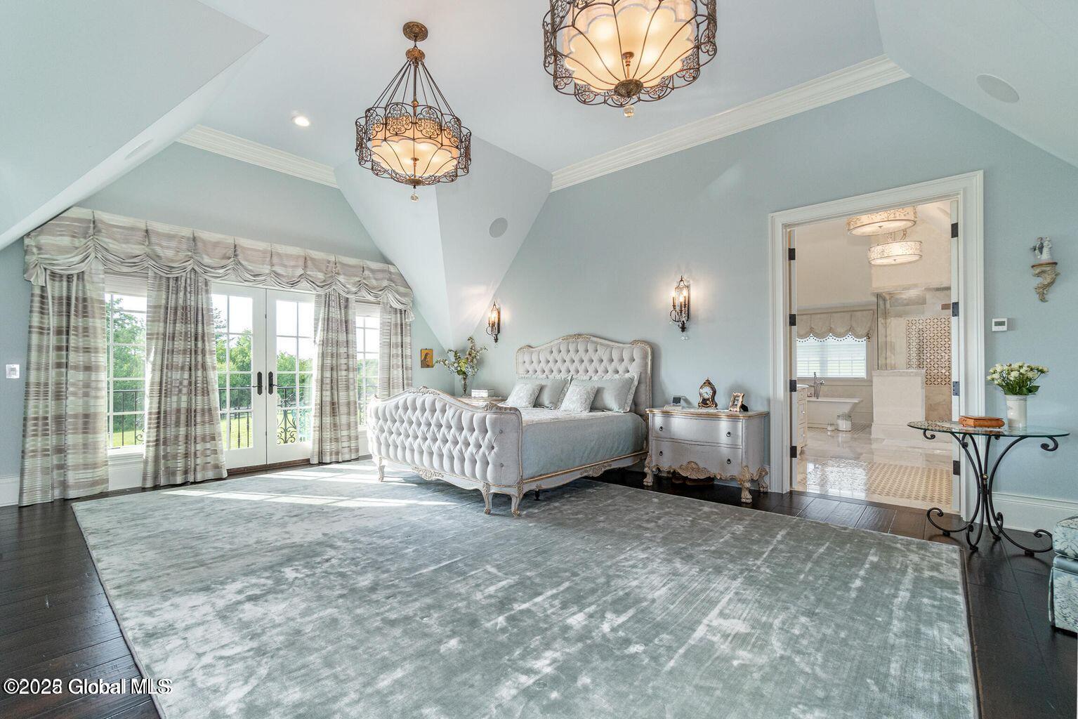 A Private French Country Château Overlooking Saratoga Lake Commanding 9.15 acres of pristine, private grounds, this 7,237± square-foot custom French Country château represents a rare opportunity to acquire a legacy estate in one of Saratoga's most coveted settings. Designed to international luxury standards, the residence blends classical European influence with modern, uncompromising craftsmanship—offering an elevated lifestyle defined by privacy, elegance, and enduring value. The home features five expansive bedroom suites and 7.5 beautifully curated baths, each designed as a private retreat. At the heart of the residence, the chef's kitchen showcases Miele appliances, an imported Italian backsplash, a dramatic marble island, and an oversized walk-in pantry, catering seamlessly to both refined daily living and large-scale entertaining. Grand yet inviting, the Great Room is ideal for hosting distinguished gatherings, while the sophisticated Club Room with full bar offers a refined setting for private evenings and social occasions. A private elevator and grand staircase lead to the Primary Suite, a sanctuary of understated opulence featuring a spa-level white marble bath, freestanding soaking tub, steam shower, and private sauna—a retreat rivaling the world's finest hotels. Arrival is marked by an elegant porte-cochère, leading to a heated four car garage, thoughtfully designed for discerning collectors. Outdoors, the estate unfolds into a resort-style sanctuary, where a beautifully positioned pool, hot tub, built-in barbecue, and serene natural surroundings frame sweeping views of Saratoga Lake. A separate pool house, complete with kitchenette, bath, and fireplace, provides exceptional accommodations for guests and year-round entertaining. Offered to a global audience seeking privacy, prestige, and architectural distinction, this extraordinary property stands apart as a timeless Saratoga Lake estate— IMPOSSIBLE TO REPLACE!