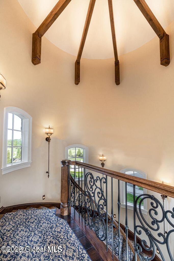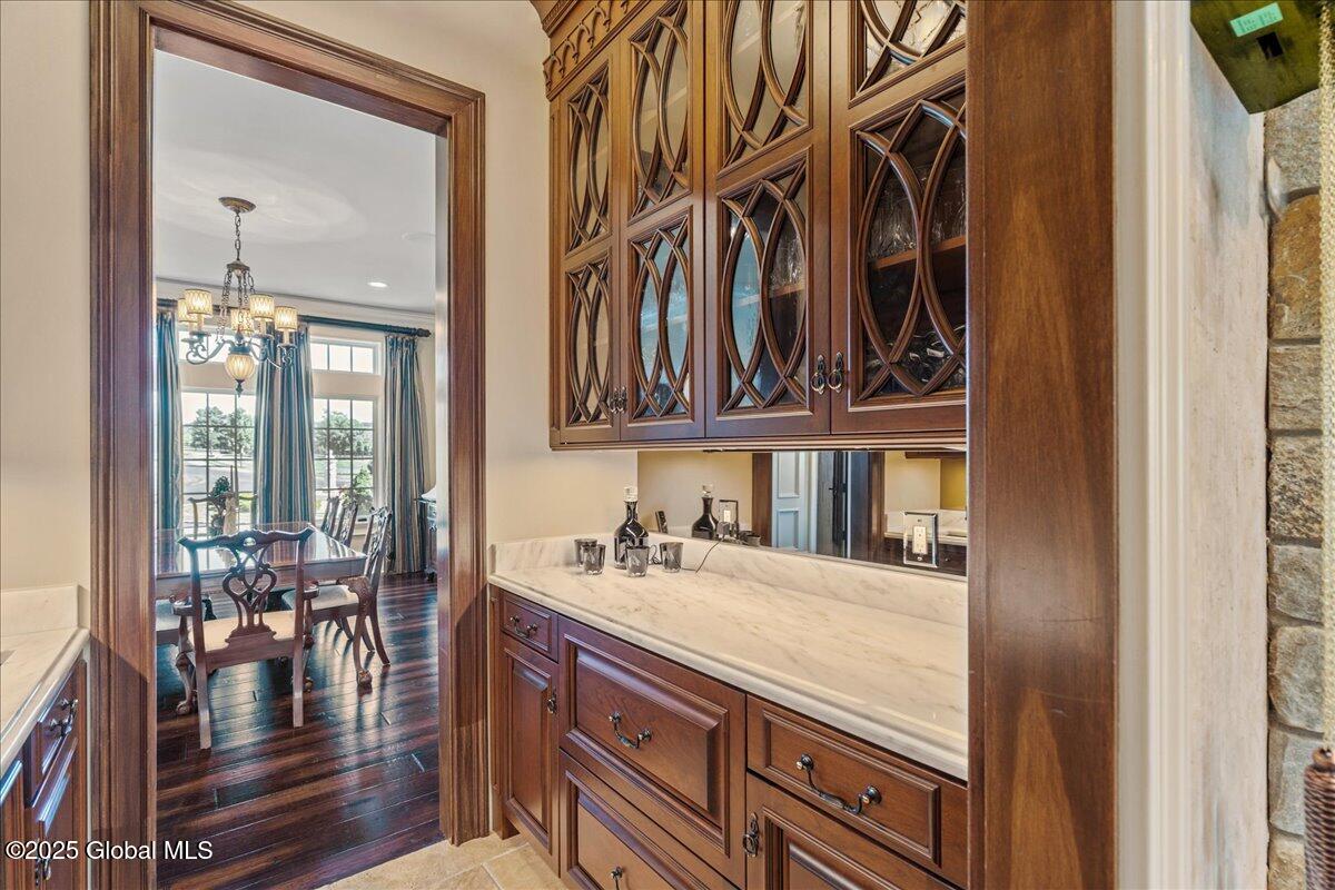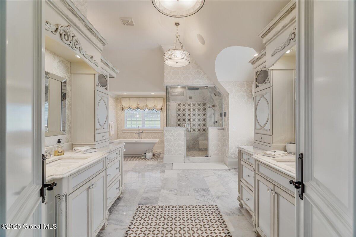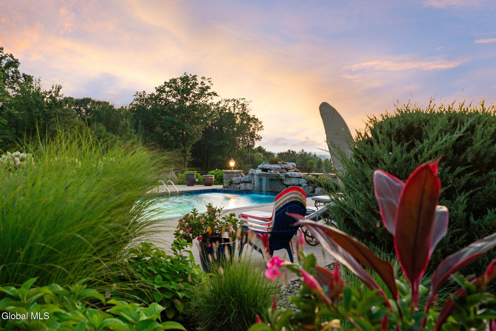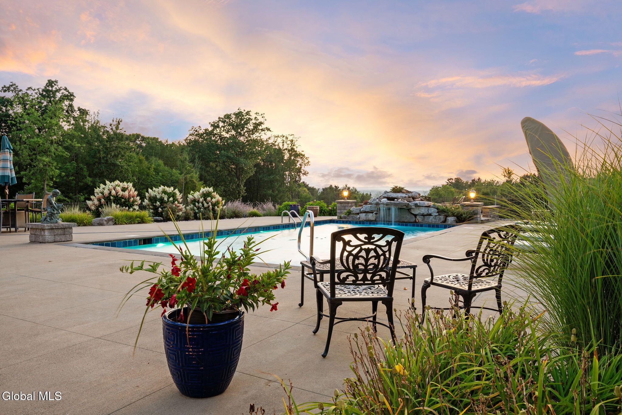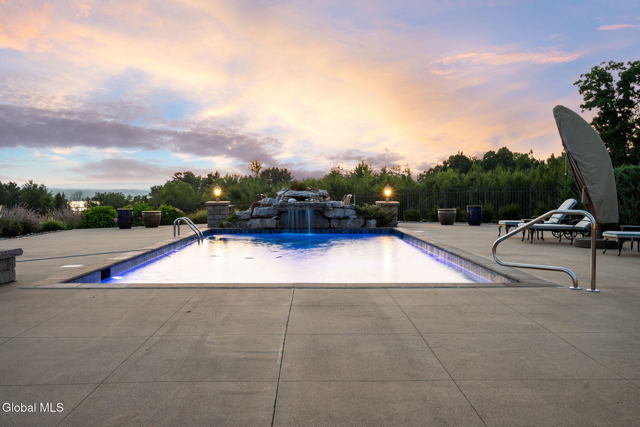 A Private French Country Château Overlooking Saratoga Lake Commanding 9.15 acres of pristine, private grounds, this 7,237± square-foot custom French Country château represents a rare opportunity to acquire a legacy estate in one of Saratoga's most coveted settings. Designed to international luxury standards, the residence blends classical European influence with modern, uncompromising craftsmanship—offering an elevated lifestyle defined by privacy, elegance, and enduring value. The home features five expansive bedroom suites and 7.5 beautifully curated baths, each designed as a private retreat. At the heart of the residence, the chef's kitchen showcases Miele appliances, an imported Italian backsplash, a dramatic marble island, and an oversized walk-in pantry, catering seamlessly to both refined daily living and large-scale entertaining. Grand yet inviting, the Great Room is ideal for hosting distinguished gatherings, while the sophisticated Club Room with full bar offers a refined setting for private evenings and social occasions. A private elevator and grand staircase lead to the Primary Suite, a sanctuary of understated opulence featuring a spa-level white marble bath, freestanding soaking tub, steam shower, and private sauna—a retreat rivaling the world's finest hotels. Arrival is marked by an elegant porte-cochère, leading to a heated four car garage, thoughtfully designed for discerning collectors. Outdoors, the estate unfolds into a resort-style sanctuary, where a beautifully positioned pool, hot tub, built-in barbecue, and serene natural surroundings frame sweeping views of Saratoga Lake. A separate pool house, complete with kitchenette, bath, and fireplace, provides exceptional accommodations for guests and year-round entertaining. Offered to a global audience seeking privacy, prestige, and architectural distinction, this extraordinary property stands apart as a timeless Saratoga Lake estate— IMPOSSIBLE TO REPLACE!