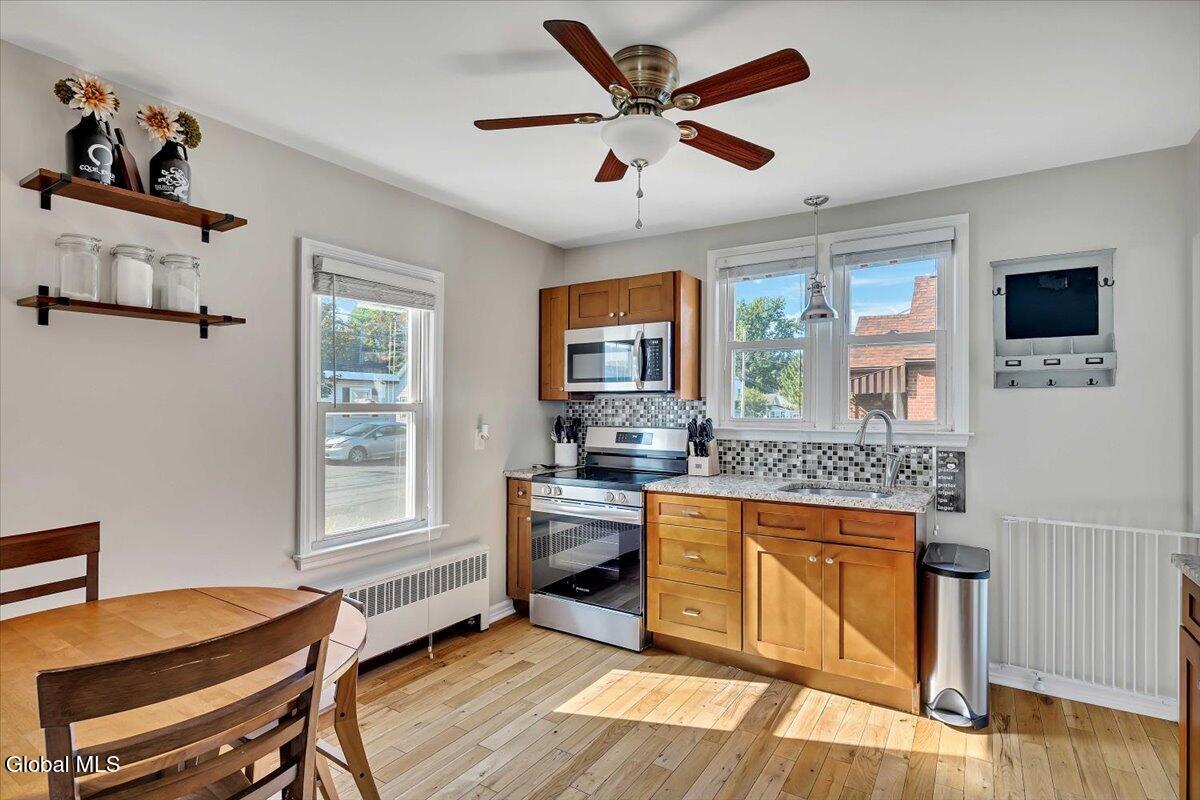 Welcome to this beautifully updated 3-bedroom, 1-bathroom home that perfectly blends comfort, style, and convenience. Step inside to discover an open floor plan filled with natural light, complemented by warm hardwood floors that run throughout the main living spaces. The spacious living and dining areas flow effortlessly into a well-appointed kitchen—ideal for both everyday living and entertaining. Each bedroom is bright and inviting, while the generous primary bedroom offers a peaceful retreat with ample storage space. Downstairs, enjoy a completely renovated basement designed for additional entertaining, a home office, media room, or whatever fits your lifestyle best. Outside, the fully fenced and professionally landscaped backyard is a true haven—perfect for hosting gatherings, playing, or simply relaxing in peace. And the location? Unbeatable. Nestled close to major local parks, top-rated schools, shopping centers, and with easy access to highways, this home offers the perfect combination of quiet neighborhood living and everyday convenience. Don't miss the opportunity to make this move-in-ready gem your own!