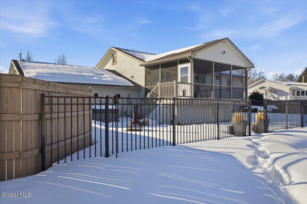 Nestled on a quiet street in Glens Falls, this beautiful 5-bedroom, 3-bath residence offers the perfect blend of space, comfort, and refined living--just moments from downtown's restaurants, boutiques, parks, and year-round events! Designed with flexibility in mind, the lower level features three generously sized bedrooms, a full bath, dedicated laundry area, and a spacious family room--ideal for guests, multi-generational living, or a private retreat. The main level showcases a thoughtfully designed kitchen with stainless steel appliances, granite countertops, and a seamless flow into the dining area and inviting living room. The primary suite offers a private ensuite bath, while an additional bedroom and full bath complete the level. One of the home's most exceptional features is the stunning screened porch overlooking a beautifully landscaped backyard oasis with an in-ground pool and charming pool house--an idyllic setting for entertaining or relaxing on warm summer evenings! Additional amenities include a heated garage, central air conditioning, in-ground sprinkler system, and numerous thoughtful upgrades throughout. A rare opportunity to own a spacious, move-in-ready home in a prime Glens Falls location--this is refined living with room to grow!