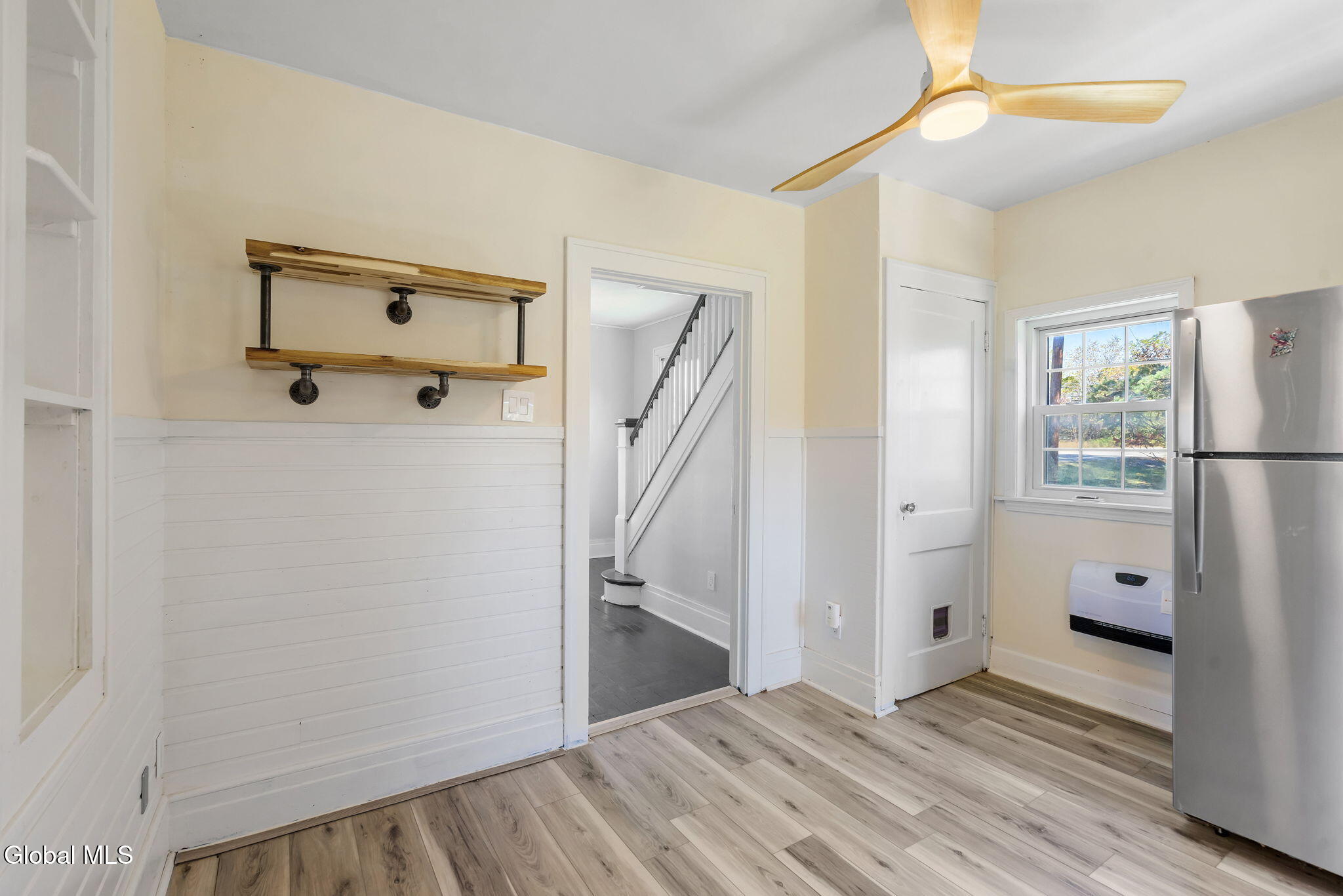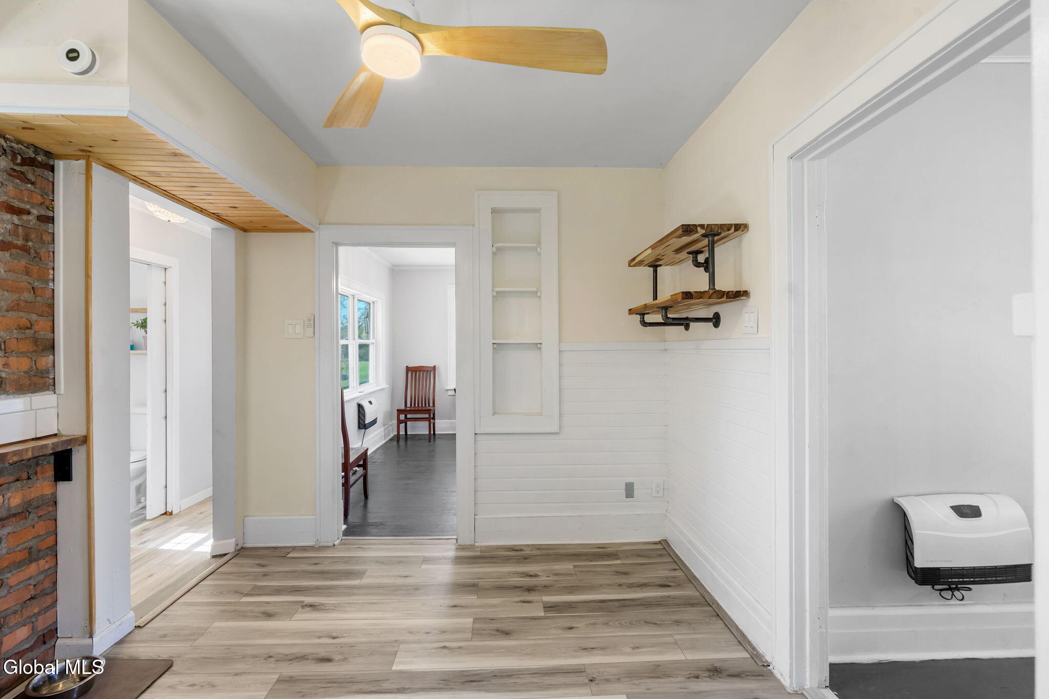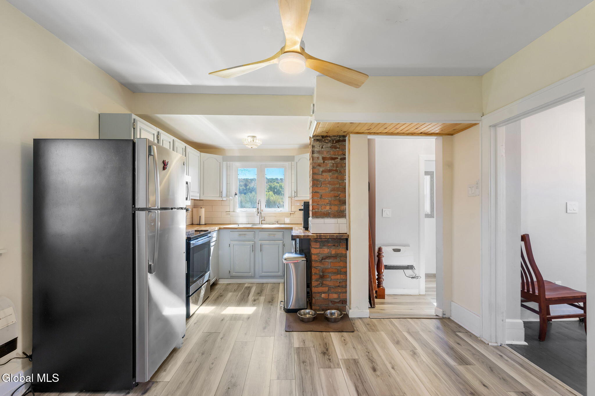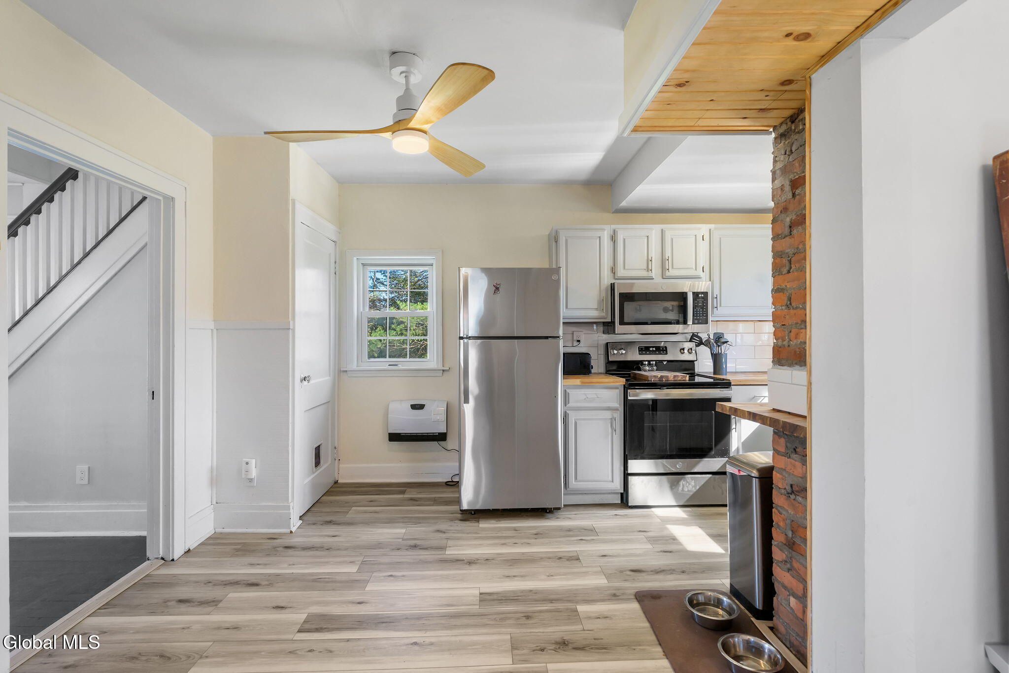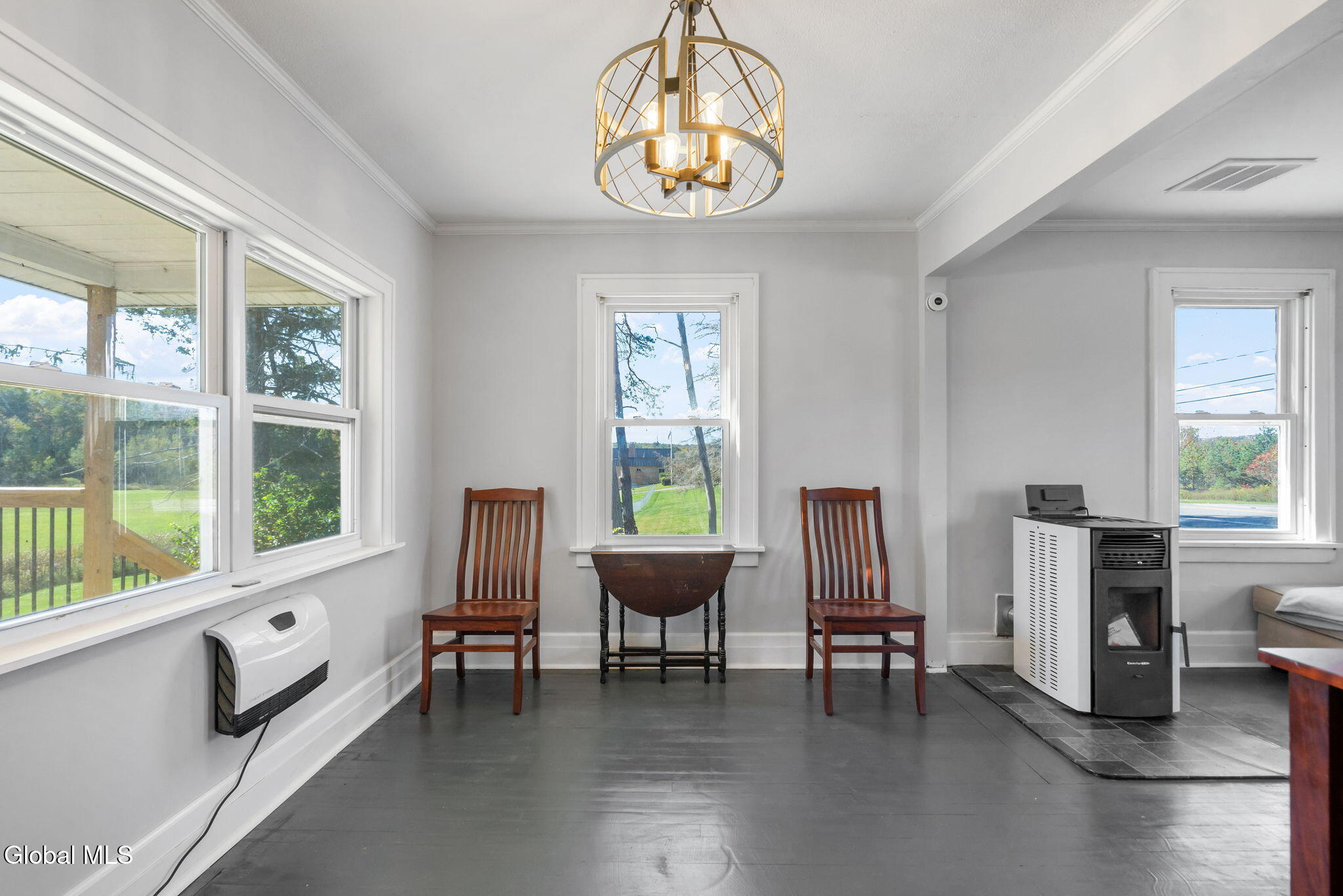 Step into this beautifully maintained 3-bedroom, 1.5-bath home offering 1,250 +/- square feet of inviting living space. Built in 1918, this residence blends the warmth and craftsmanship of its era with the updates and conveniences of today. You'll love the bright, spacious living areas, perfect for relaxing or entertaining. The updated kitchen features butcher block countertops, exposed brick, and new stainless steel appliances. Upstairs, the three bedrooms and one bathroom offer comfort and privacy, complemented by second floor laundry. A convenient half bath on the main level adds functionality for guests. Original architectural touches—such as hardwood floors, moldings, and vintage charm—shine throughout, while thoughtful updates ensure everyday ease. New improvements over the last 2-years include: vinyl windows, vinyl siding, new well water pump and expansion tank, connected to public sewer, paved driveway, electrical service and panel box, new energy-efficient electric heat with built in fans to keep you cool in the summer, and pellet stove for supplemental heat. Enjoy panoramic views from your expansive new deck. Seconds to the Duanesburg Airport, minutes to Rt-7, Rt-20, and I-88!