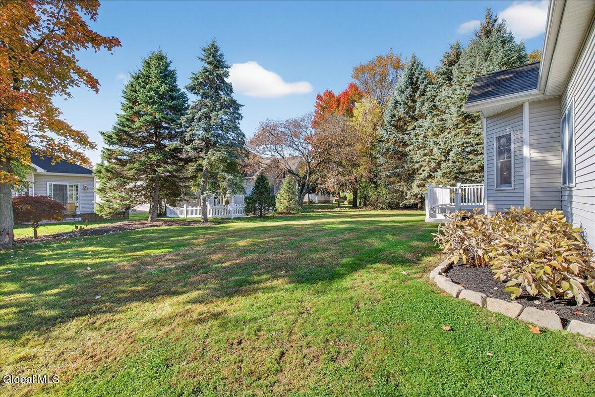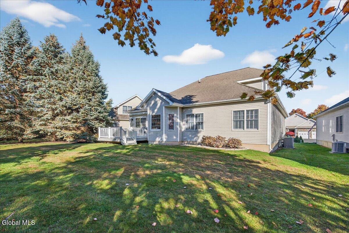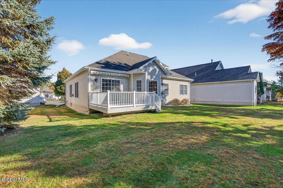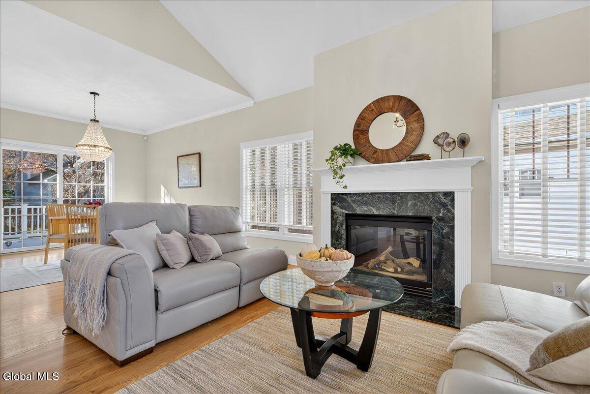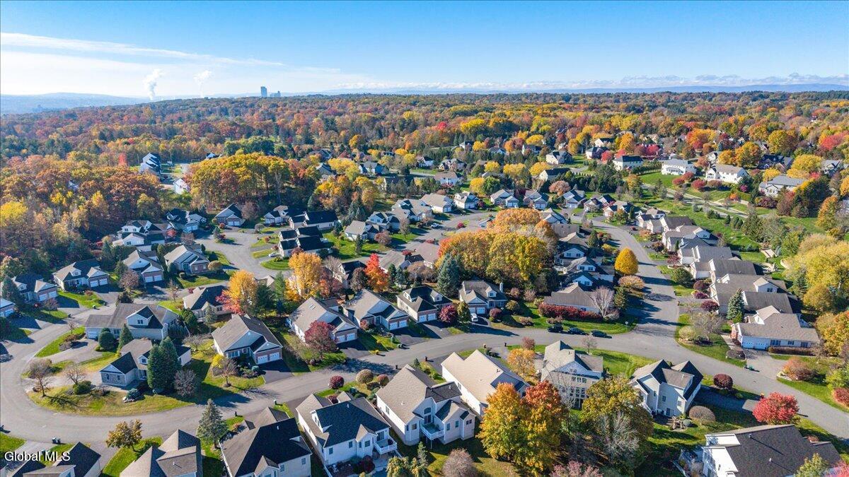 Much-Sought-After East Hills Carriage Home! Bright, open, and airy, this beautiful 3-bedroom, 2.5-bath carriage home offers one of the most desirable floor plans in East Hills! Step into a striking entry foyer that leads to a spacious great room featuring a handsome gas fireplace — perfect for relaxing or entertaining. The formal dining room is accented with crown molding and chair rail, creating a timeless setting for gatherings. A sliding glass door opens to a maintenance-free composite deck overlooking a manageable rear yard — ideal for outdoor enjoyment. The inviting, slightly country-style gourmet kitchen offers abundant prep space, a cozy breakfast area, and a unique pass-through that keeps the cook connected with guests. A charming powder room and convenient first-floor laundry room are thoughtfully located nearby off the back hall, adjacent to the attached two-car garage. The spacious first-floor primary suite includes a comfortable sitting area and two walk-in closets.One with custom built-ins. The roomy primary bath features a jetted tub, separate shower, and dual vanity. Upstairs, you'll find two additional bedrooms, each with double closets, plus a full hall bath. Enormous unfinished basement is a perfect blank canvas. Newer mechanicals add to the appeal. With its traditional layout and balanced symmetry, this home combines comfort, function, and timeless appeal in one exceptional package. North Colonie Schools. Walkable neighborhood. Super-convenient location, too!
