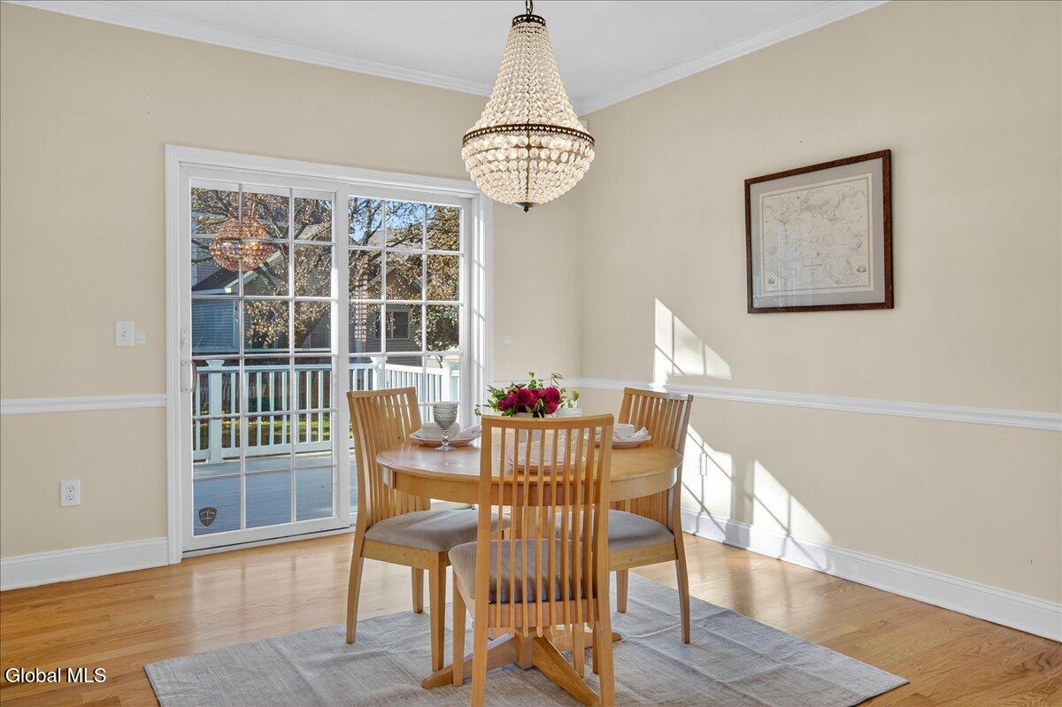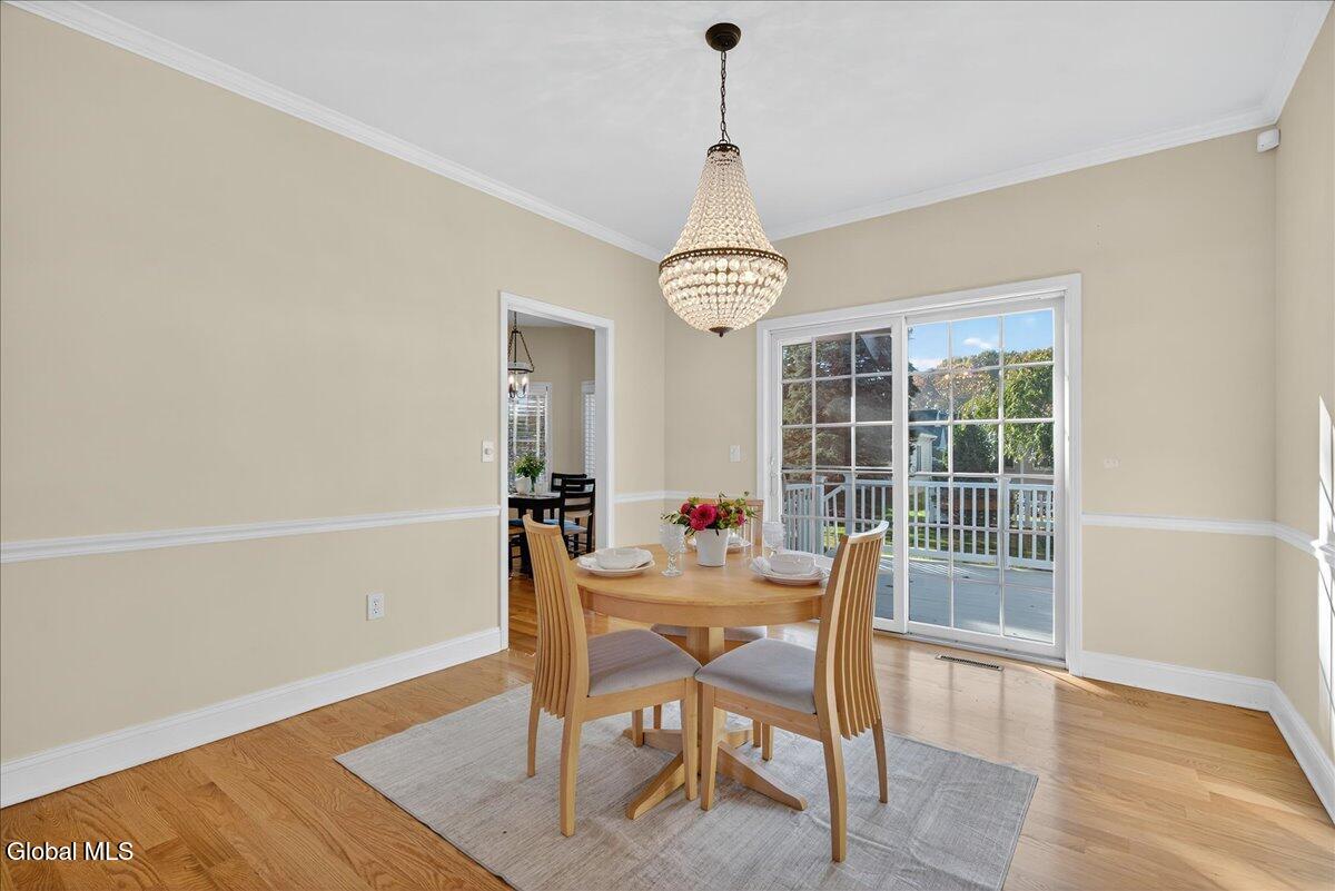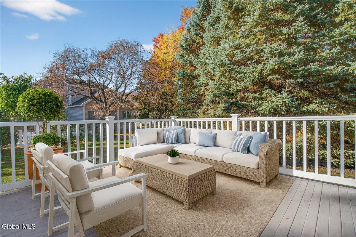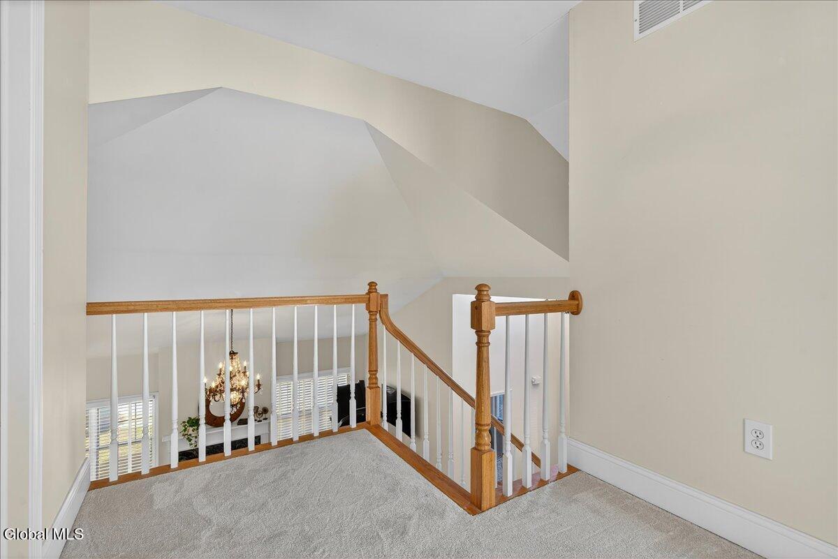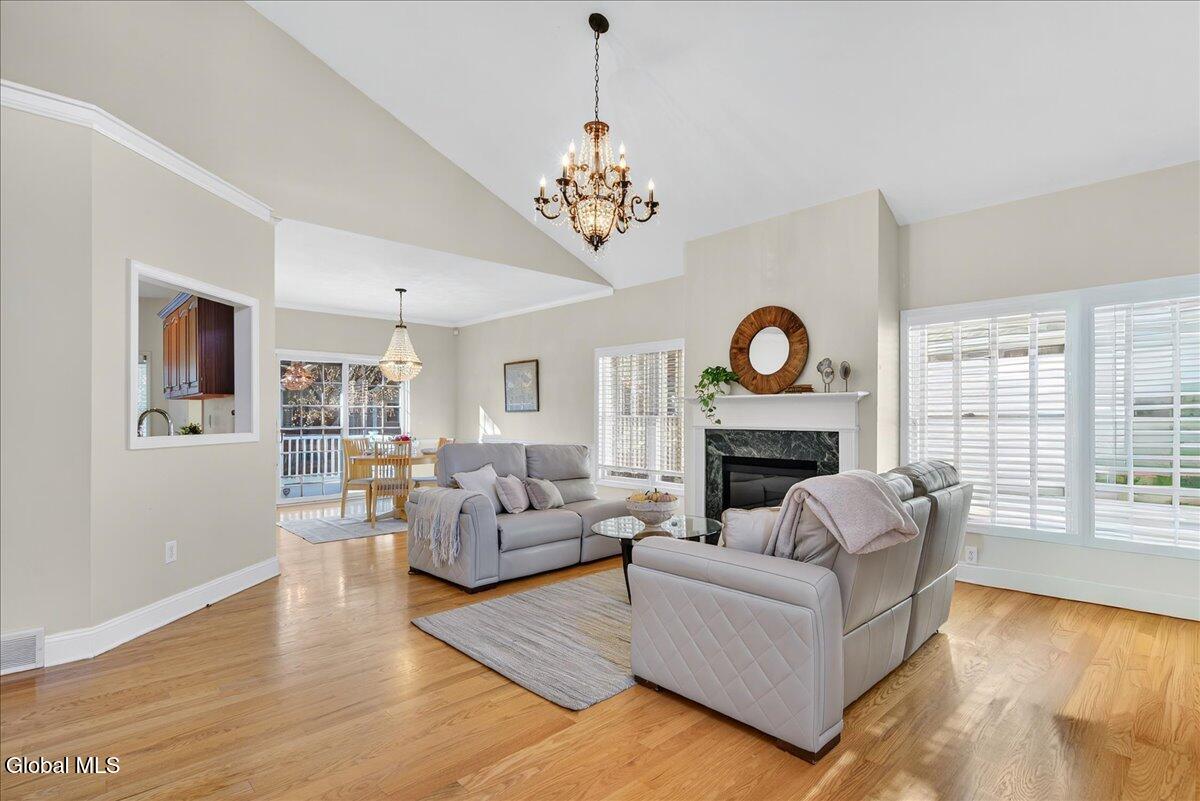 Much-Sought-After East Hills Carriage Home! Bright, open, and airy, this beautiful 3-bedroom, 2.5-bath carriage home offers one of the most desirable floor plans in East Hills! Step into a striking entry foyer that leads to a spacious great room featuring a handsome gas fireplace — perfect for relaxing or entertaining. The formal dining room is accented with crown molding and chair rail, creating a timeless setting for gatherings. A sliding glass door opens to a maintenance-free composite deck overlooking a manageable rear yard — ideal for outdoor enjoyment. The inviting, slightly country-style gourmet kitchen offers abundant prep space, a cozy breakfast area, and a unique pass-through that keeps the cook connected with guests. A charming powder room and convenient first-floor laundry room are thoughtfully located nearby off the back hall, adjacent to the attached two-car garage. The spacious first-floor primary suite includes a comfortable sitting area and two walk-in closets.One with custom built-ins. The roomy primary bath features a jetted tub, separate shower, and dual vanity. Upstairs, you'll find two additional bedrooms, each with double closets, plus a full hall bath. Enormous unfinished basement is a perfect blank canvas. Newer mechanicals add to the appeal. With its traditional layout and balanced symmetry, this home combines comfort, function, and timeless appeal in one exceptional package. North Colonie Schools. Walkable neighborhood. Super-convenient location, too!