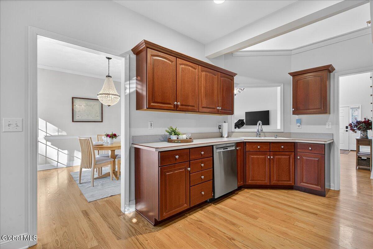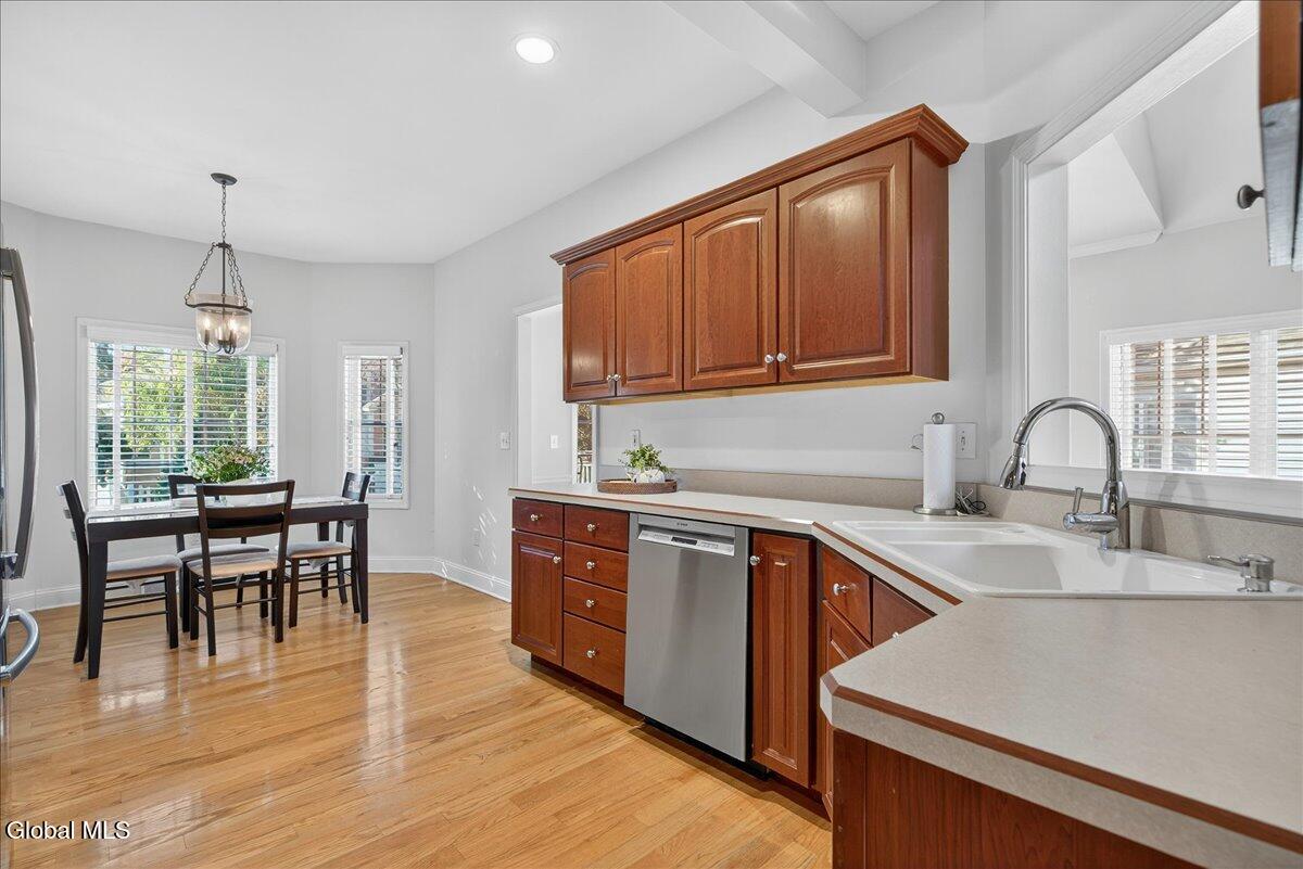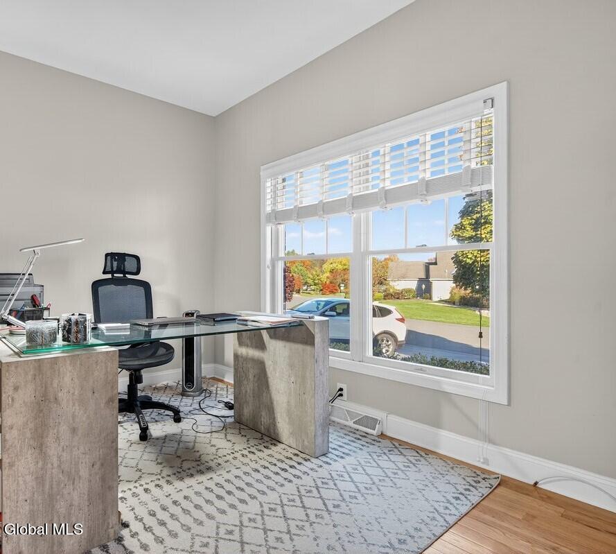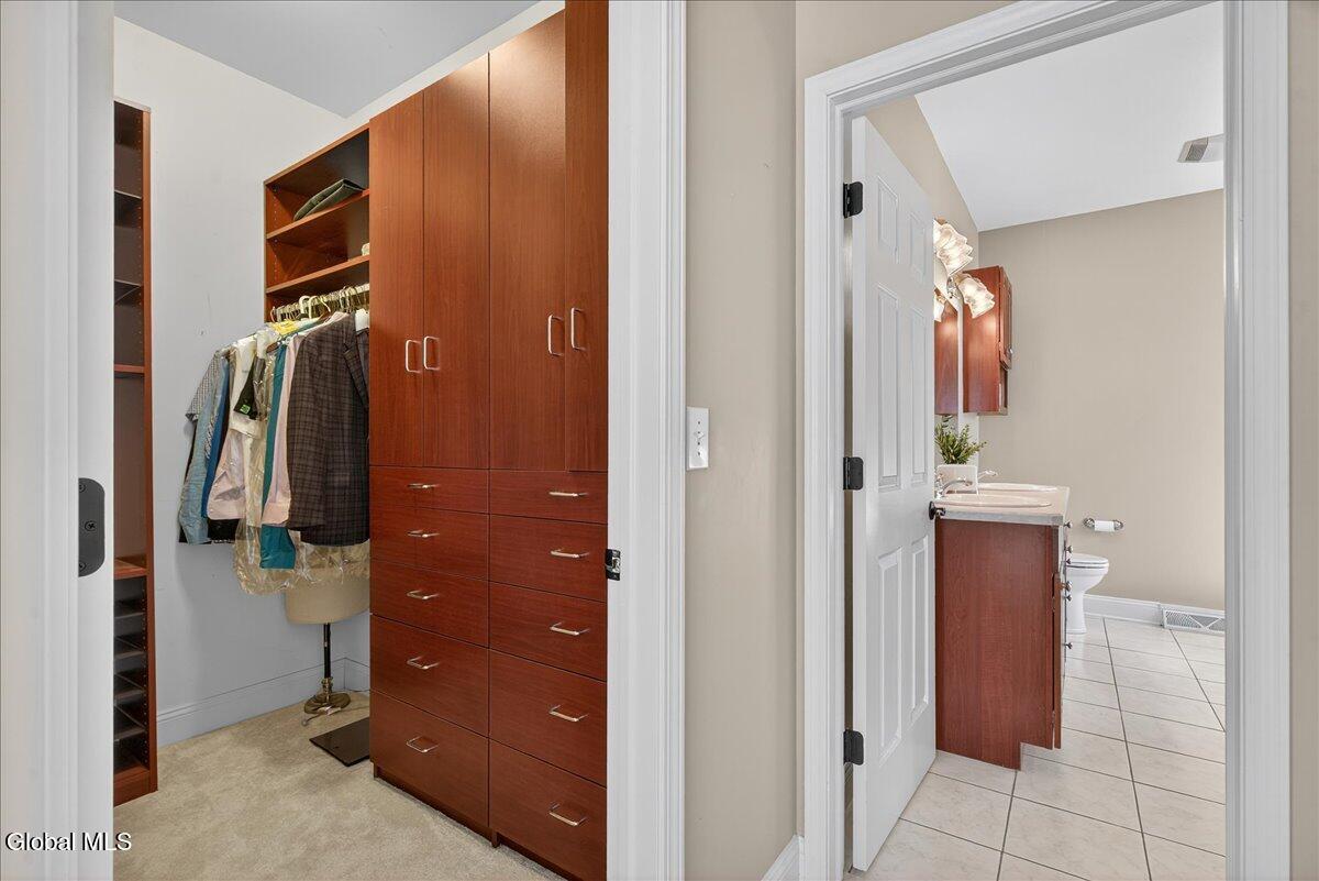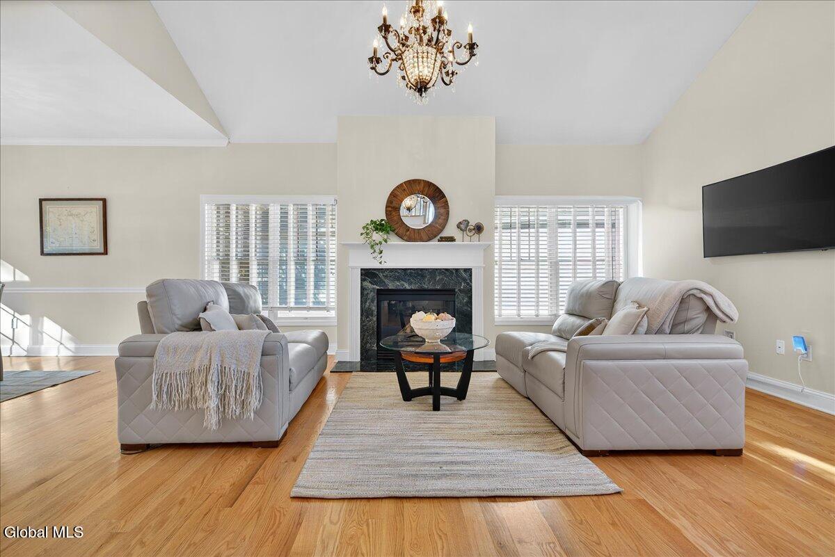 Much-Sought-After East Hills Carriage Home! Bright, open, and airy, this beautiful 3-bedroom, 2.5-bath carriage home offers one of the most desirable floor plans in East Hills! Step into a striking entry foyer that leads to a spacious great room featuring a handsome gas fireplace — perfect for relaxing or entertaining. The formal dining room is accented with crown molding and chair rail, creating a timeless setting for gatherings. A sliding glass door opens to a maintenance-free composite deck overlooking a manageable rear yard — ideal for outdoor enjoyment. The inviting, slightly country-style gourmet kitchen offers abundant prep space, a cozy breakfast area, and a unique pass-through that keeps the cook connected with guests. A charming powder room and convenient first-floor laundry room are thoughtfully located nearby off the back hall, adjacent to the attached two-car garage. The spacious first-floor primary suite includes a comfortable sitting area and two walk-in closets.One with custom built-ins. The roomy primary bath features a jetted tub, separate shower, and dual vanity. Upstairs, you'll find two additional bedrooms, each with double closets, plus a full hall bath. Enormous unfinished basement is a perfect blank canvas. Newer mechanicals add to the appeal. With its traditional layout and balanced symmetry, this home combines comfort, function, and timeless appeal in one exceptional package. North Colonie Schools. Walkable neighborhood. Super-convenient location, too!