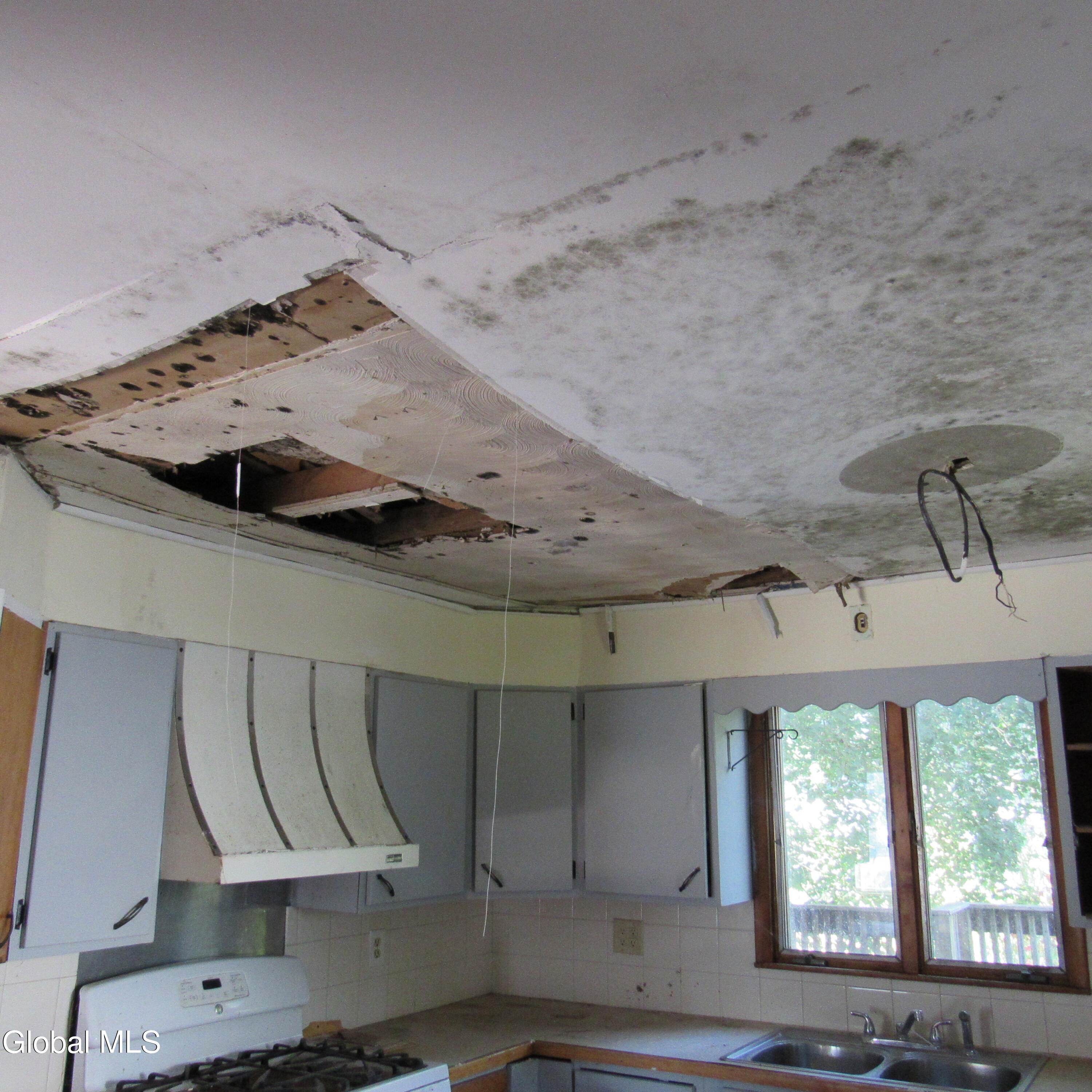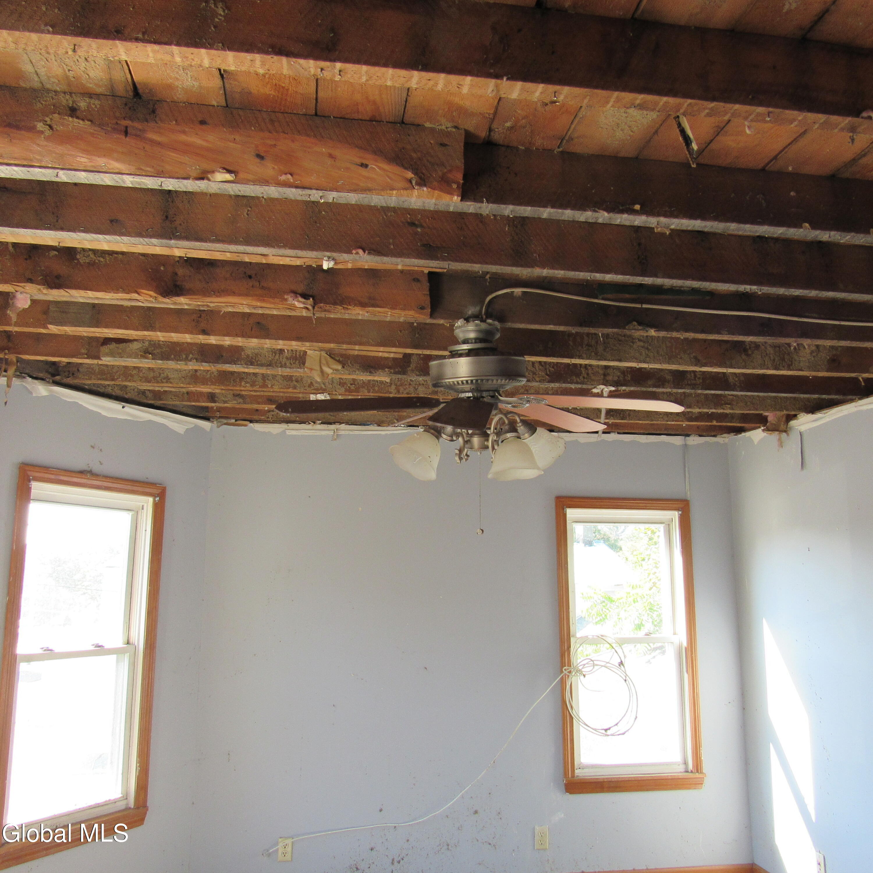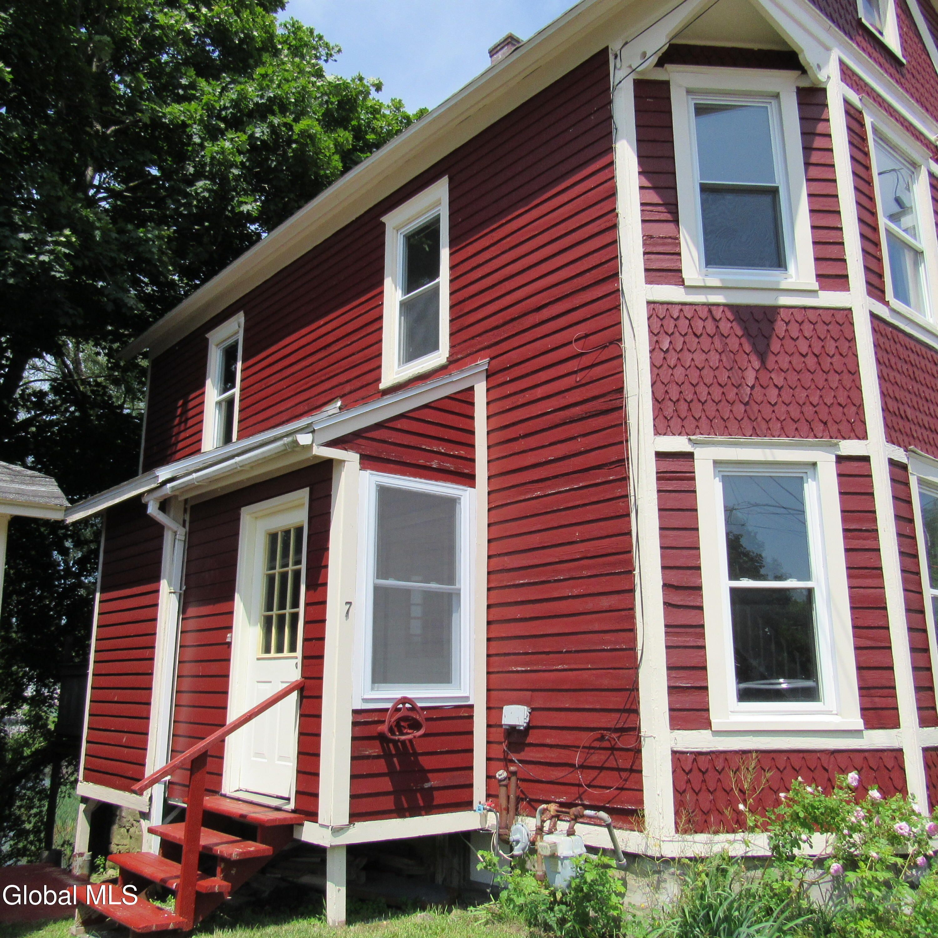 The house was hit by lightning. There was a fire in the attic. Roof needs to be either replaced or fixed. There is water damage. Will need a rehab. Bones are still good. Being sold ''as is'' and inspections are for buyers information only. The garage is shared. 7 Main St owns the part closest to the house.