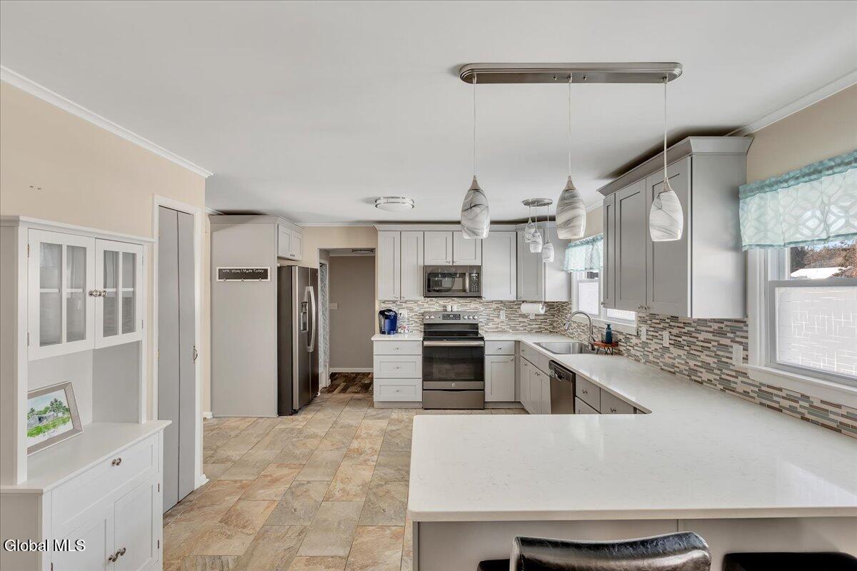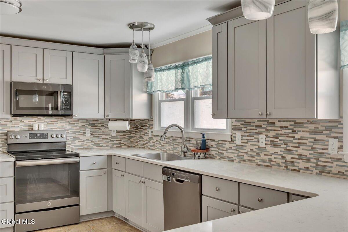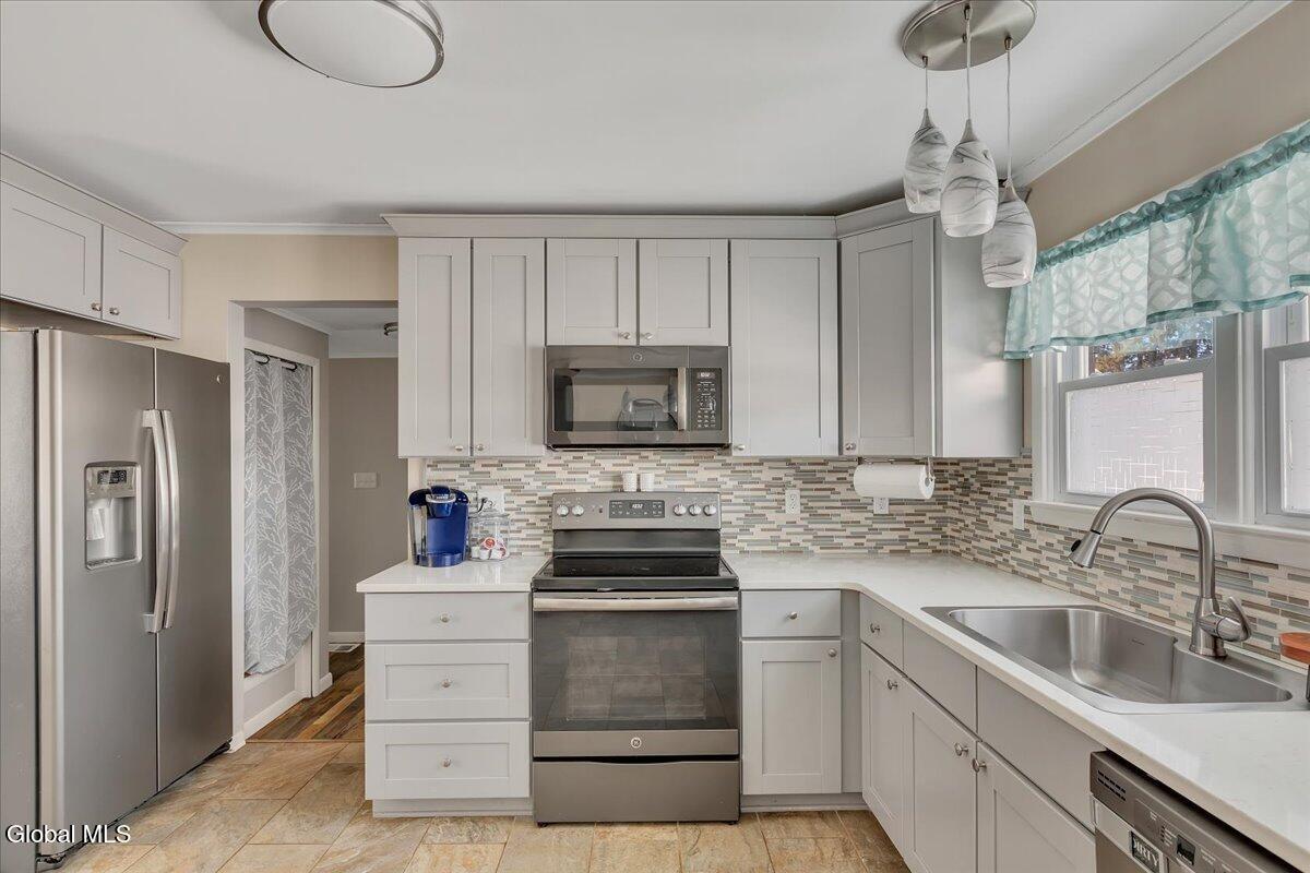 MULTIPLE OFFERS RECEIVED - HIGHEST & BEST OFFERS DUE 02/11/26 @ 12PM. Tucked away on a quiet dead-end street, this well-maintained and thoughtfully updated ranch-style home offers the perfect blend of comfort, style, & convenience within Kensington Elementary School District. The spacious kitchen is a standout, featuring ample cabinetry & two pantries - ideal for storage and everyday functionality. The primary bedroom includes a beautifully updated en-suite bath with a custom tile shower, and walk in closet. Enjoy relaxing mornings on the covered front & rear porches, perfect for taking in the peaceful surroundings. Or enjoy your evenings hosting gatherings in the finished basement bar and rec room. Conveniently located just minutes from downtown, I-87, Cole's Woods Nature Trails, and Crandall Park, this home provides easy access to everything! Call Today!