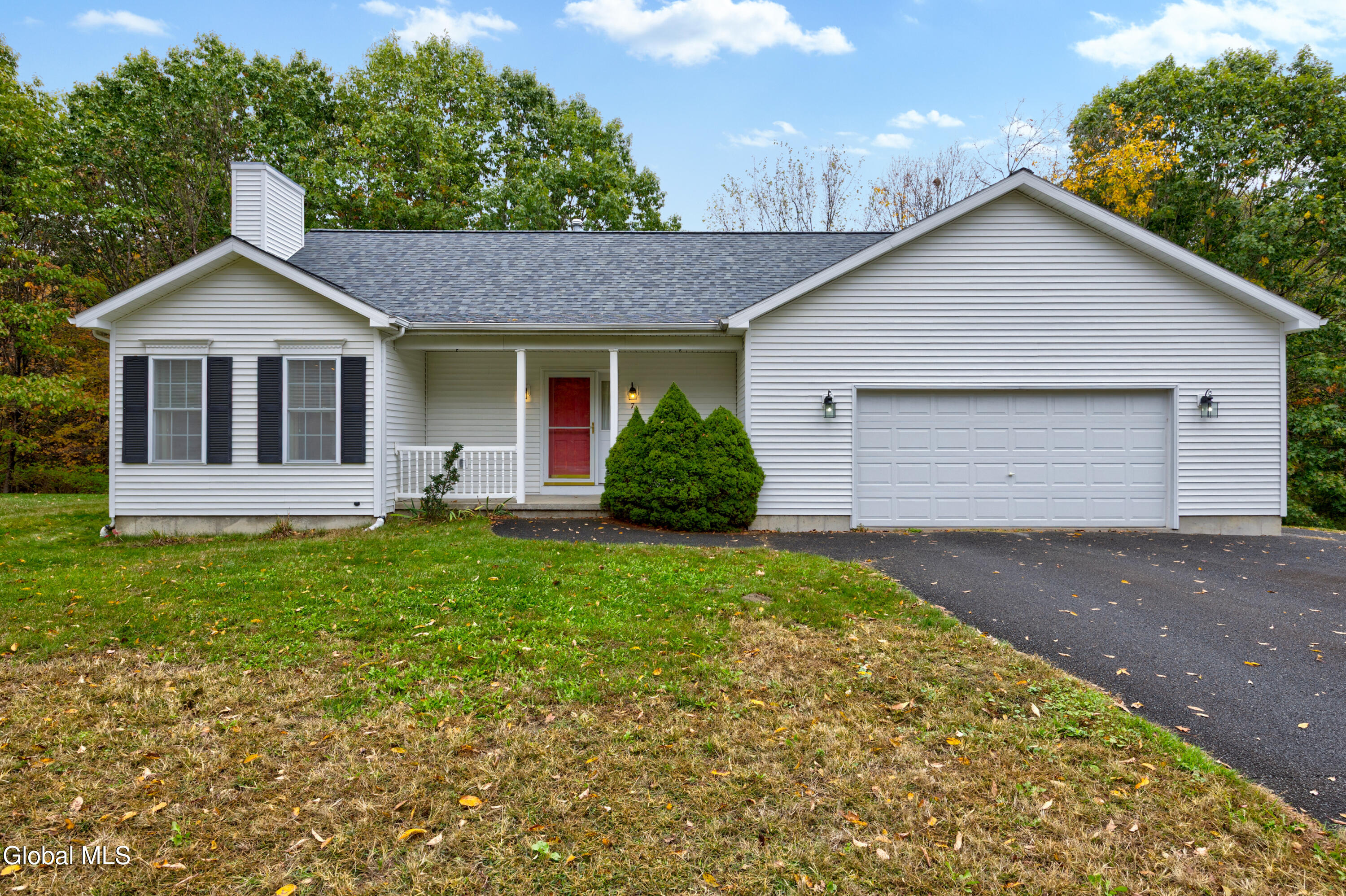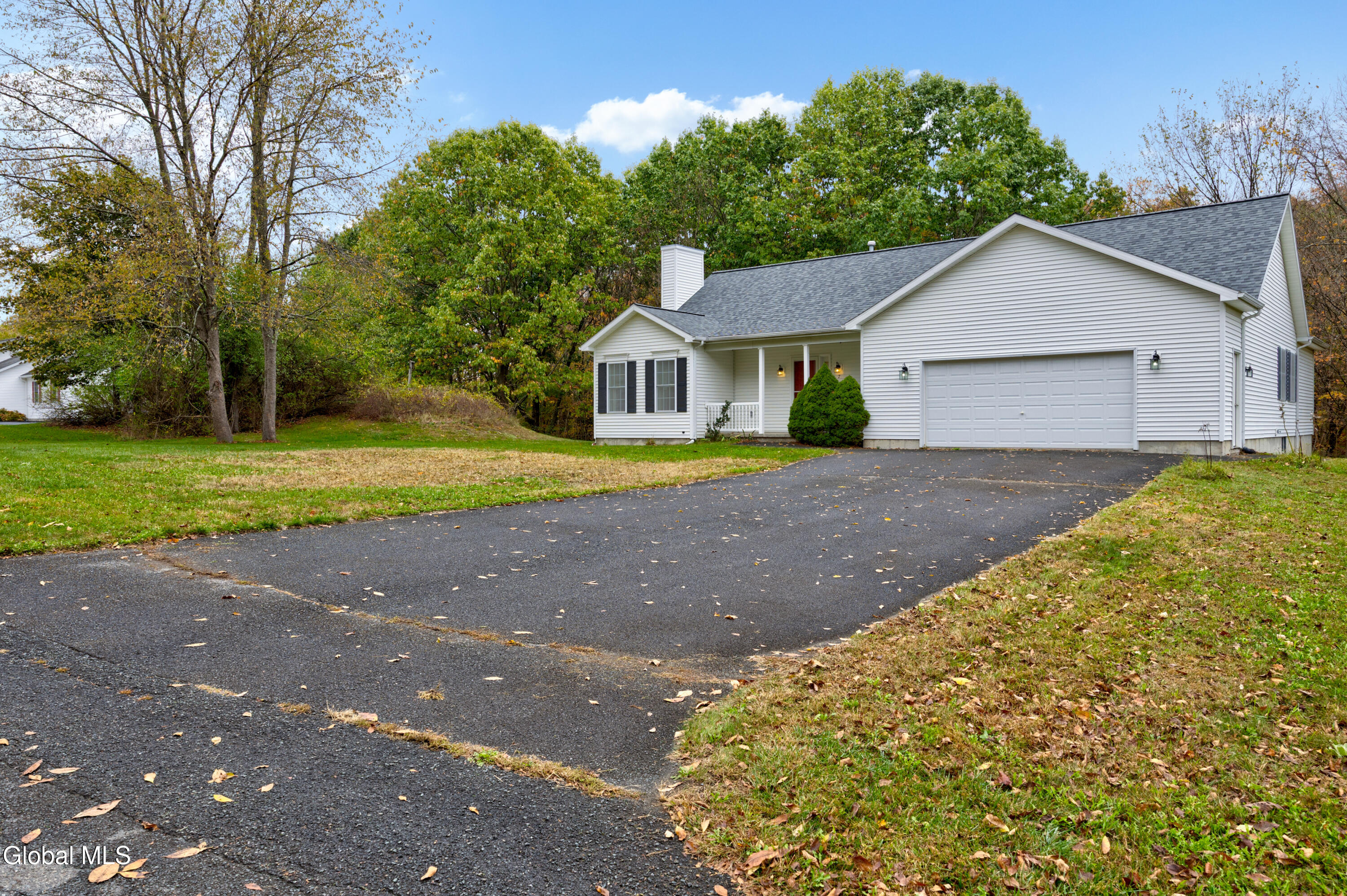 Beautiful three-bedroom ranch with 2 full bathrooms, offering comfortable single-level living in a tranquil setting. The open concept floorplan features a spacious kitchen that flows seamlessly into the dining and living areas—perfect for entertaining or everyday living. A large deck overlooks the peaceful, wooded lot, creating a private backyard retreat. Enjoy cozy evenings by the gas fireplace in the living room. Additional highlights include a convenient first-floor laundry room, a two-car garage with extra storage, and a brand-new roof (2025). A wonderful opportunity to own a move-in ready home in a serene location!