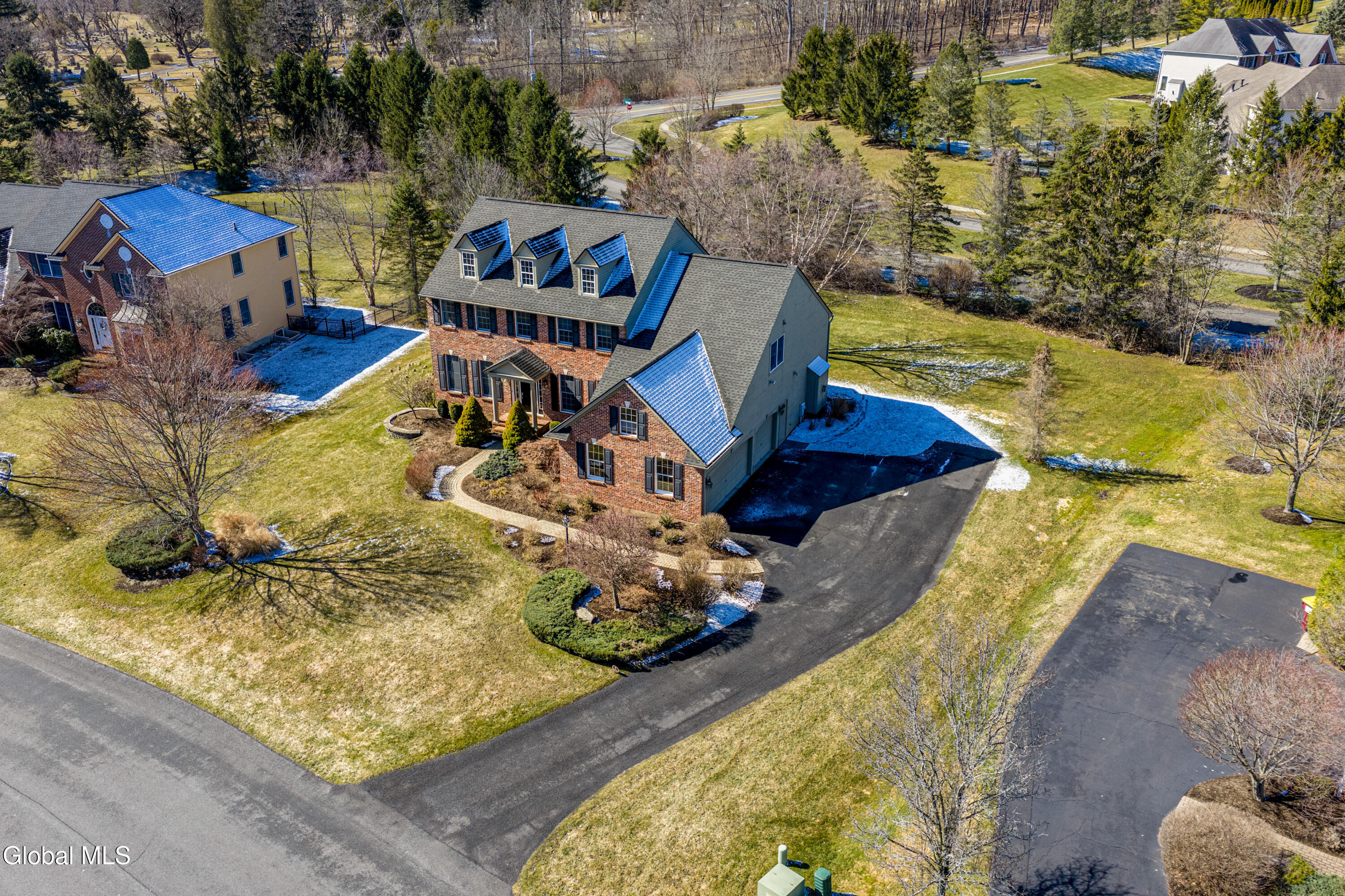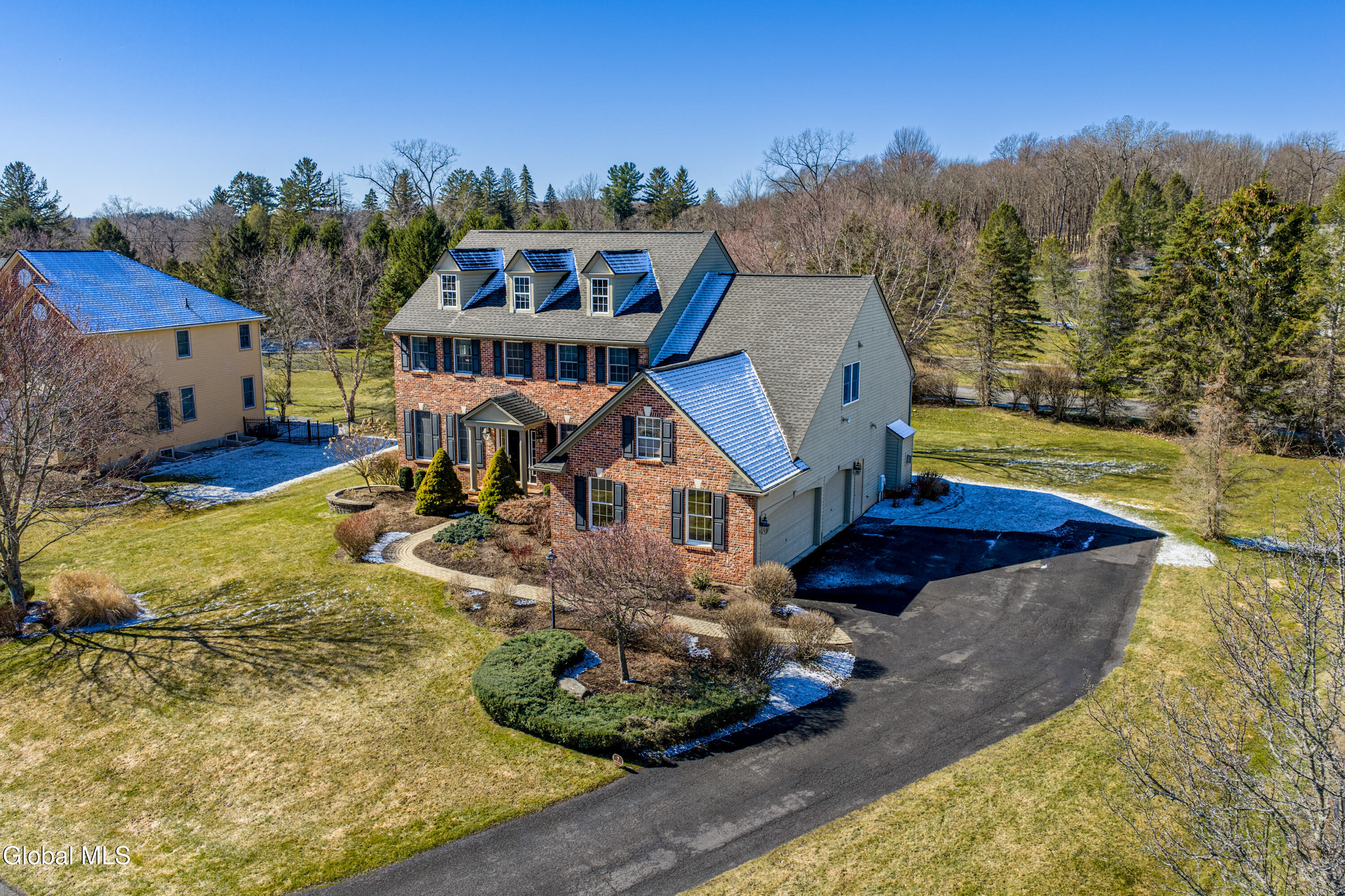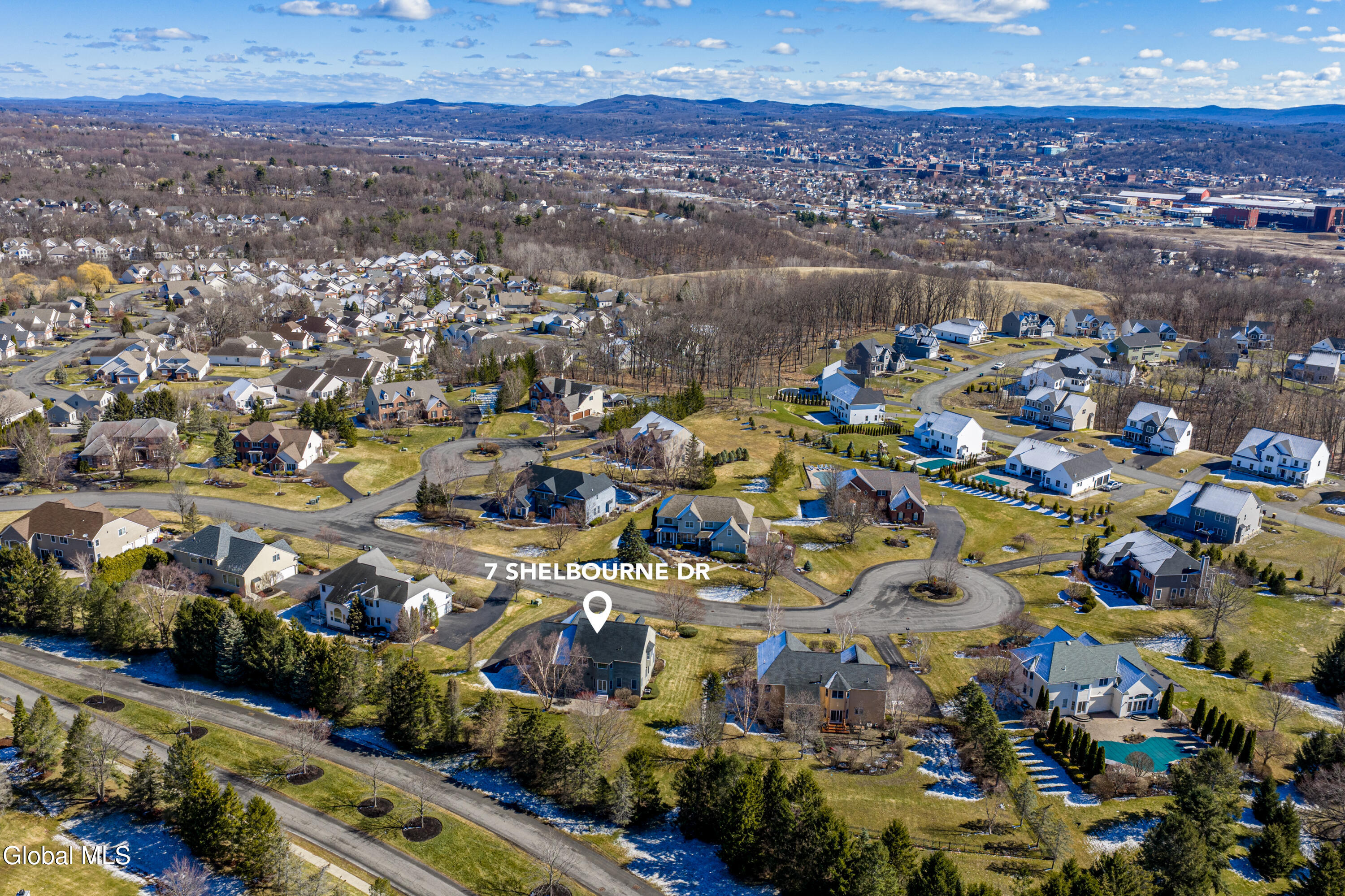 Welcome to 7 Shelbourne Drive in East Hills--Loudonville's premier and most sought-after neighborhood. Situated on a quiet cul-de-sac, this exceptional Marini-built cedar colonial offers the perfect blend of timeless elegance, modern updates, and thoughtfully designed living space. Featuring 4 spacious bedrooms, 3 full bathrooms, and 1 half bath, this beautifully maintained home features a two-story foyer and two-story great room filled with natural light. Gleaming hardwood floors, dual staircases, and a flowing layout create an ideal setting for both everyday living and entertaining. A first-floor office, convenient laundry room and a three-car garage add everyday ease. The updated kitchen is equipped with stainless steel appliances, granite countertops, a center island, pantry, and ample space for gathering. Step outside to enjoy the beautifully designed patio. The primary suite is a true retreat, featuring a vaulted ceiling, gorgeous en-suite, and expansive walk-in closet. The finished basement expands your living space, including recessed lighting, a wet bar, bonus room, and a bright full bathroom--ideal for entertaining, guests, or recreation. This impeccably maintained home offers refined living in one of the Capital Region's most prestigious communities. Don't miss this opportunity to own a truly move-in ready residence in East Hills. Explore the home further with the virtual tour and YouTube video. Showings start Saturday, 3/28.