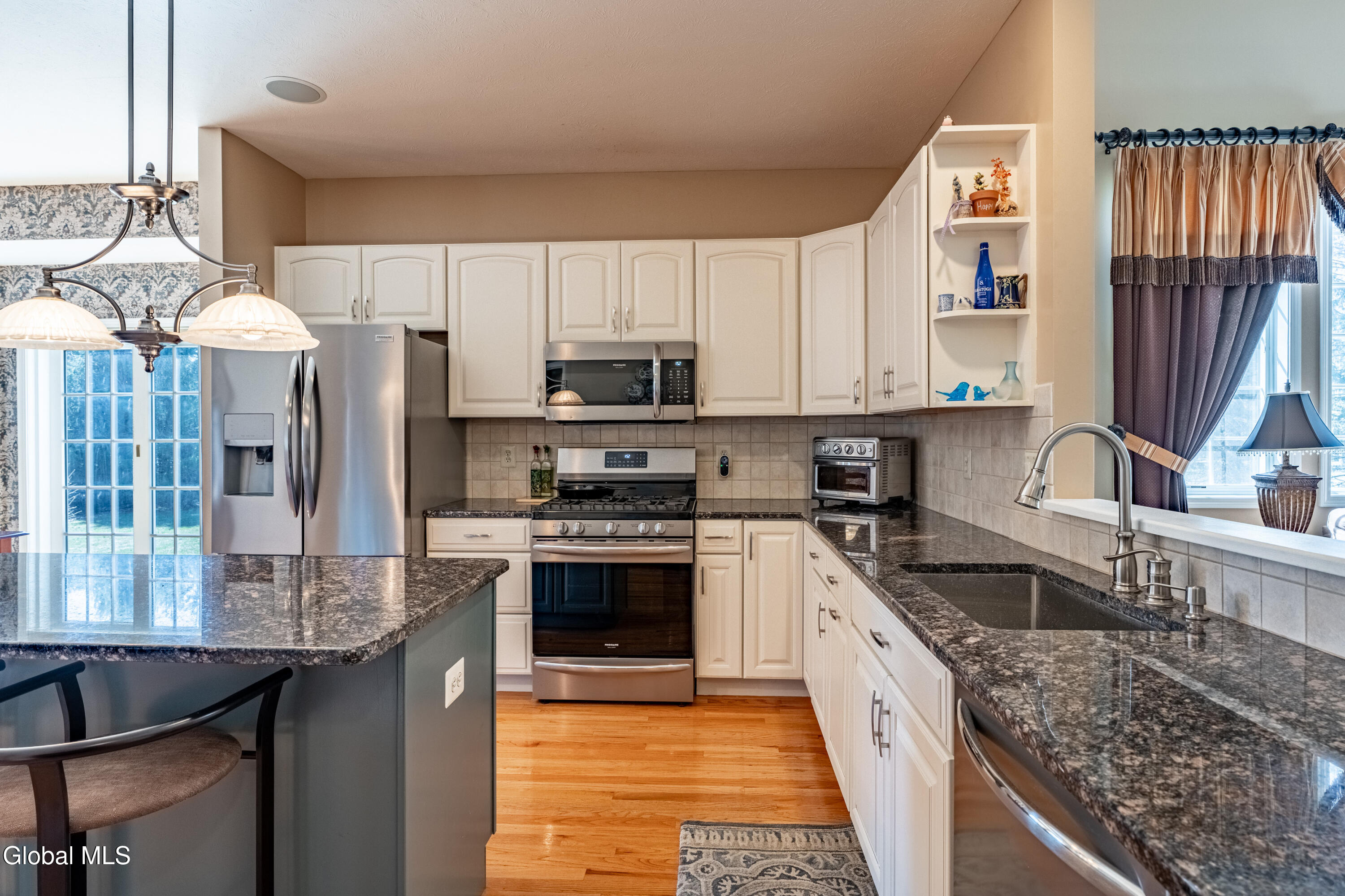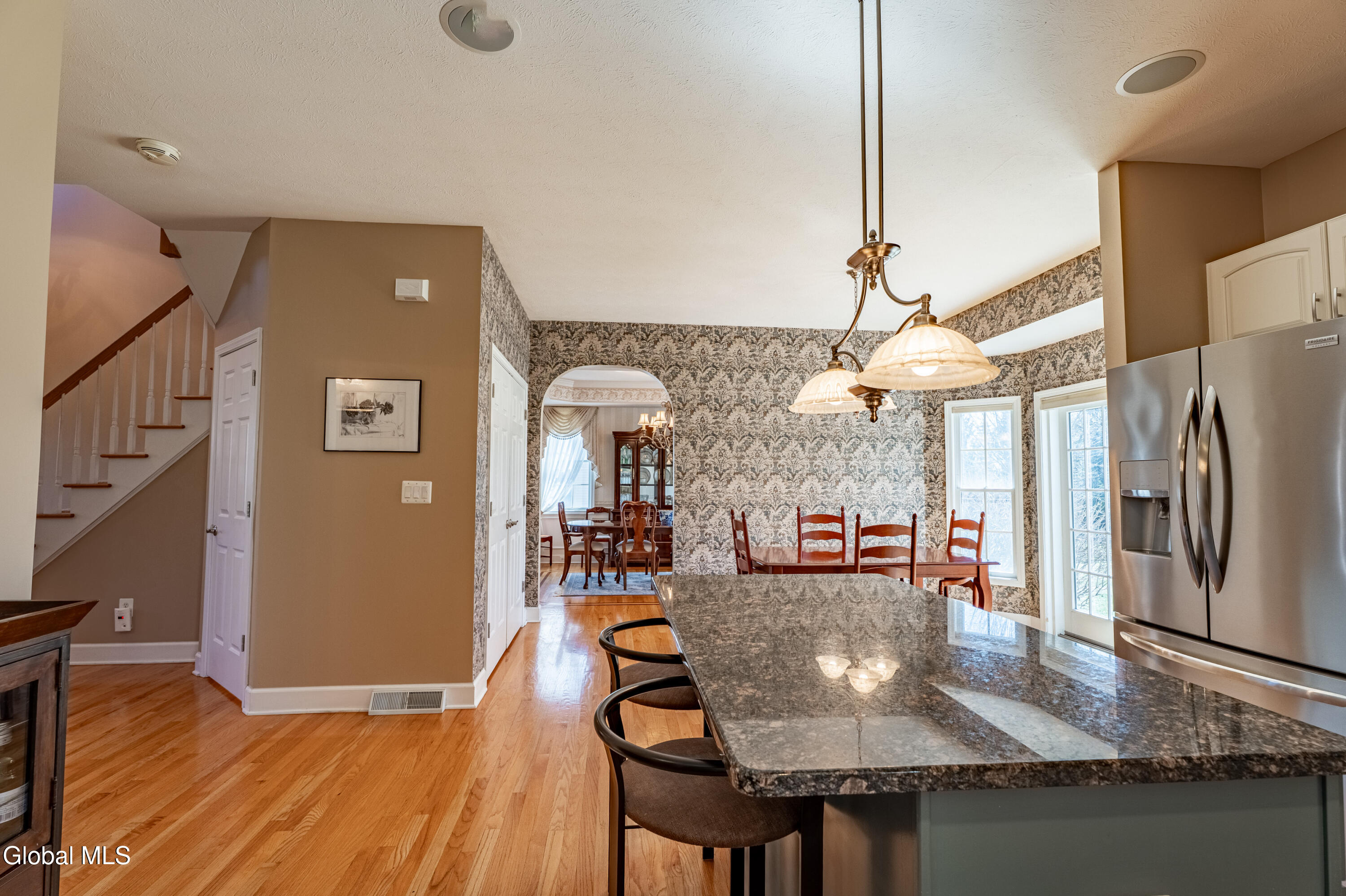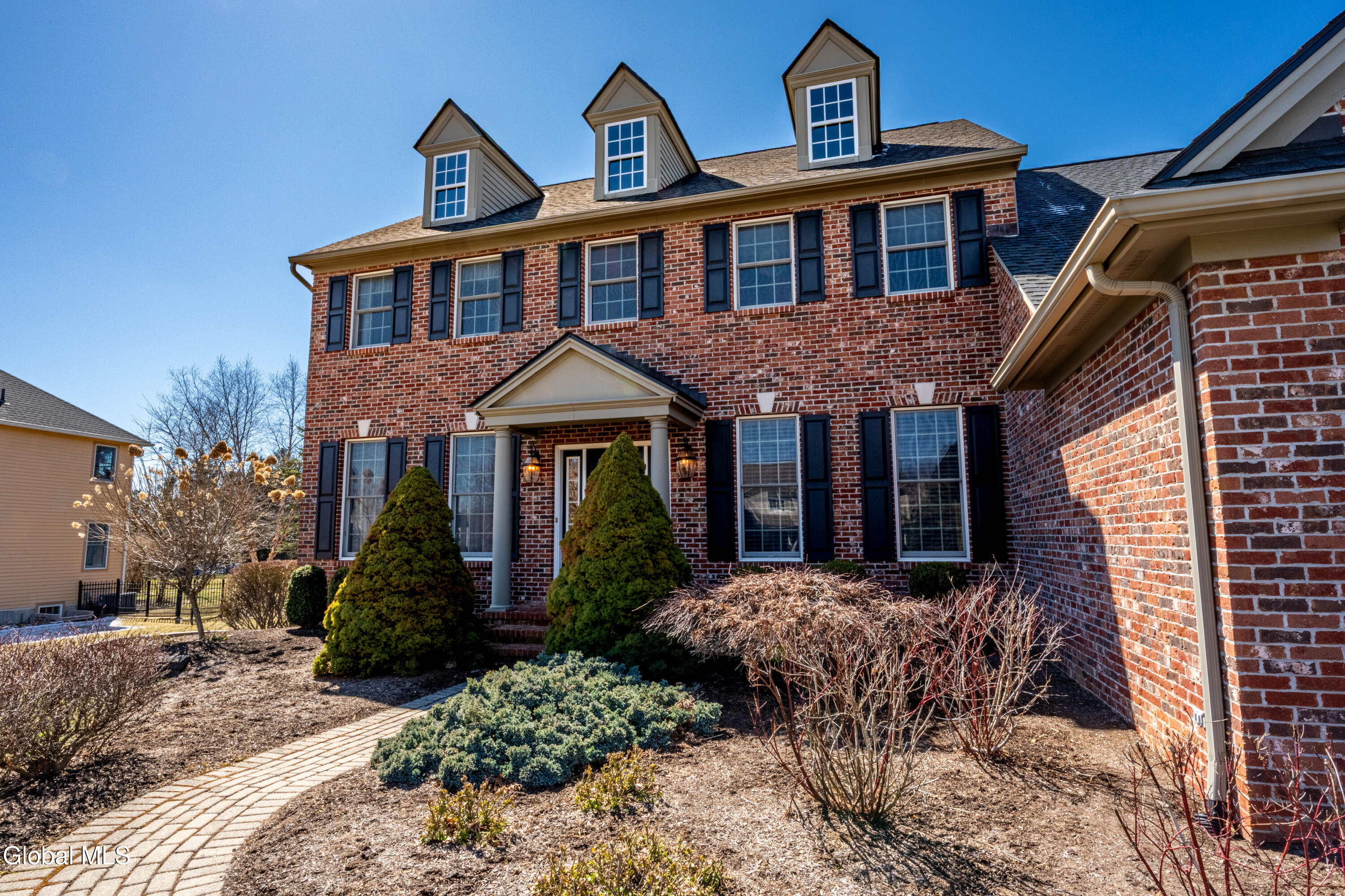 Welcome to 7 Shelbourne Drive in East Hills--Loudonville's premier and most sought-after neighborhood. Situated on a quiet cul-de-sac, this exceptional Marini-built cedar colonial offers the perfect blend of timeless elegance, modern updates, and thoughtfully designed living space. Featuring 4 spacious bedrooms, 3 full bathrooms, and 1 half bath, this beautifully maintained home features a two-story foyer and two-story great room filled with natural light. Gleaming hardwood floors, dual staircases, and a flowing layout create an ideal setting for both everyday living and entertaining. A first-floor office, convenient laundry room and a three-car garage add everyday ease. The updated kitchen is equipped with stainless steel appliances, granite countertops, a center island, pantry, and ample space for gathering. Step outside to enjoy the beautifully designed patio. The primary suite is a true retreat, featuring a vaulted ceiling, gorgeous en-suite, and expansive walk-in closet. The finished basement expands your living space, including recessed lighting, a wet bar, bonus room, and a bright full bathroom--ideal for entertaining, guests, or recreation. This impeccably maintained home offers refined living in one of the Capital Region's most prestigious communities. Don't miss this opportunity to own a truly move-in ready residence in East Hills. Explore the home further with the virtual tour and YouTube video. Showings start Saturday, 3/28.