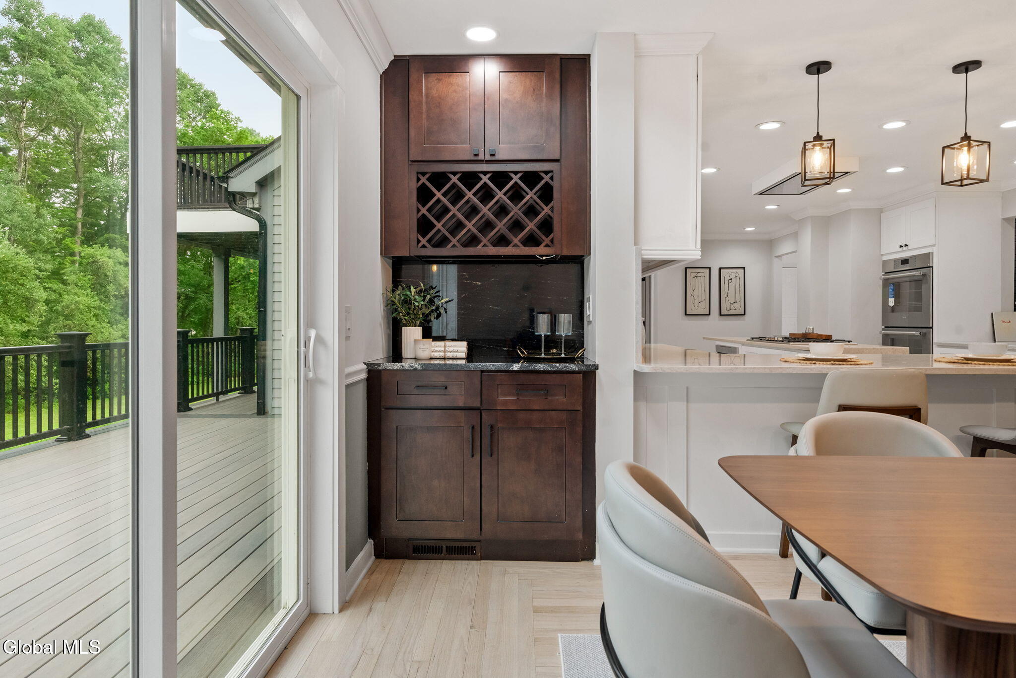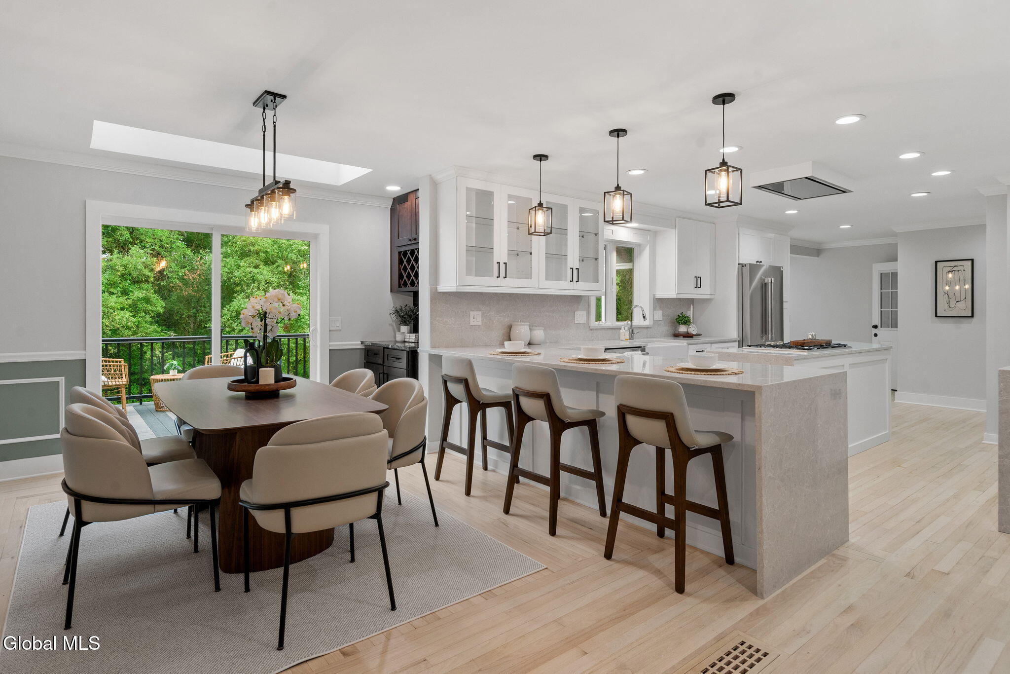 Discover timeless elegance and modern comfort in this fully renovated 5-bedroom, 4.2-bath brick colonial, offering over 5,000 square feet of impeccably finished living space and set on a private 3-acre property surrounded by nature. From the custom-designed kitchen with professional-grade appliances to the spa-quality primary suite and fully finished lower level with egress, every detail of this home has been elevated with exceptional craftsmanship and style. Designed for both everyday living and grand entertaining, the main level features multiple living and dining areas, a flexible home office, and beautifully appointed finishes throughout. Upstairs, the primary suite serves as a private retreat with a luxurious ensuite bath and two generous walk-in closets. Each additional bedroom offers its own private or adjoining bath, providing comfort and privacy for all. A rare highlight of this home is the private guest wing, complete with its own kitchen, bathroom, and deck -- ideal for extended family, visiting friends, or an au pair suite. Guests can relax while enjoying peaceful views of the surrounding woods and local wildlife. The finished lower level adds even more versatility, perfect for a media room, gym, or recreation space. With a new roof, updated systems, and every surface refreshed, this home feels brand new while retaining the timeless appeal of its brick colonial architecture. Set on beautifully private grounds with mature trees and 40 acres of hiking trails of HOA owned/maintained property just across the street, this property offers a rare combination of luxury, privacy, and convenience -- under 30 minutes from downtown Saratoga Springs.