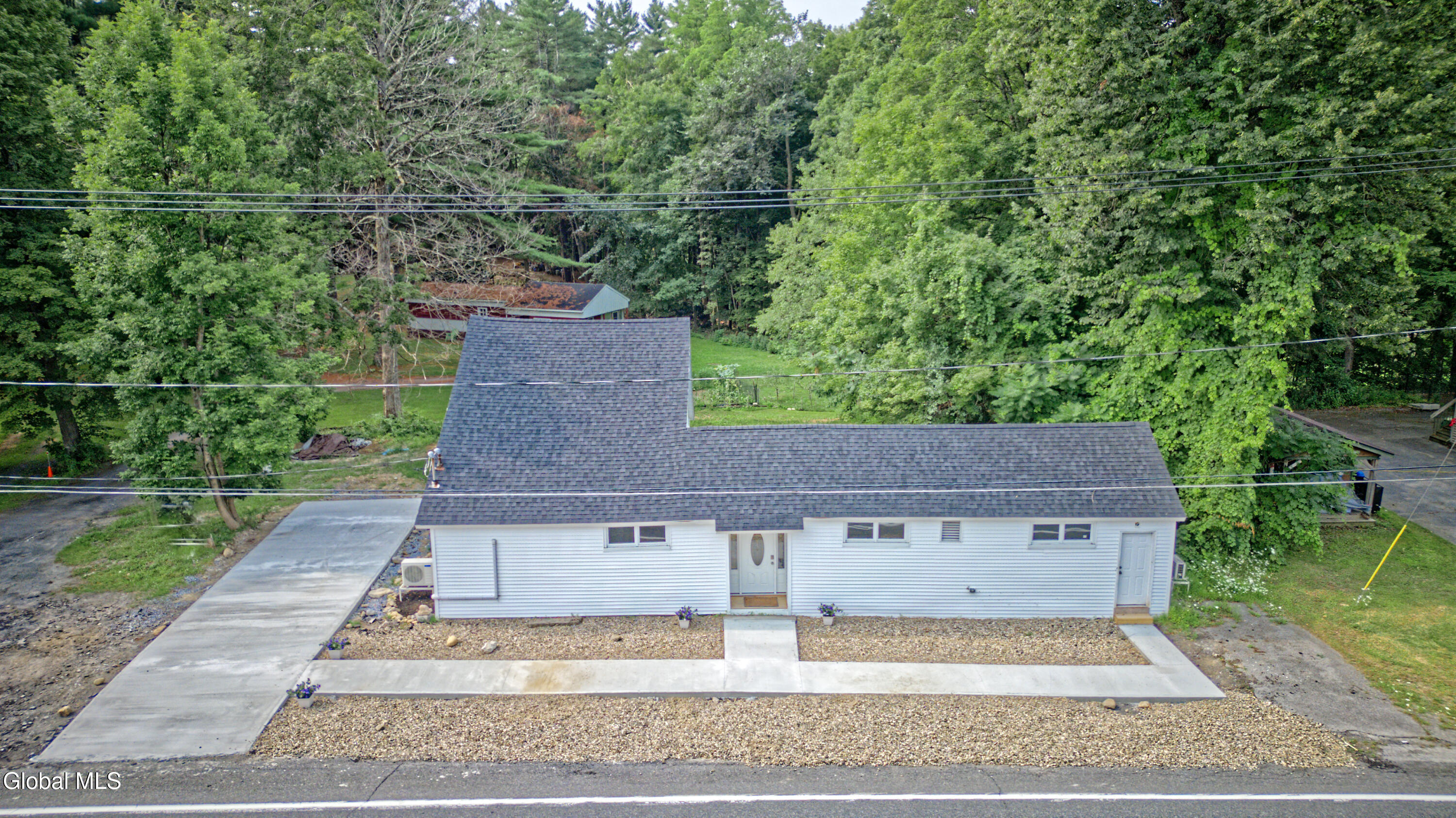 Completely remodeled, 5 bedroom nearly 2,500 square foot home, all you have to do is move in! New roof, siding, septic, and electrical. Brand new driveway and sidewalk. First floor features a large living room and kitchen. New cherry cabinets with quartz and butcher block counters. Large primary bedroom with en suite bath and walk-in closet. Office on the first floor would be a great guest bedroom. Dining room could be a play room, or den. Dedicated laundry room. Upstairs, three bedrooms with brand new carpet. Backyard is private and grass is growing. Attached shed for storage.