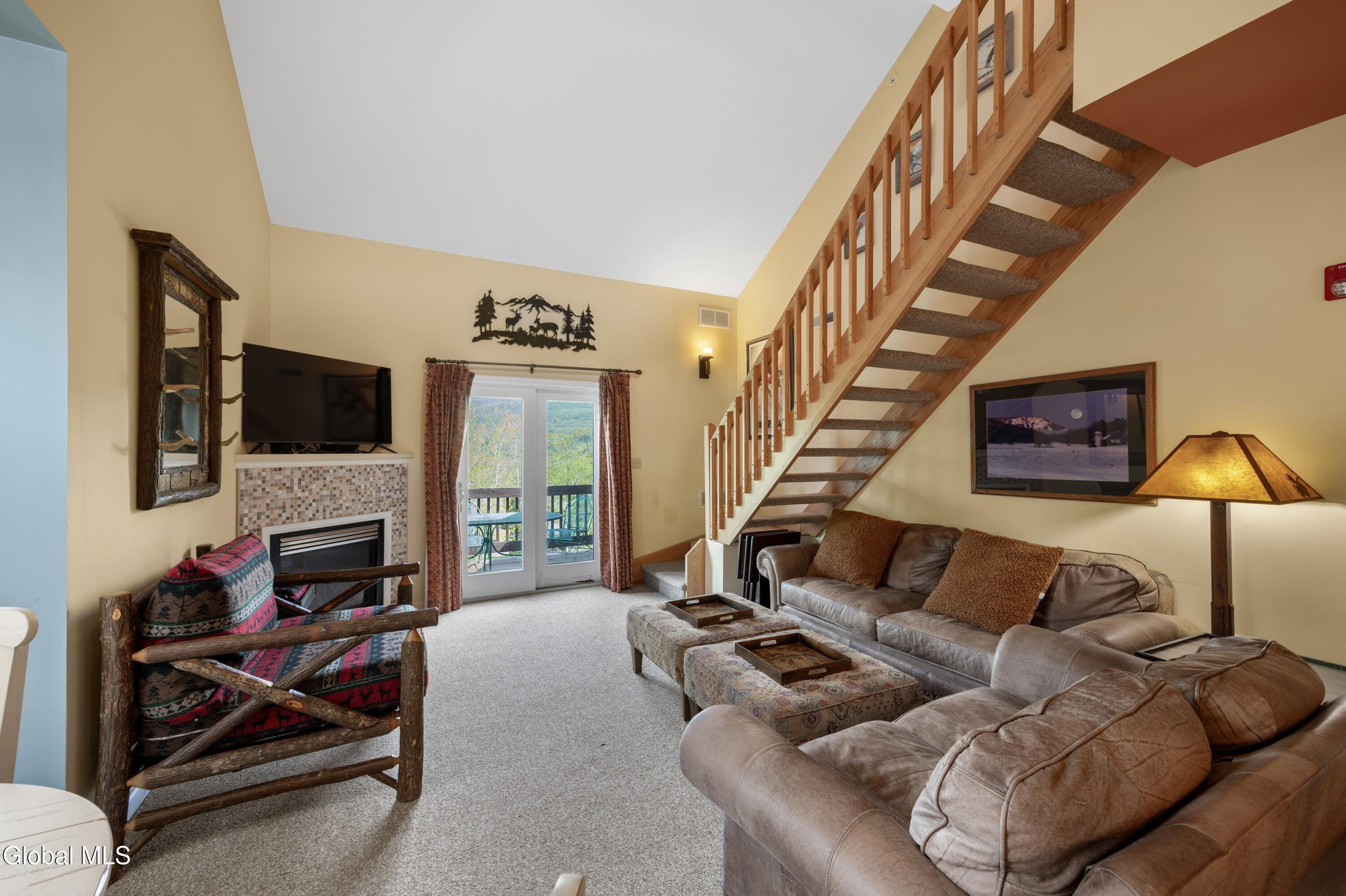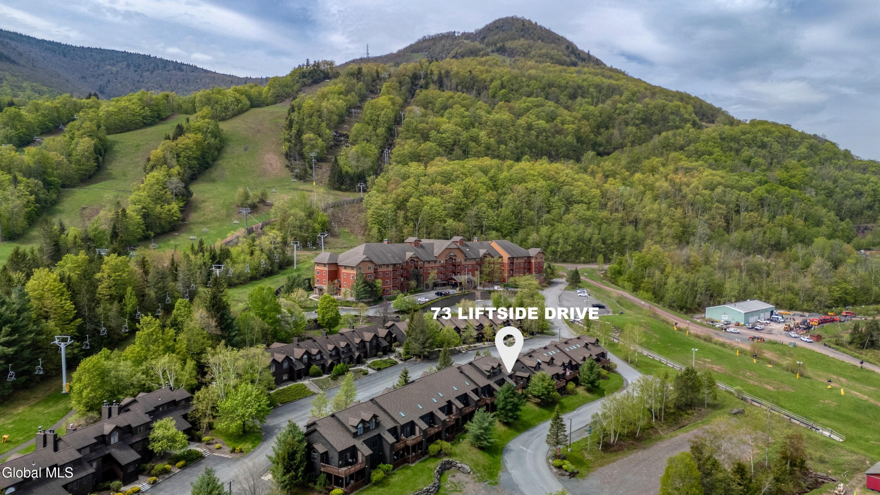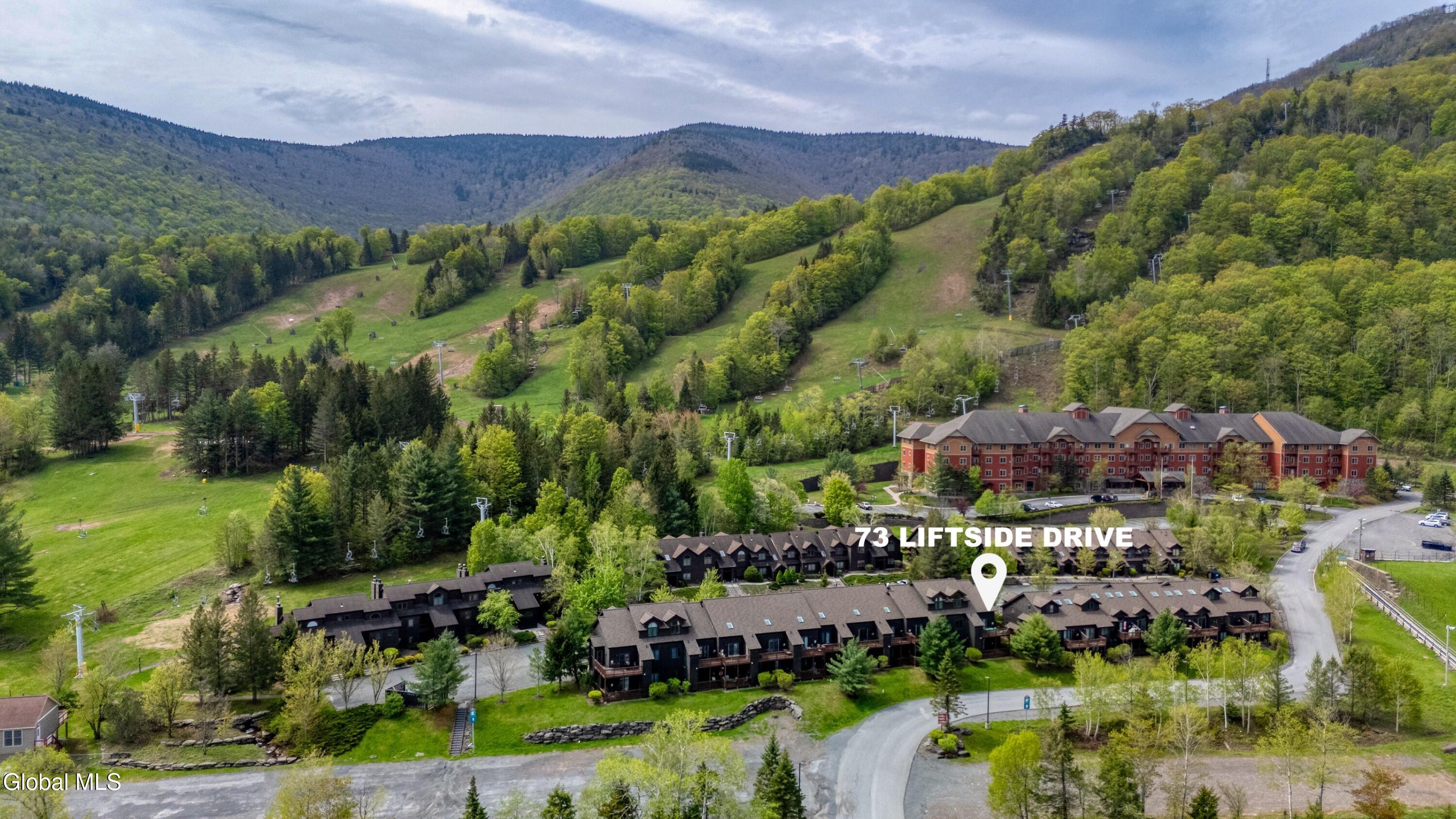 Location, skiing, and style! Stunning end unit in Liftside Village at Hunter Mountain—ski-on/ski-off with over 1,300 SF, 2 beds, 2 full baths, and a sleeping loft. Designer-decorated in natural earth tones and sold fully furnished. Features central A/C, gas fireplace, private corner deck with mountain views, private parking, and 2 ski lockers. Flexible layout featuring two entries—great rental or private suite. Optional membership for pool, hot tub, sauna, and steam room. Steps to dining, bars, and ziplining. Don't miss this turn-key mountain retreat!