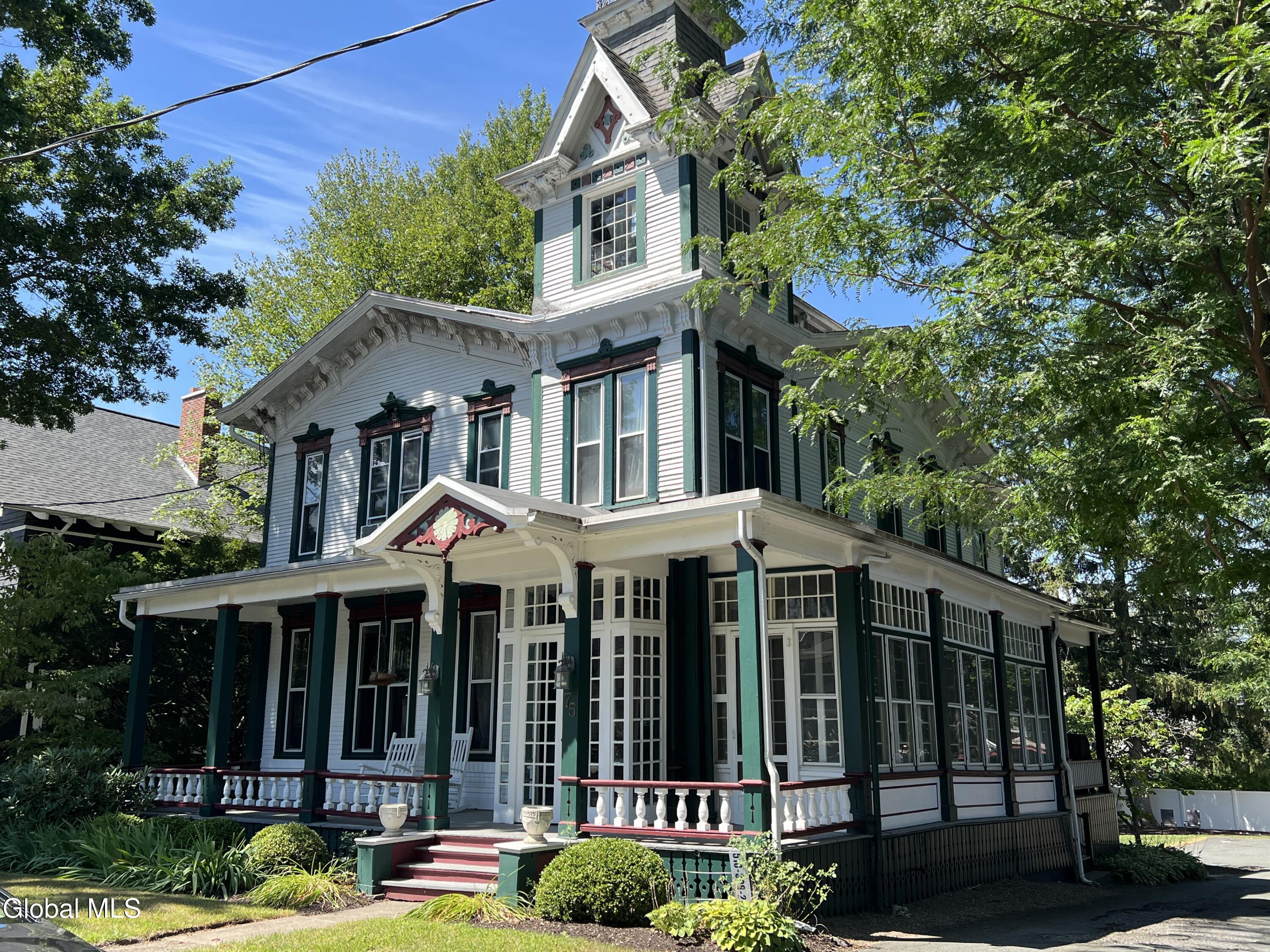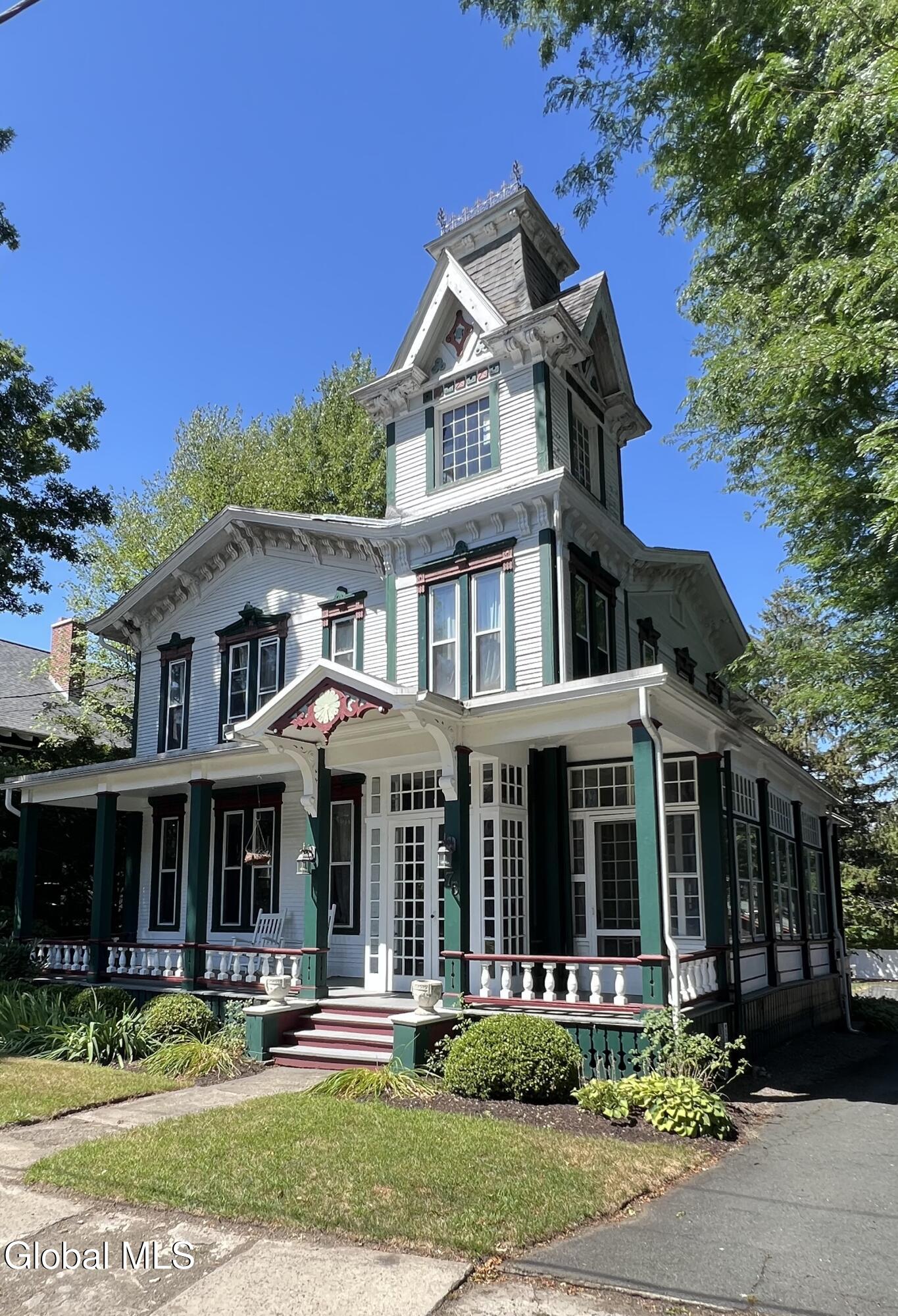 Outstanding opportunity to own this excellent example of a Queen Anne Victorian Home! This expansive home offers approximately 3,800 square feet of living space. Many of its magnificent warmth and charming craftmanship features are well preserved while blending in modern updates includes a gorgeous updated kitchen. Grand Entry Foyer has ornate tall ceiling, a decorative fireplace mantle, and plenty of natural light. The cozy & spacious Living Room offers beamed ceilings & a brick wood burning fireplace. The Dining Room provides ample room for all your dinner guests & includes matching ornate fireplace mantle & tall ornate ceilings. Remodeled Kitchen is an inspiration for any aspiring chef & includes large island with seating & space for a full-size dinner table. Lounge Room has a beautiful built-in wet bar area leading to a screened porch for your relaxing evenings. Additional features include a walk-out finished basement family room, recreation room, craft room & full bath! Walk-up attic leads to the widow's peak with original glass windows ready to be finished to your liking! Exterior offers covered concrete Patio, Deck, Side Porch, Large Enclosed Porch and Front Covered Porch perfect for the rocking chairs! You won't find another like this, schedule your showing today!