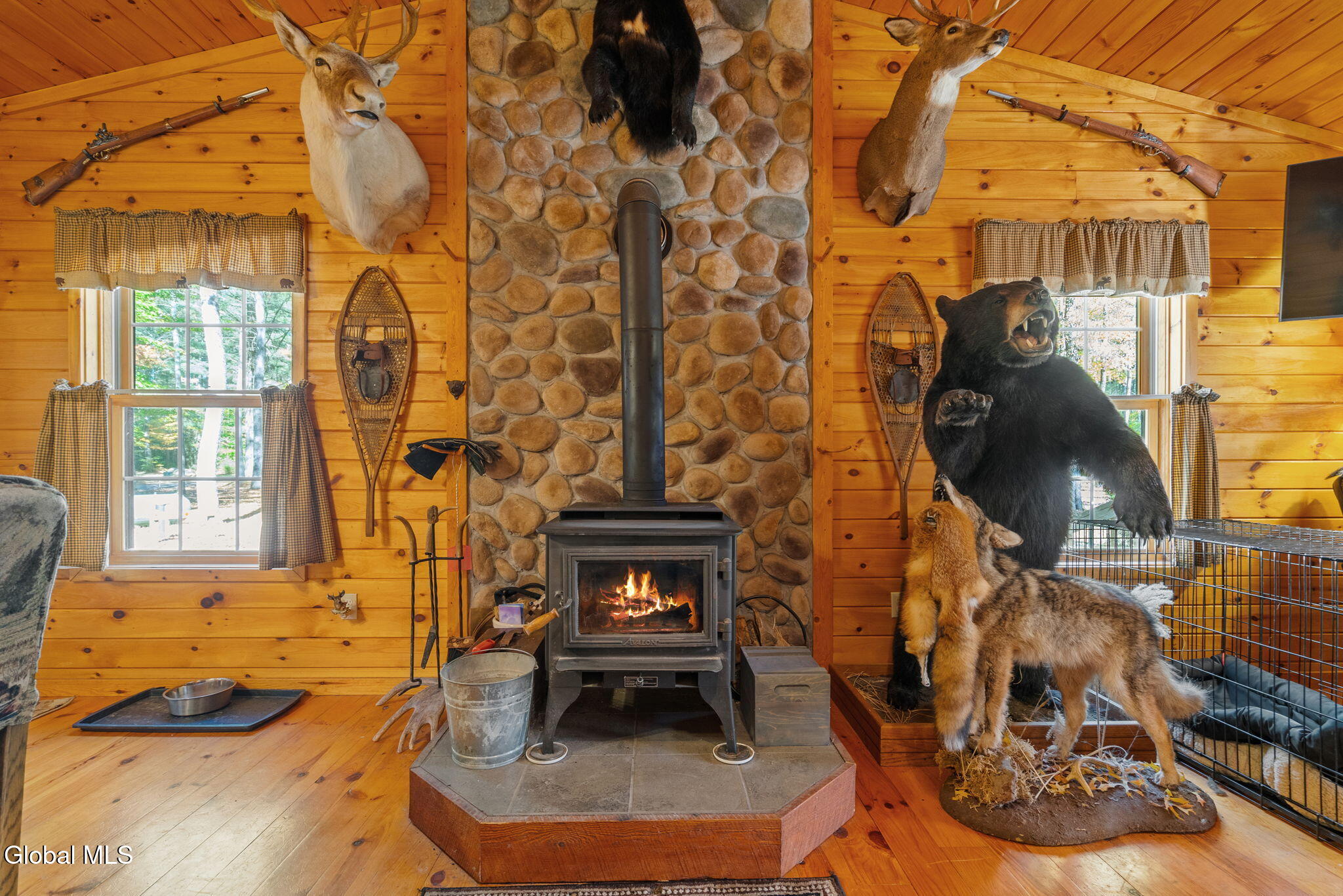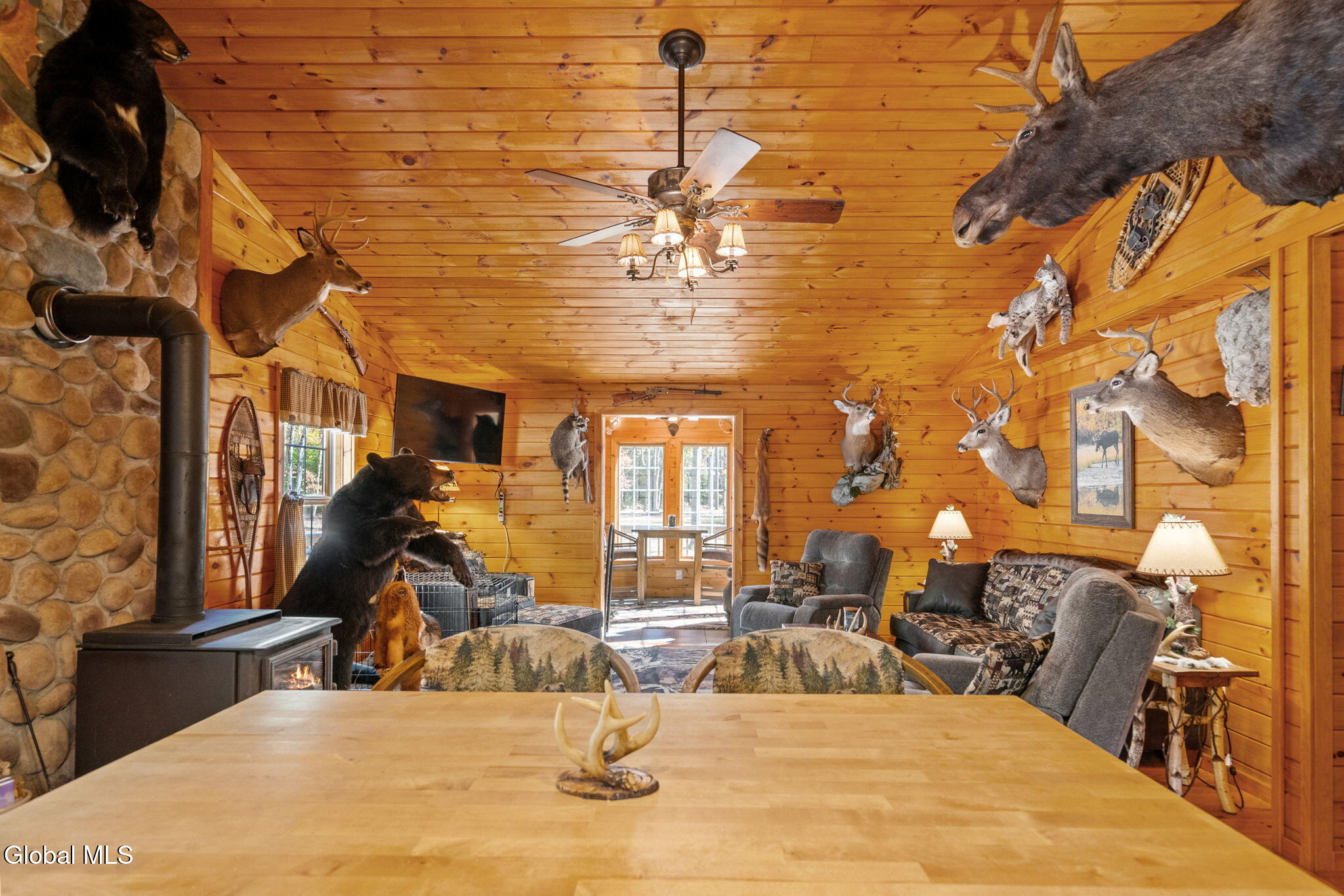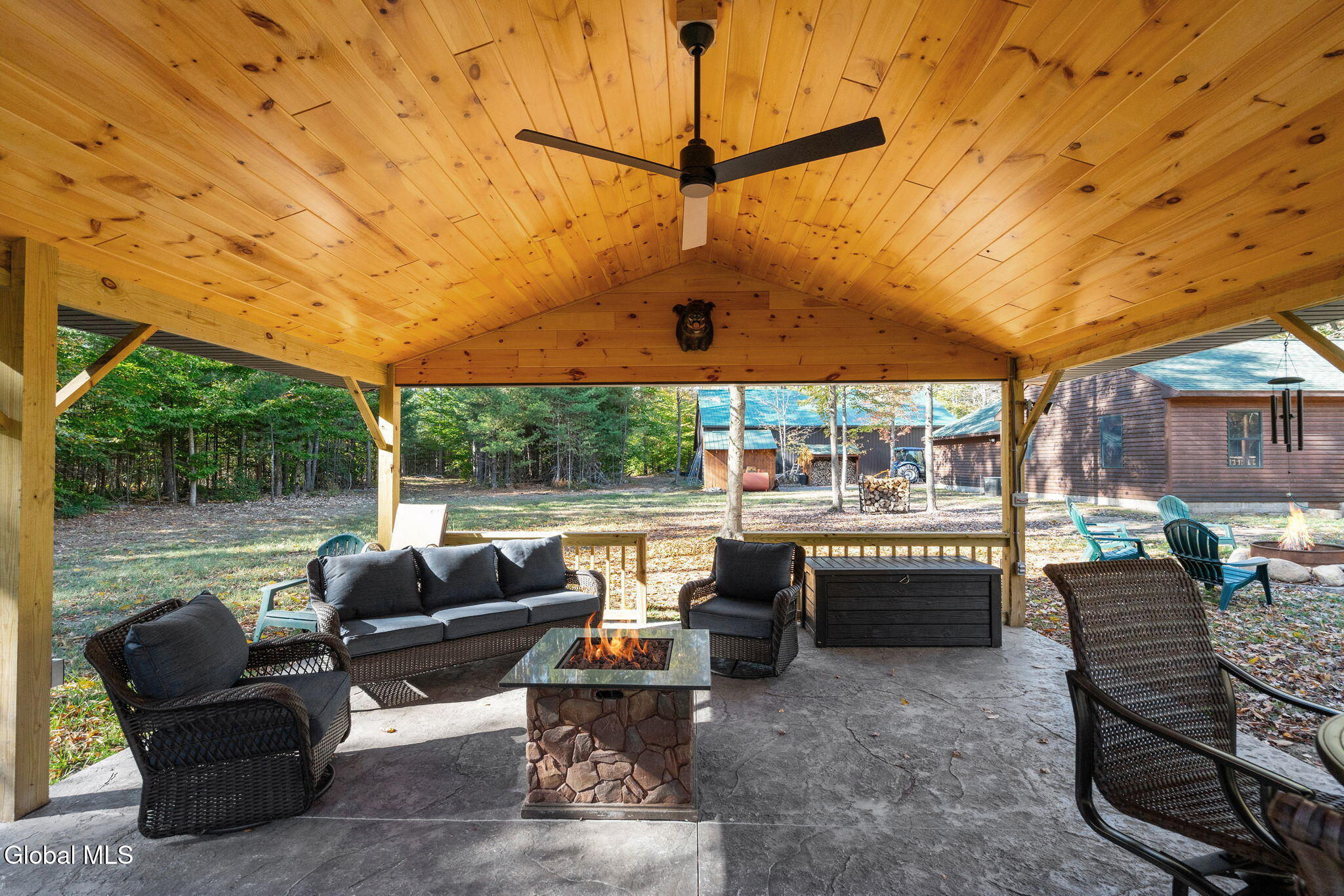 Swipe right on your Adirondack dream retreat! Drive through the gates and down the tree-lined driveway to discover this private and secluded gem. Nestled among tall pines on 52+ acres backed by Miller Brook, this move-in ready home checks every box for comfort, adventure, and year-round enjoyment. Inside, cozy up in the 2-bedroom, 2-bath ranch with an inviting open-concept living space. Spend winter nights by the wood stove, or start your mornings in the 4 season room with coffee in hand as you gaze out over peaceful, wooded views. Home amenities include: knotty pine throughout, new carpet, vaulted ceilings, open concept kitchen/living room, central air, attached garage, and generator hook up. Step outside, and the extras make this property a true one-of-a-kind find. Contractors and toy enthusiasts will beam with pride at the brand-new 40'x60' pole barn, fully equipped with electric, concrete floor, and LED lighting inside and out. Hunters will enjoy year round target practice with their own shooting range. Love to entertain? Host gatherings in the brand-new 20'x25' outdoor pavilion with stamped concrete and full electric--ready for your lighting and surround sound to create the ultimate venue. Adventure seekers will love the 5+ miles of private, marked trails right on the property, plus direct access to 500+ miles of Lewis County ATV trails and the C8C snowmobile trail. And when you're ready to explore beyond home, you're just a 15 minute drive to Boonville, 20 minutes to Tug Hill or Lowville, and 25 minutes to Old Forge. Whether you're relaxing, working, or playing, this Adirondack escape truly delivers it all! Can be sold turn-key, inquire with listing agent for a full list of available items. Showings Thursday - Sunday, 48 hours notice required.