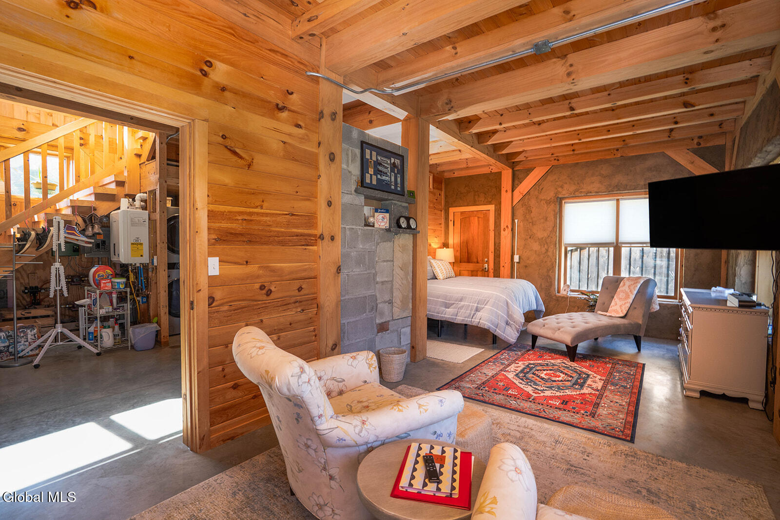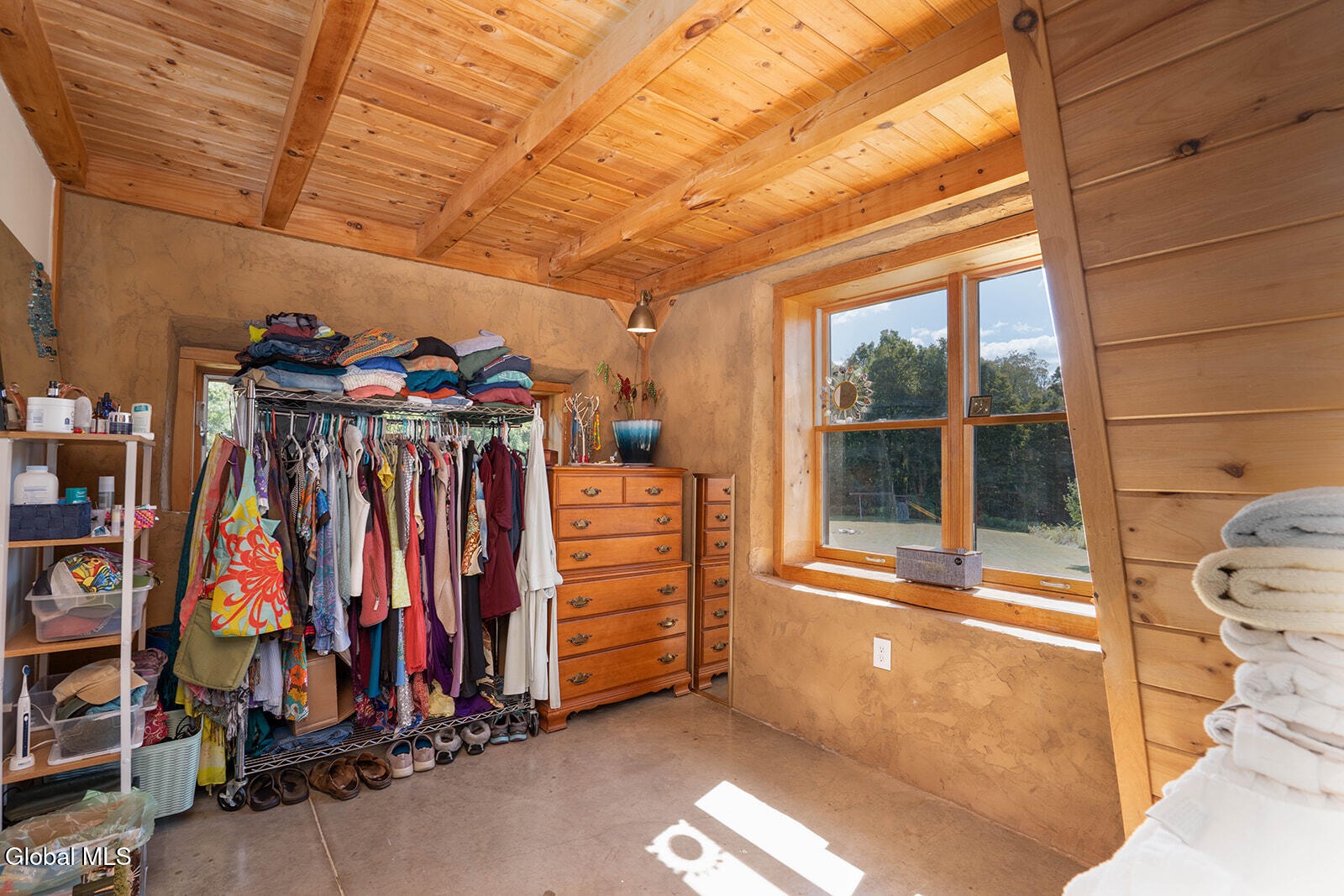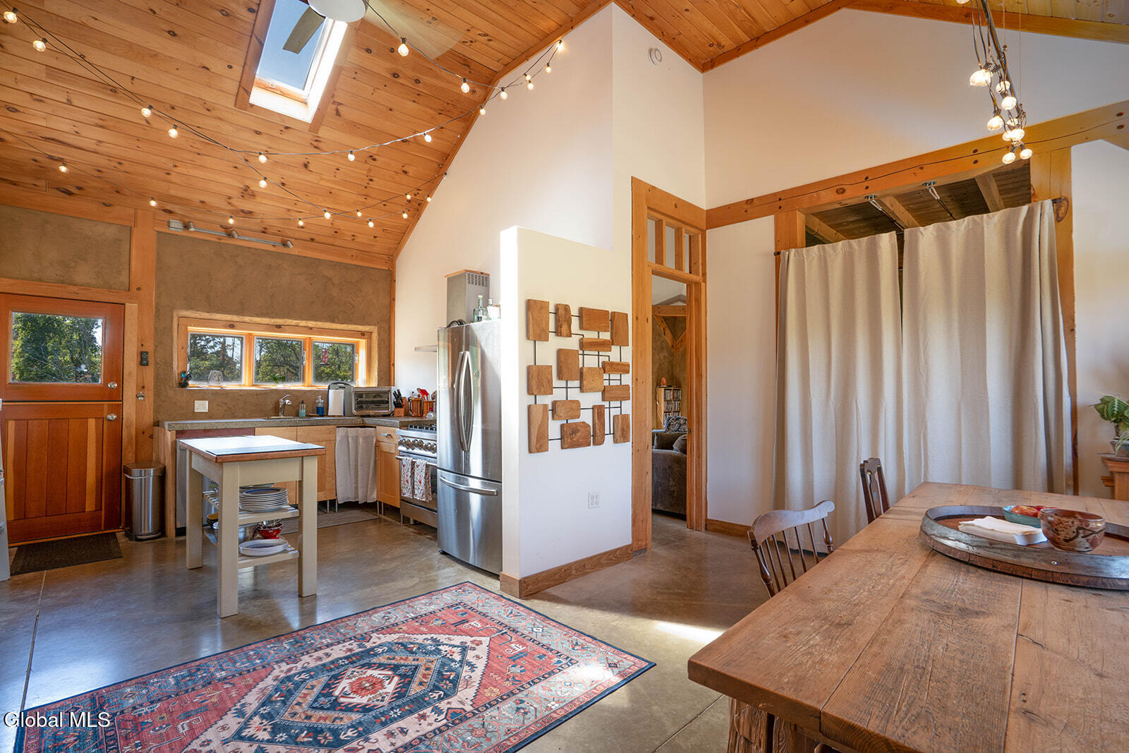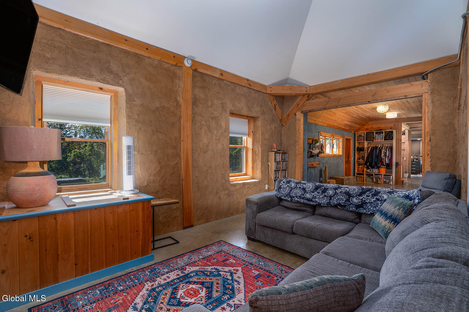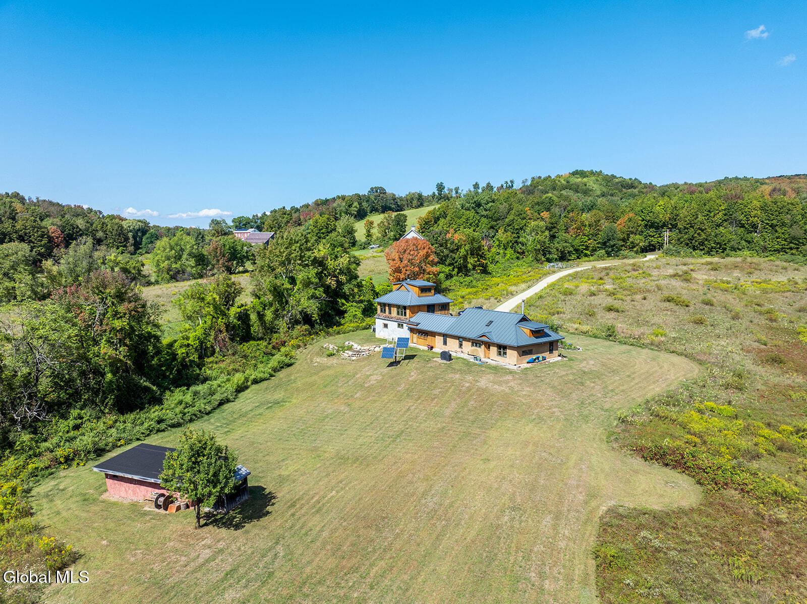 This ecologically friendly 4+ bedroom home blends creativity and sustainability with its strawbale construction, unique design, light-filled rooms, and a flexible floor plan. The eat-in kitchen, with cathedral ceilings, centers around a striking Finnish contra-flow masonry heater with a built-in pizza oven. The main living area also offers a cozy loft, pantry, full bath, living room, utility room, and a spacious mudroom. The first-floor primary suite has its own exterior access and an adjacent bath, currently a half bath but plumbed for a walk-in rain shower and soaking tub. Upstairs, you'll find three bedrooms, a half bath, and an office, plus a third-floor studio or game room. Radiant floor heating is a welcome reprieve from winter's chills. An intricate masonry patio welcomes you to the home, while 7.8 private acres of mostly open meadow provide ample space for homesteading, animals, or simply enjoying the outdoors. Established gardens, a small pond, and two outbuildings enhance the setting. Perfectly situated, the property is just minutes from Cossayuna Lake, Carter's Pond Wildlife Area, and the Battenkill, and less than 45 minutes to Saratoga Springs, NY, or Manchester, VT. With a few finishing touches, this one-of-a-kind property is ready to become your ideal full-time residence or spacious vacation retreat, offering plenty of room for family and friends.