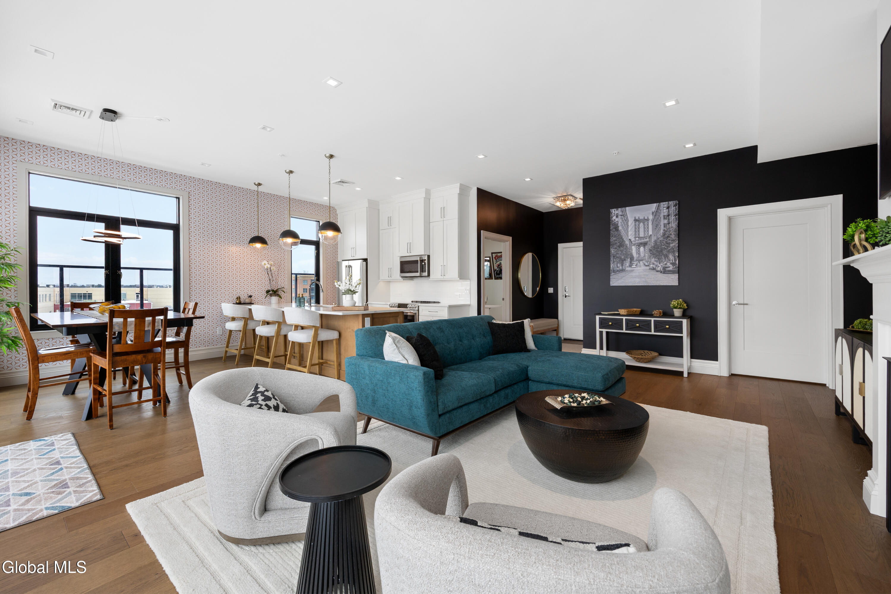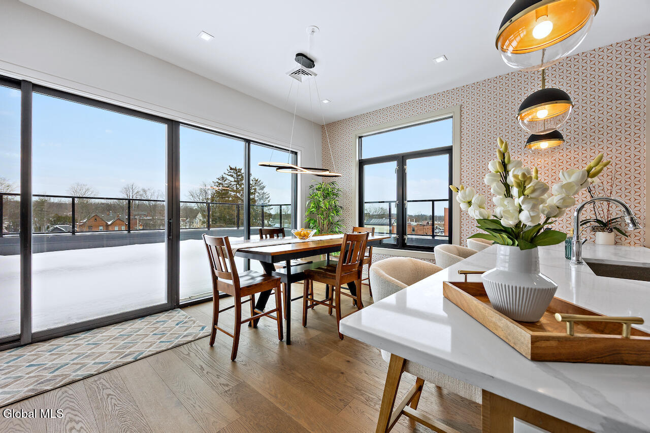 Experience your ultimate summer retreat in this gorgeous, brand-new penthouse condo, which offers sweeping long-distance views and is just moments from vibrant Broadway. Inside you will find soaring 10-foot ceilings, walls of windows, and an abundance of natural light. The thoughtfully designed layout includes 2 spacious bedrooms, 2 full baths, a private office, open-concept living room, dining room, and kitchen. One of the standout features is the incredible 1,300 sq ft wraparound terrace - perfect for entertaining, outdoor grilling, relaxing, or taking in those breathtaking views. Additional highlights include two reserved garage parking spaces, elevator building, and a secure lobby. The prime in-town location puts you in the heart of it all just minutes from top restaurants, boutique shopping, the iconic Saratoga Race Course, and world-class performances at SPAC. Available July 1 - Sept 8,2026 for $47k, if June is needed rate TBD. LA related to landlord. Note - the terrace photos are virtually staged.