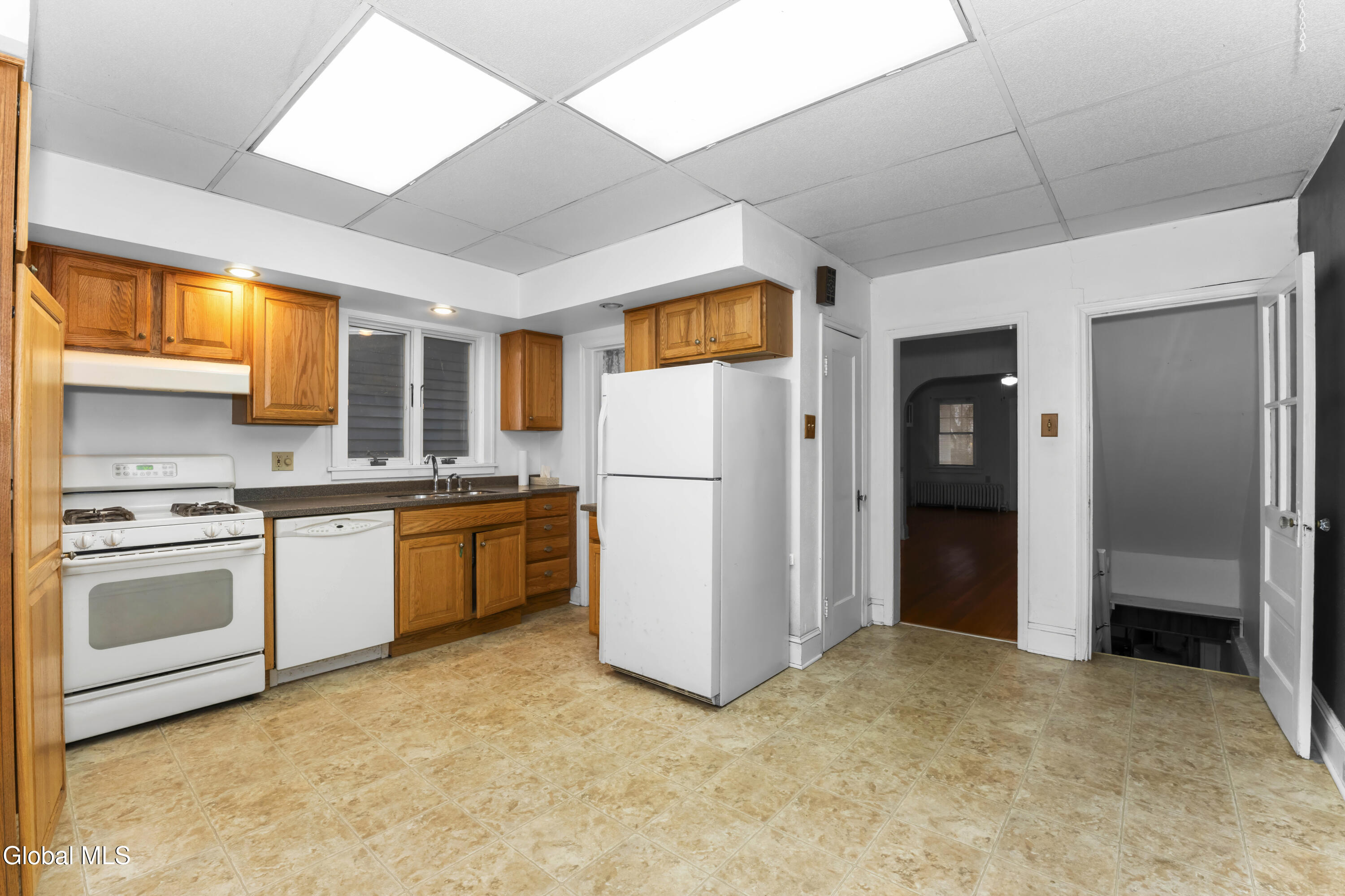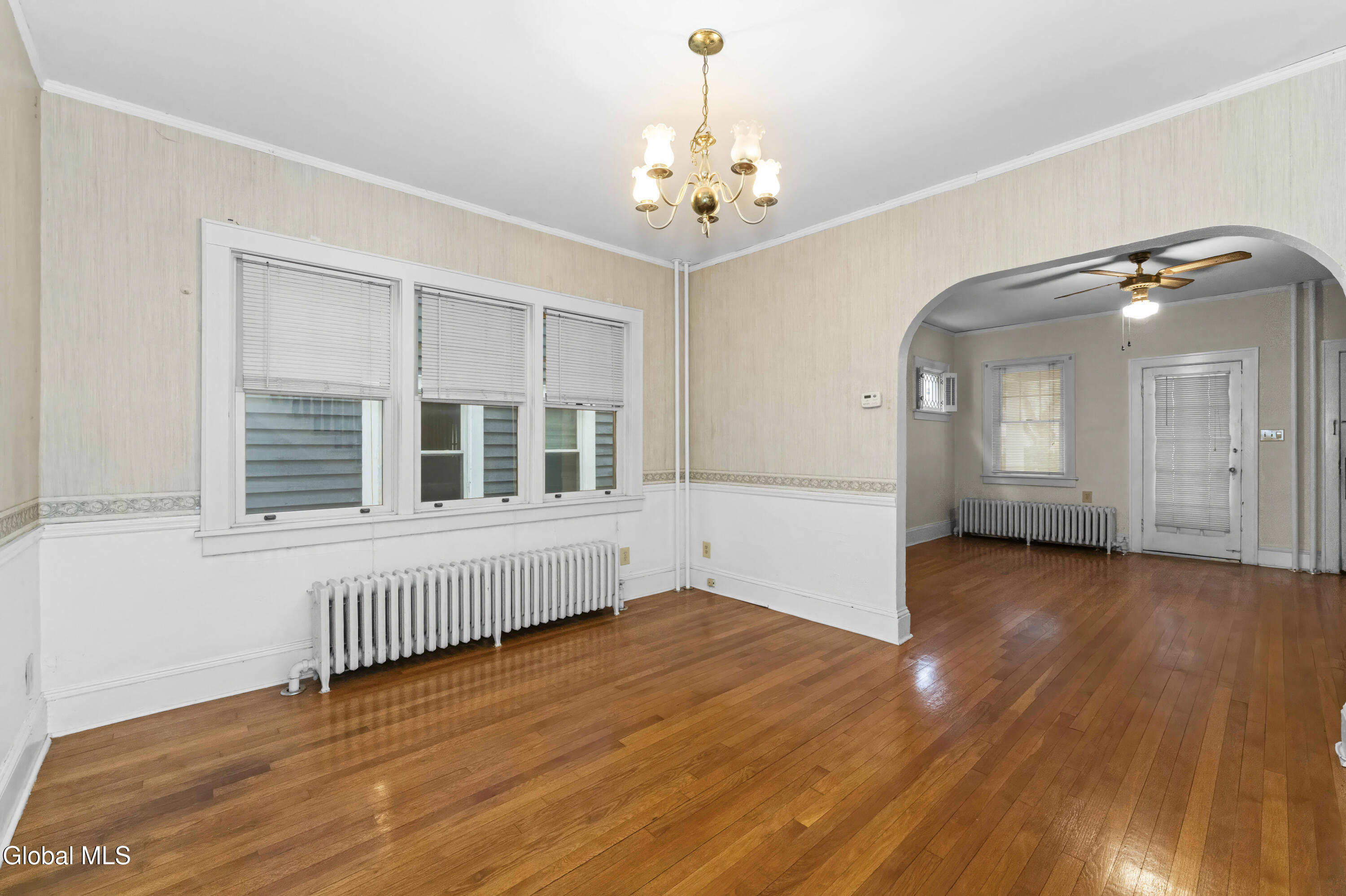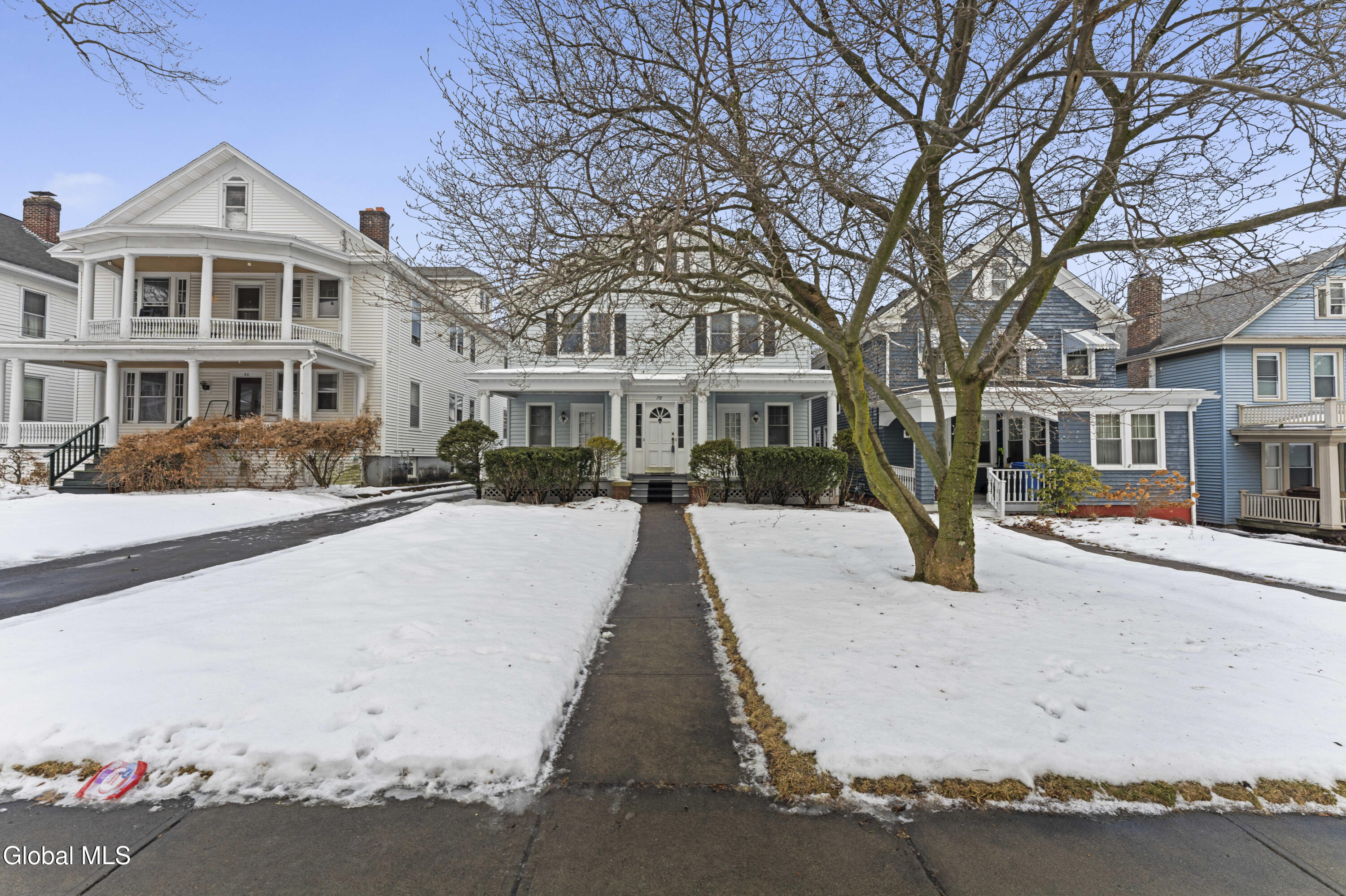Rare Opportunity in Top Neighborhood! Ideally situated near Albany's major hospitals, the University at Albany, and just a short walk to Pine Hills Elementary, the Albany Public Library, and the Upper Madison Gateway—home to excellent restaurants, Market 32, banks, and more. An unusual find on one of Albany's loveliest treed streets, this side-by-side duplex offers a rare combination of charm, space, and flexibility. Each unit mirrors the other with the exception of the kitchens. Both feature full attics, full basements with high ceilings, abundant storage, and a rear Bilco basement entry. One basement is partially finished. Utilities are fully separate, and both boilers have been updated. Original character shines throughout, including solid oak floors in excellent condition, leaded ''zipper'' windows, handsome hard-brick fireplaces with inlaid tile and oak mantels, and exceptionally large primary bedrooms. Updated thermal windows provide modern comfort while preserving classic appeal. The left unit retains its original pantry with extensive built-in cabinetry and drawers, while the right unit's kitchen has been updated with the removal of the pantry, adding newer cabinetry and solid-surface countertops. Outside, enjoy a large rear yard, fenced for privacy, with a two-car garage (no driveway to it) and additional off-street parking. Move-in ready with excellent income potential—live in one unit while the other helps pay your mortgage, or add a solid investment to your portfolio. A wonderful street, timeless charm, and outstanding location make this property truly special.
