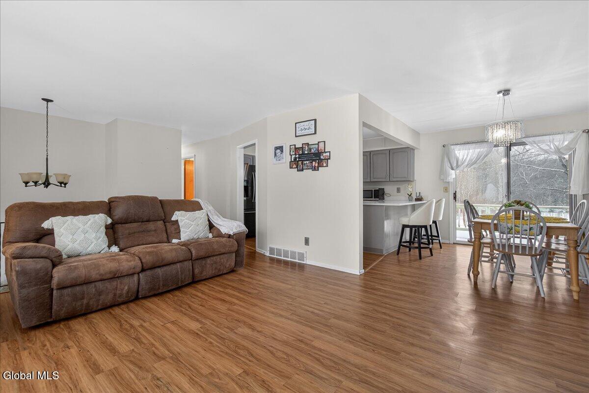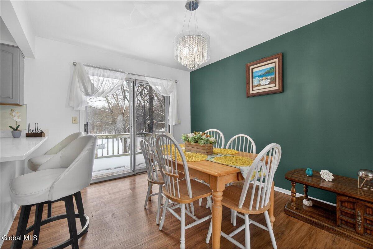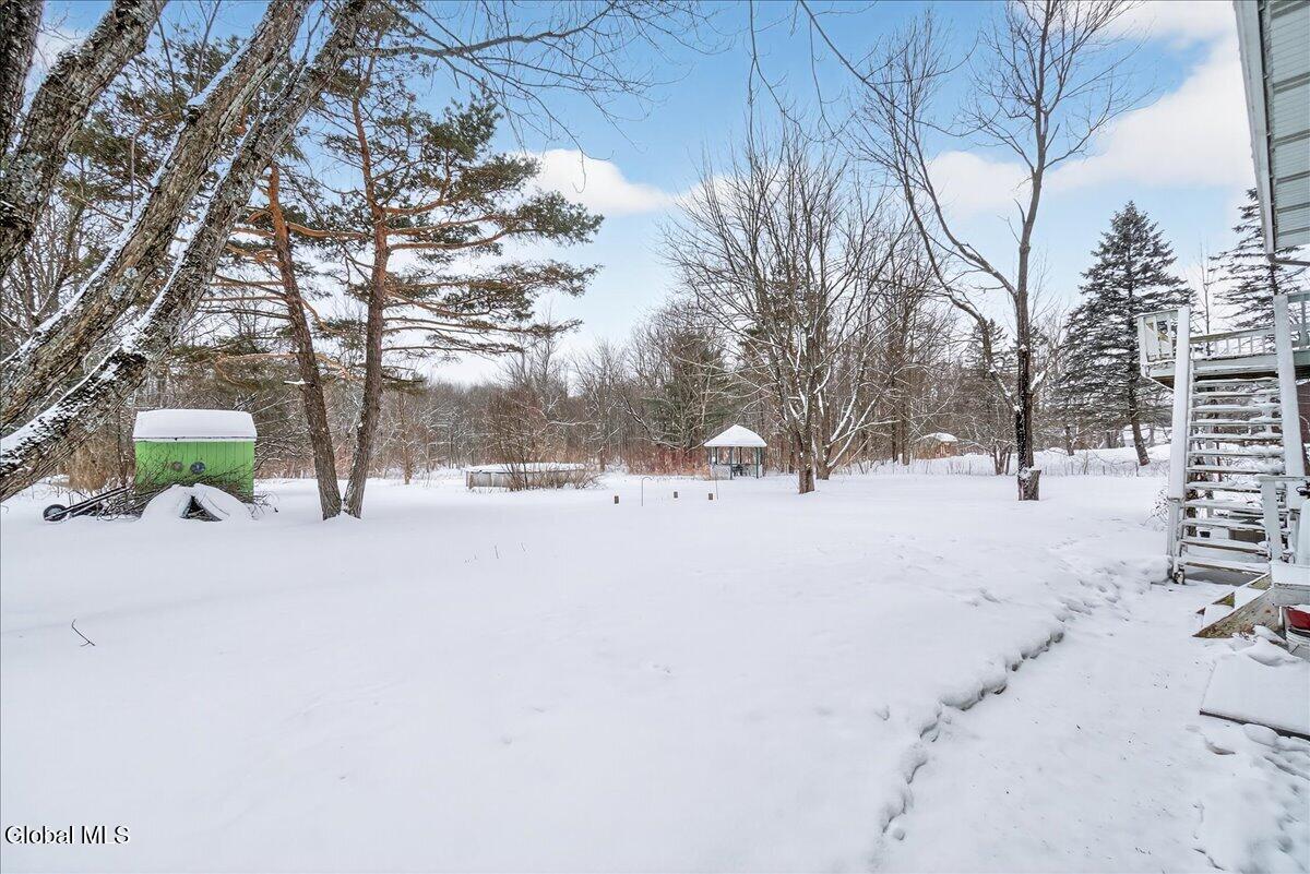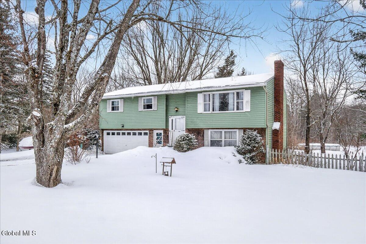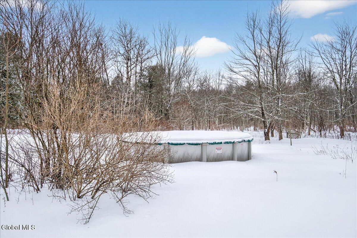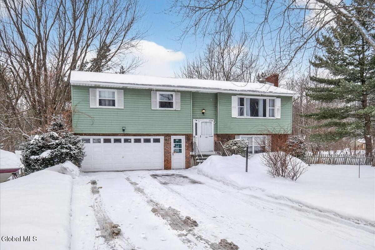 Charming and spacious raised ranch set on a private, sprawling acre. The main level features an open and airy layout with a bright living room, an updated kitchen with stainless steel appliances (including a new dishwasher), and a dining area with sliding glass doors leading to the upper back deck. Three bedrooms and a full bathroom complete this floor. The finished lower level offers additional living space with a laundry room and a generous family room, currently used as a bedroom, featuring a wood-burning fireplace and a half bath. Sliding doors lead to a covered back patio overlooking the serene, tree-lined backyard, complete with a newer pool (just 3 years old) and a gazebo, perfect for relaxing on warm days ahead! Also includes a two-car garage, storage shed, and new seamless gutters with guards. Close to Mariaville Lake and Plotter Kill Preserve, all within the Schalmont School District. See it today!